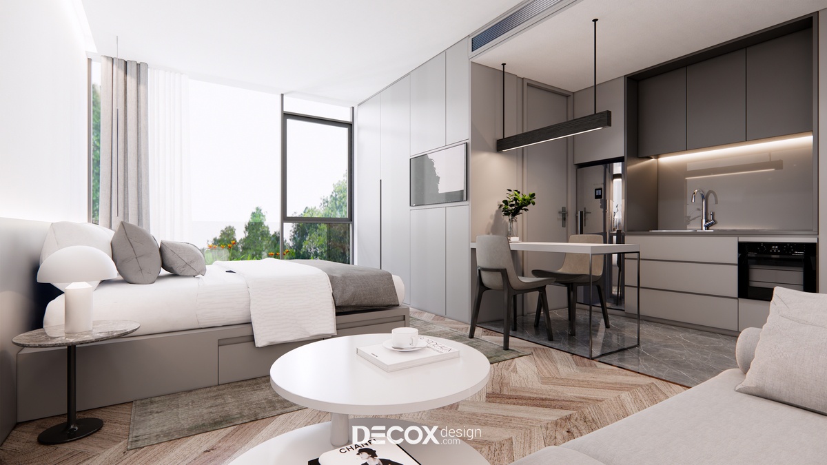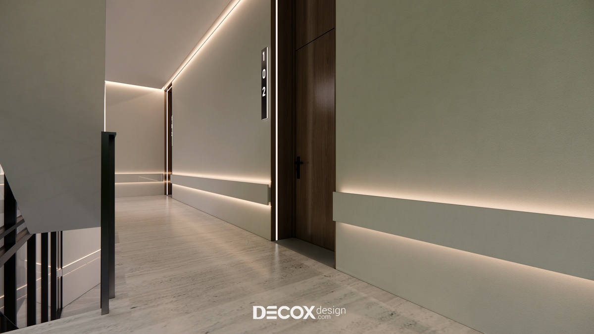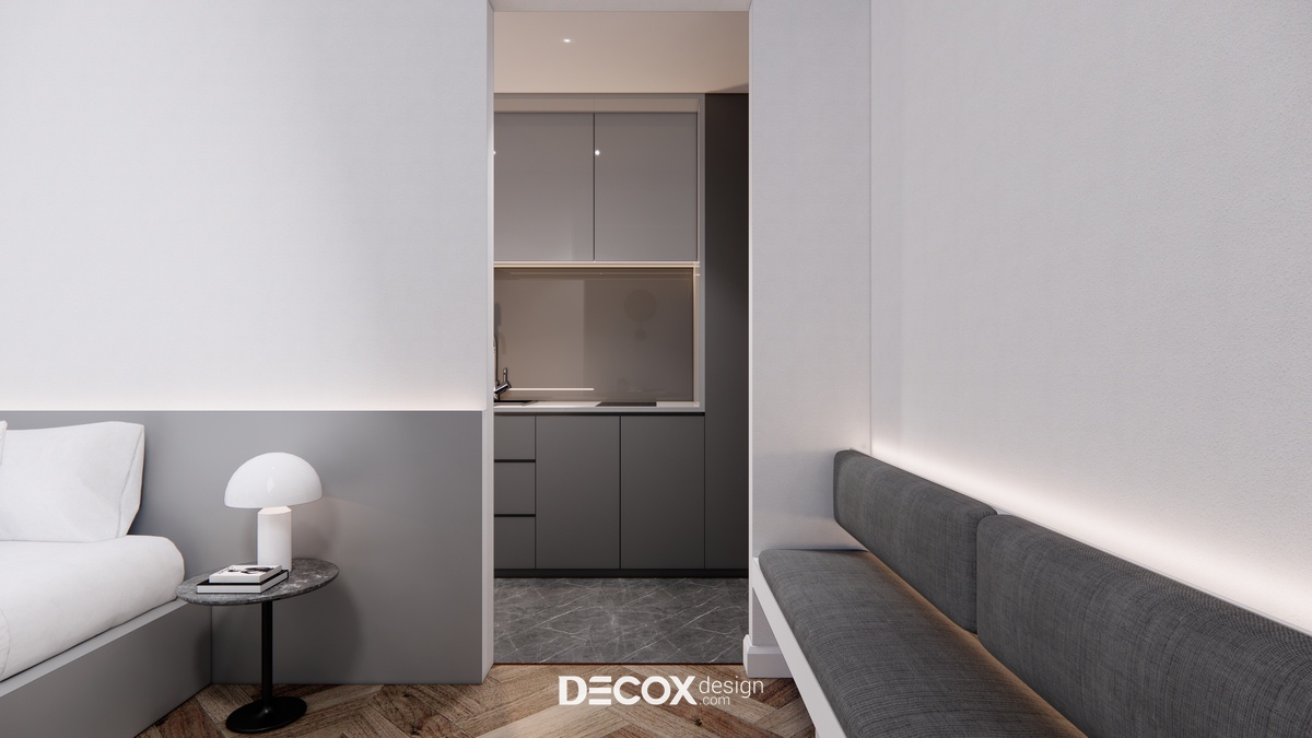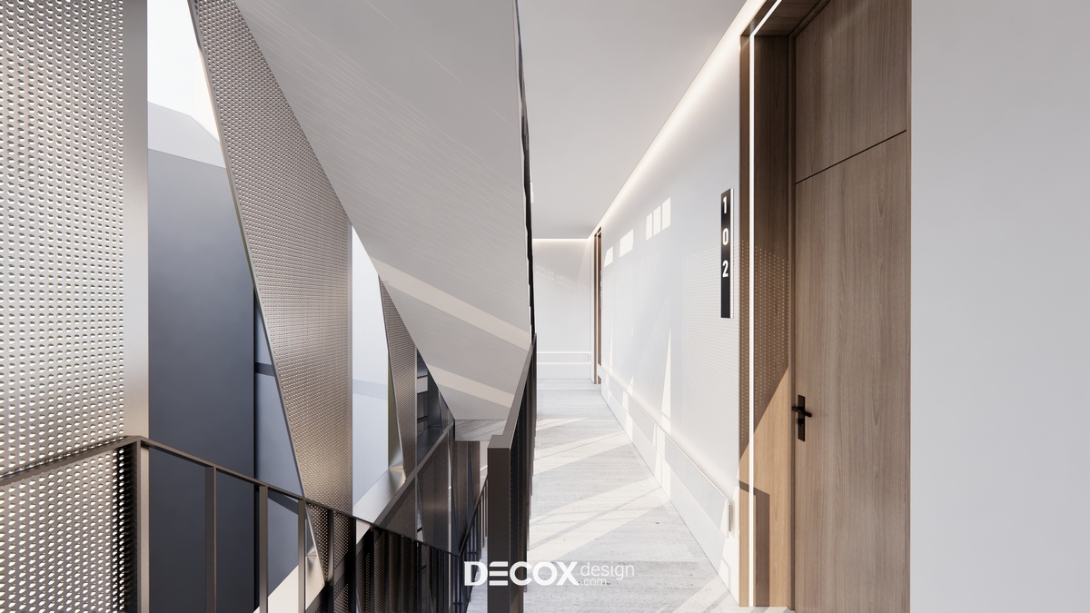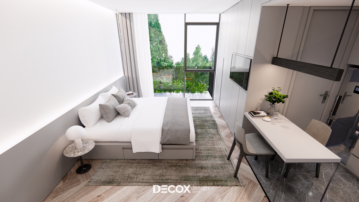Thiết kế nội thất lấy ý tưởng từ việc tạo dựng khách sạn lưu trú dựa trên mô hình nhà ở service apartment với nhiều loại hình cho khách hàng chọn lựa. Mỗi phòng ngoài khu vực nghỉ ngơi - chức năng chính của khách sạn còn cung cấp thêm những không gian khác như phòng khách, phòng bếp, phòng thay đồ... nhằm mang đến cho quý khách hàng sự tiện lợi, thoải mái như đang ở trong chính căn nhà của mình.