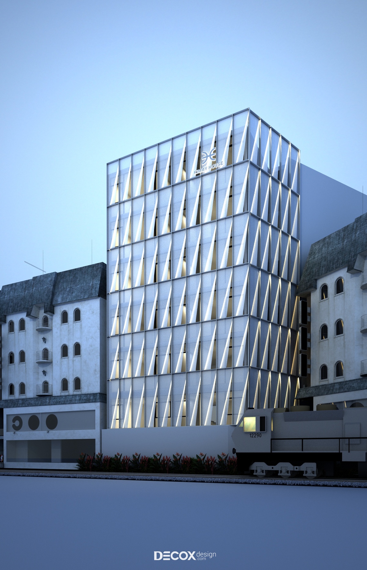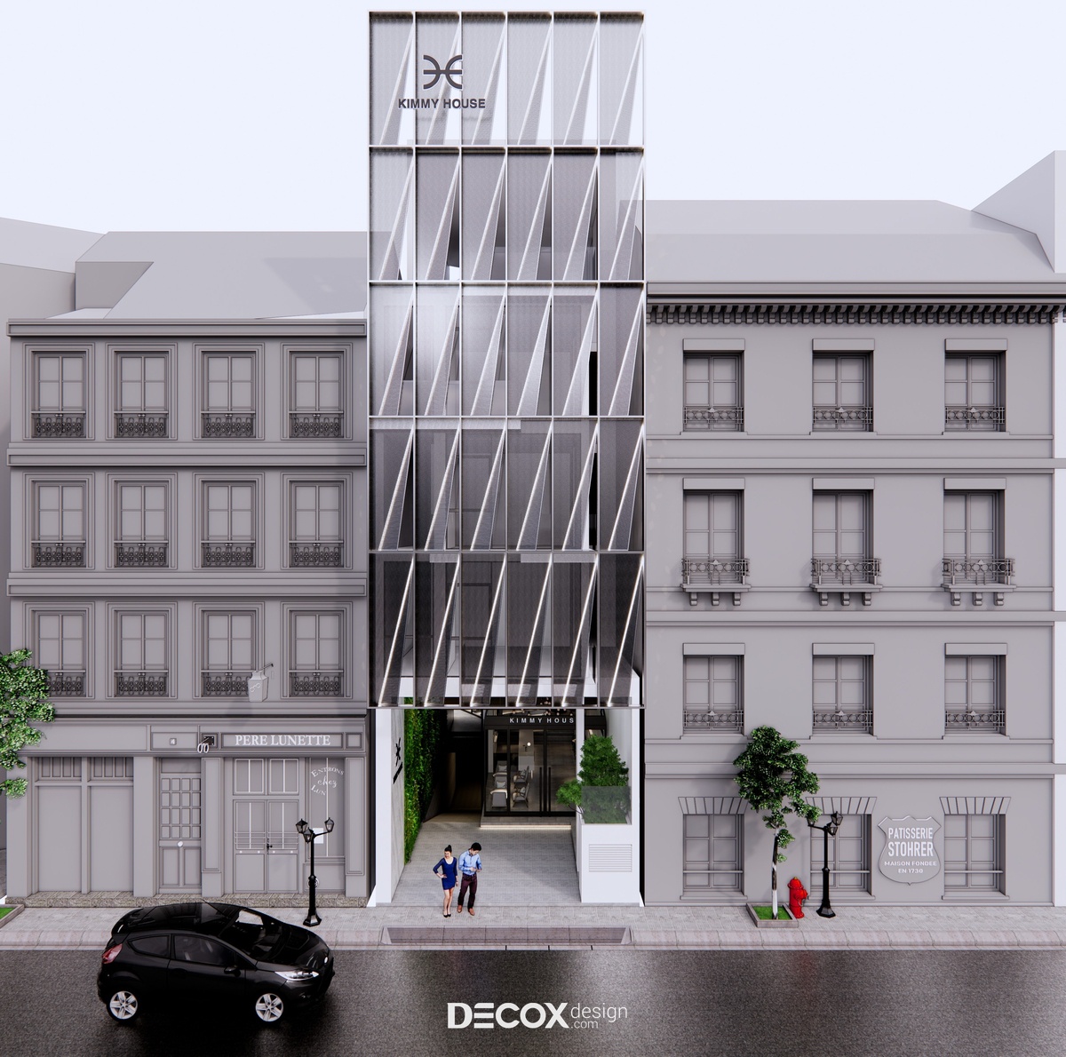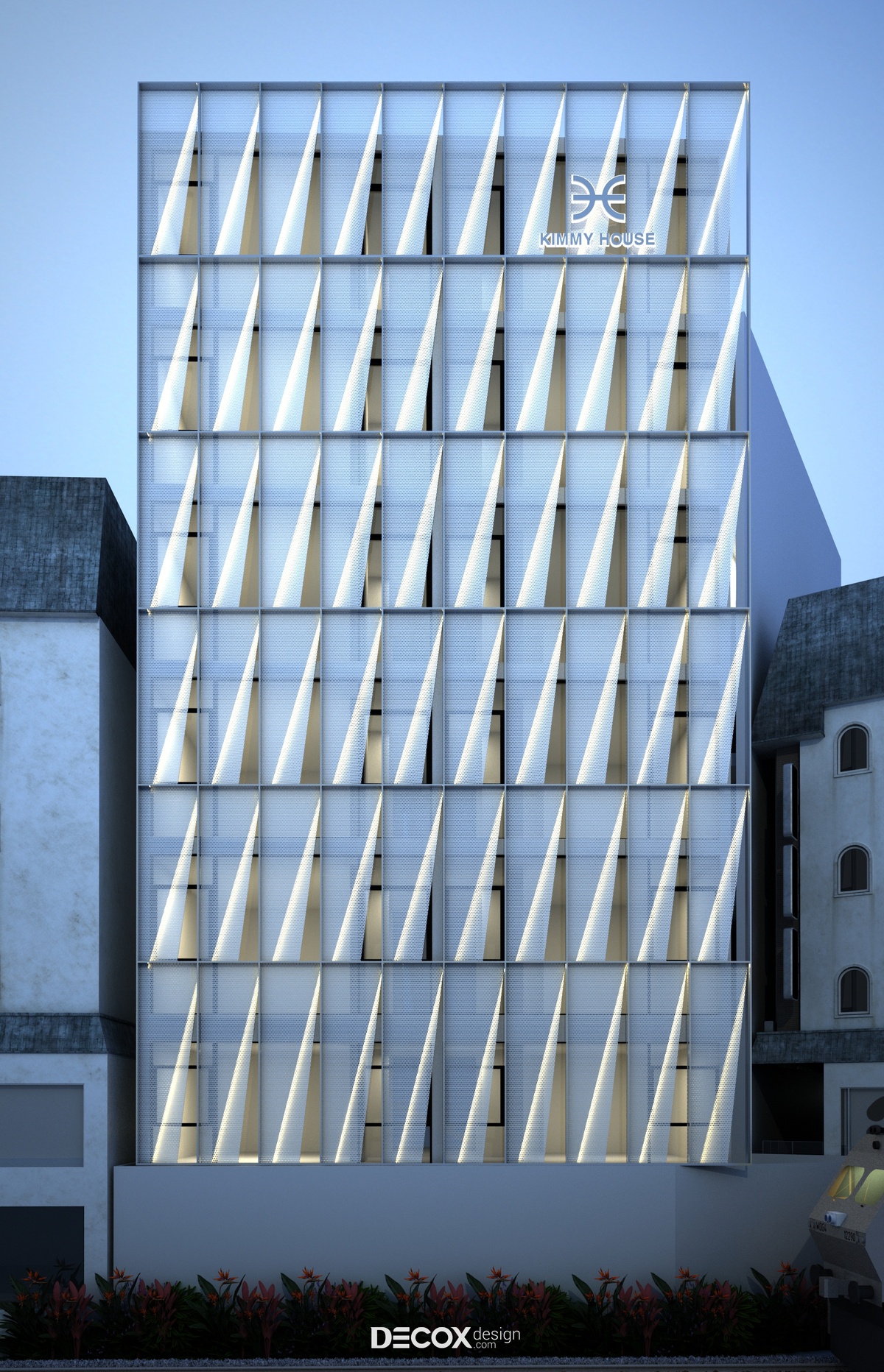 Nhằm mang đến một không gian tinh tế, năng động, trẻ trung và phù hợp với đại đa số đối tượng khách hàng, Decox Design đã chọn lựa phong cách hiện đại từ ngoại thất đến nội thất trong dự án khách sạn Kimmy House tọa lạc tại quận Phú Nhuận, Tp Hồ Chí Minh. Một trong những điểm đặc biệt của thiết kế khách sạn hiện đại có thể kể đến chính là sự linh hoạt trong lối kết hợp các loại chất liệu khác nhau nhằm tạo nên sự bứt phá riêng biệt. Và với dự án khách sạn này, các KTS đã chọn lựa chất liệu kính ốp toàn bộ mặt ngoài. Kính không chỉ tạo dựng không gian mở kết nối khách sạn với thành phố tấp nập mà còn gợi lên sự thời thượng, sang trọng và cao cấp.