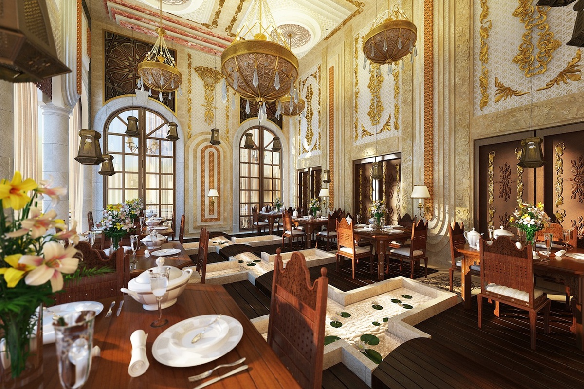 Là không gian chính phục vụ ẩm thực cho khách hàng nghỉ dưỡng tại khách sạn. Do đó ngoài chất lượng món ăn, thái độ phục vụ chuyên nghiệp thì yếu tố thẩm mỹ sẽ là chất xúc tác cần thiết ghi điểm ấn tượng và tác động đến tâm trạng của khách hàng. Thiết kế nội thất nhà hàng sẽ dựa trên phong cách chủ đạo của khách sạn. Một số phong cách thiết kế nhà hàng khách sạn ấn tượng được đa số chủ đầu tư ưa chuộng có thể kể đến như hiện đại, tân cổ điển, indochine, đồng quê…Mặt khác, dựa theo số sao mà khách sạn hiện sở hữu mà thiết kế nội thất nhà hàng khách sạn sẽ có những tiêu chuẩn khác nhau, từ quy định về số lượng bàn ghế, dạng bếp nấu cho đến không gian và món ăn phục vụ. Sau đây là một số mẫu nhà hàng khách sạn đẹp, mời bạn cùng chiêm ngưỡng.