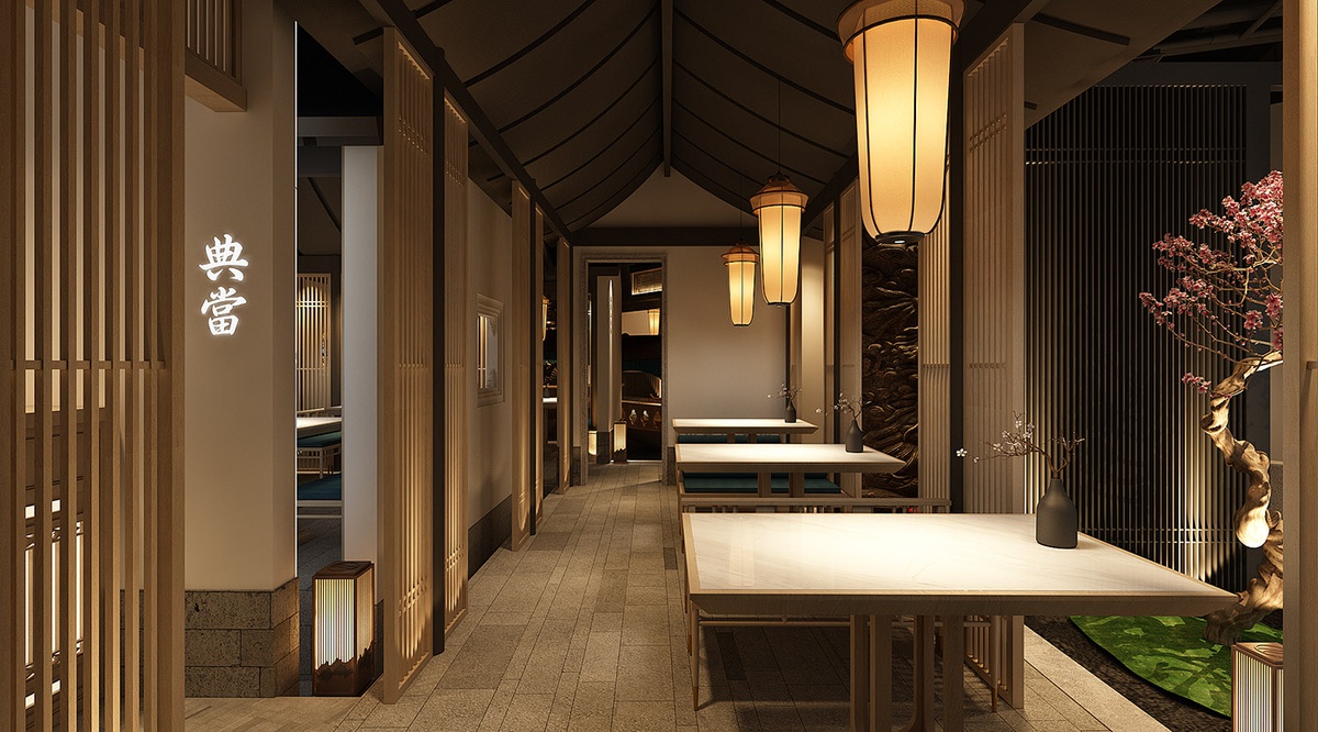 Khi chọn lựa thiết kế nội thất nhà hàng phong cách Nhật, bạn cần lưu ý đến tính tối giản - hướng đến giá trị tinh thần người sử dụng thông qua việc lược bỏ đi những nội thất, đồ trang trí không cần thiết, kết hợp thêm nhiều cây xanh trang trí và tạo không gian ấm cúng cùng ánh đèn vàng dịu nhẹ. Ngoài ra, nội thất nhà hàng sử dụng trong trường hợp này sẽ thiên về những dạng bàn ghế thấp hay bàn ghế đệm dạng bệt kết hợp chiếu tatami đậm chất truyền thống.
