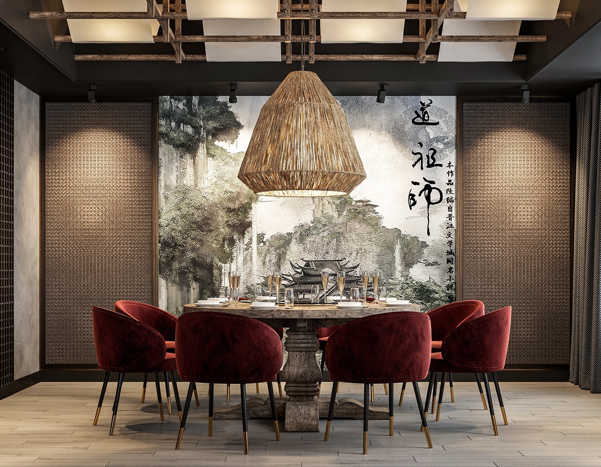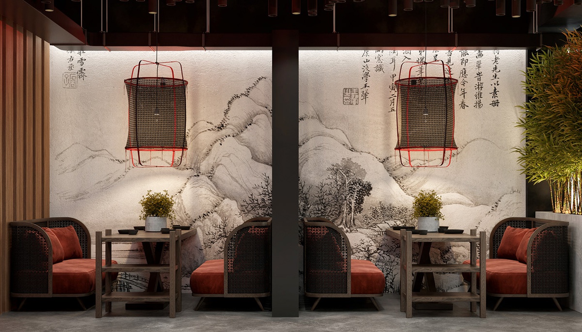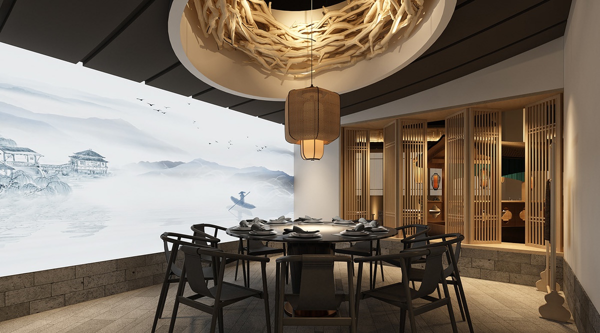 Bức tranh thủy mặc đậm nét văn hóa Trung Quốc tô điểm cho không gian nhà hàng