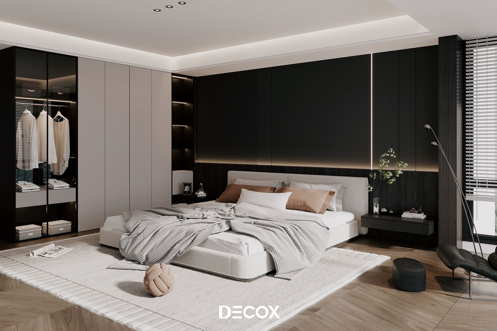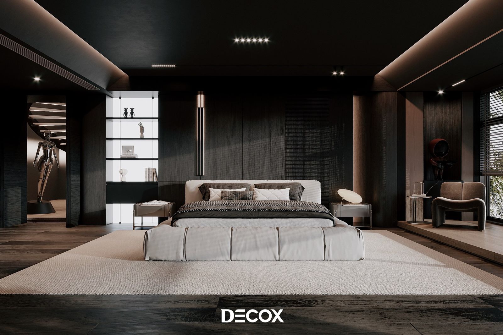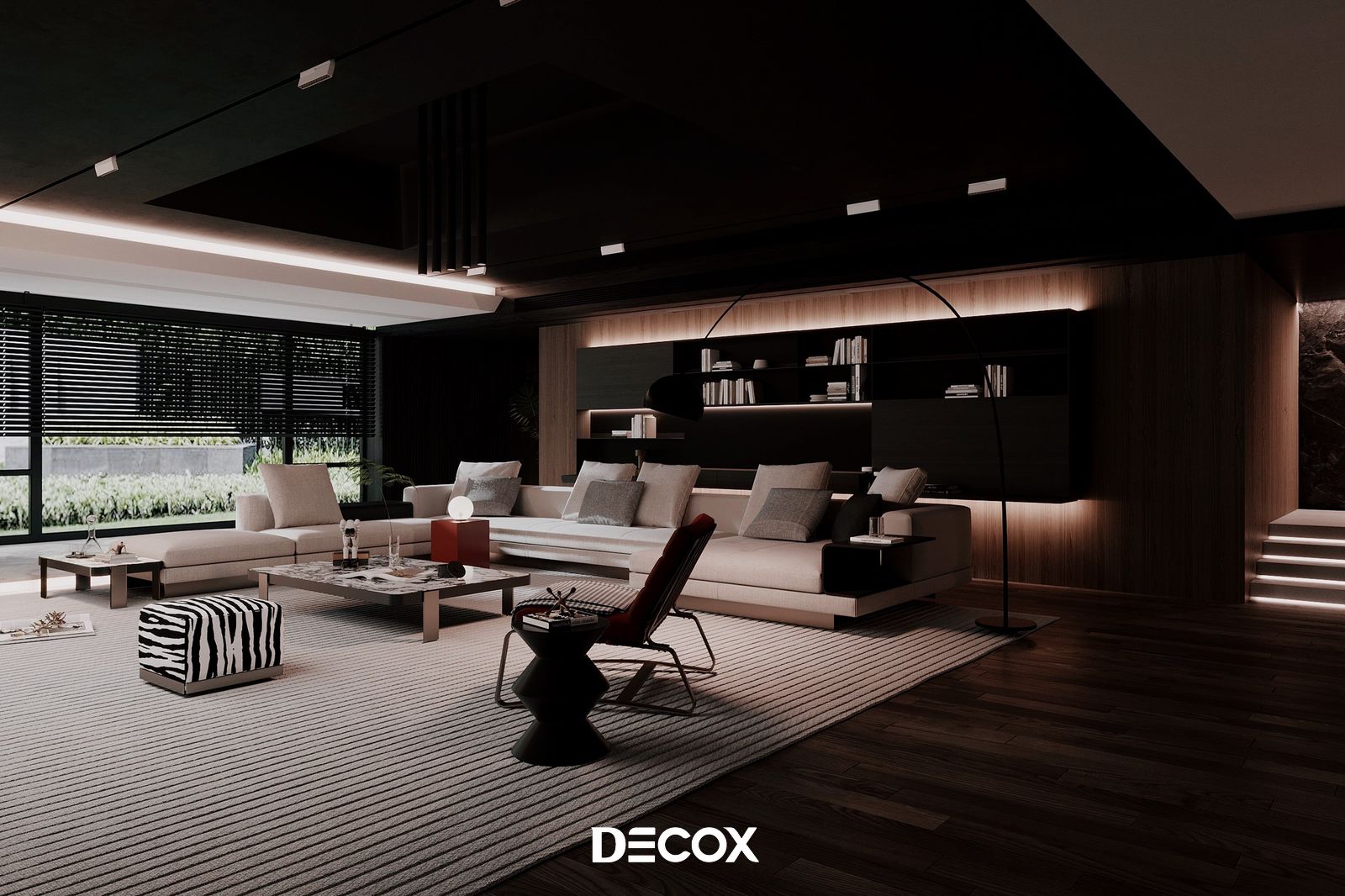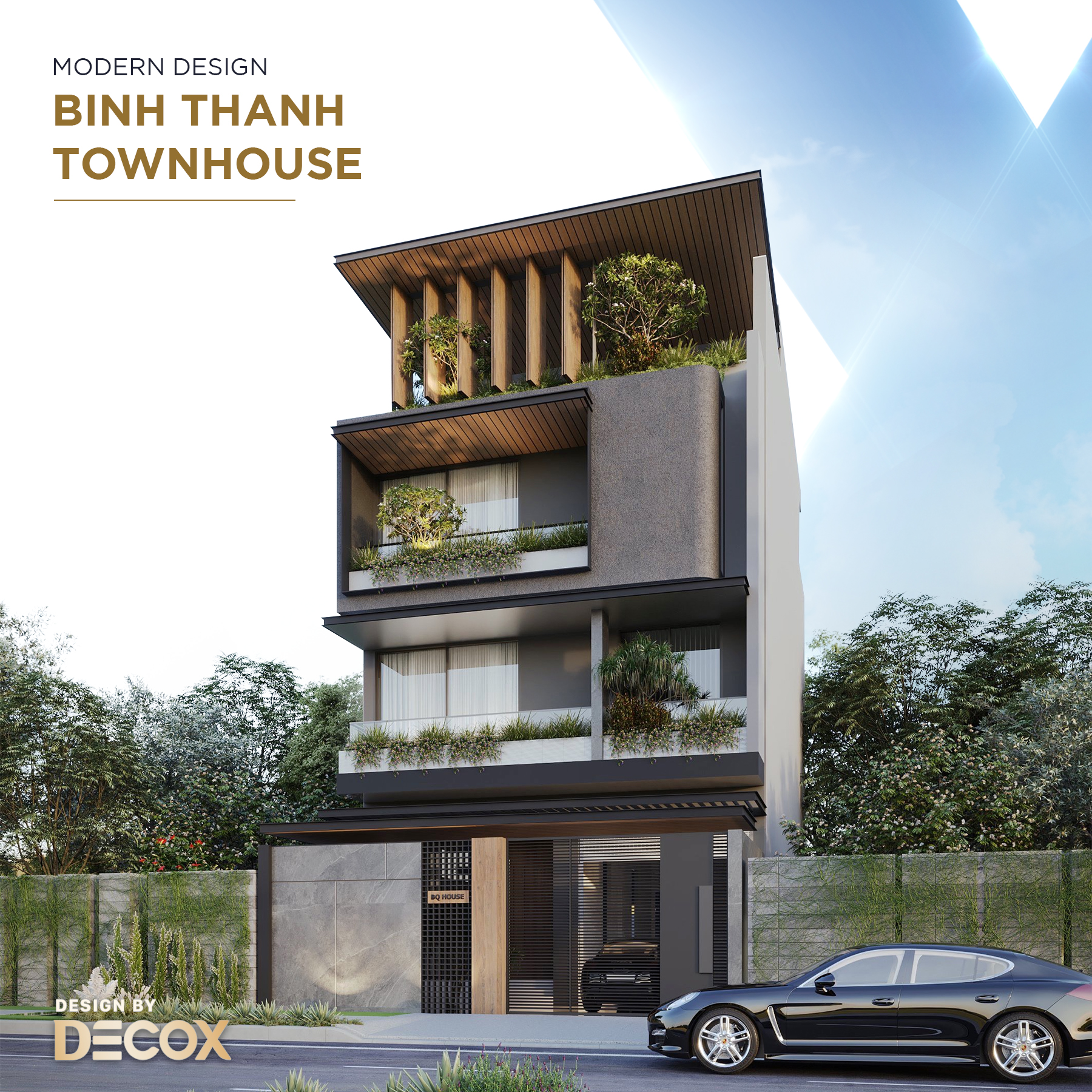 Trong bài viết hôm nay, Decox Design muốn chia sẻ một căn nhà phố 4 tầng tọa lạc tại Quận Bình Thạnh, TP Hồ Chí Minh mà chúng tôi vừa đảm nhận trong quý đầu tiên của năm 2023. Thiết kế nhà phố như một bản bản giao hòa giữa tỷ lệ hình khối - đường nét, chất liệu và màu sắc. Chính sự cân bằng này đã làm nên nét độc đáo riêng của công trình dẫu có theo lối thiết kế đã quá quen thuộc - phong cách hiện đại. Về tổng thể, căn nhà mang nét đẹp cá tính với hình khối vuông vức mang đến cảm nhận về sự vững chải nhưng cũng không thiếu phần mềm mại nhờ những đường nét cong uyển chuyển. Nét tinh túy của dự án còn nằm ở bảng màu sử dụng: xám - đen chủ đạo. Tuy sử dụng bảng màu tối cùng những vật liệu rắn rỏi, lạnh như bê tông, kính, thế nhưng công trình vẫn đạt được sự cân bằng nhờ sự xuất hiện của chất liệu gỗ mộc mạc cùng hệ thống ánh sáng phù hợp.