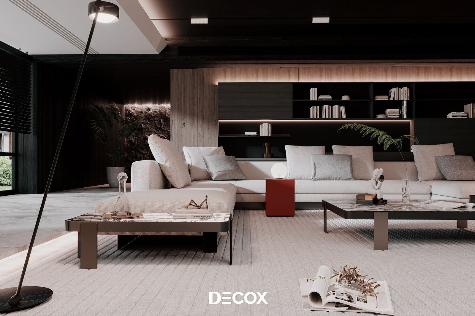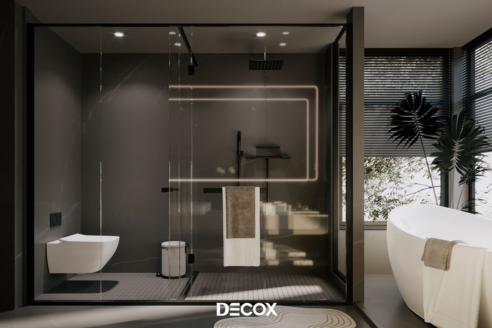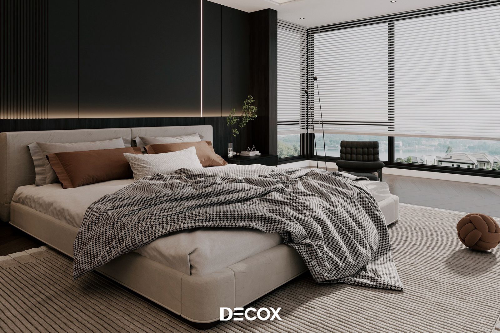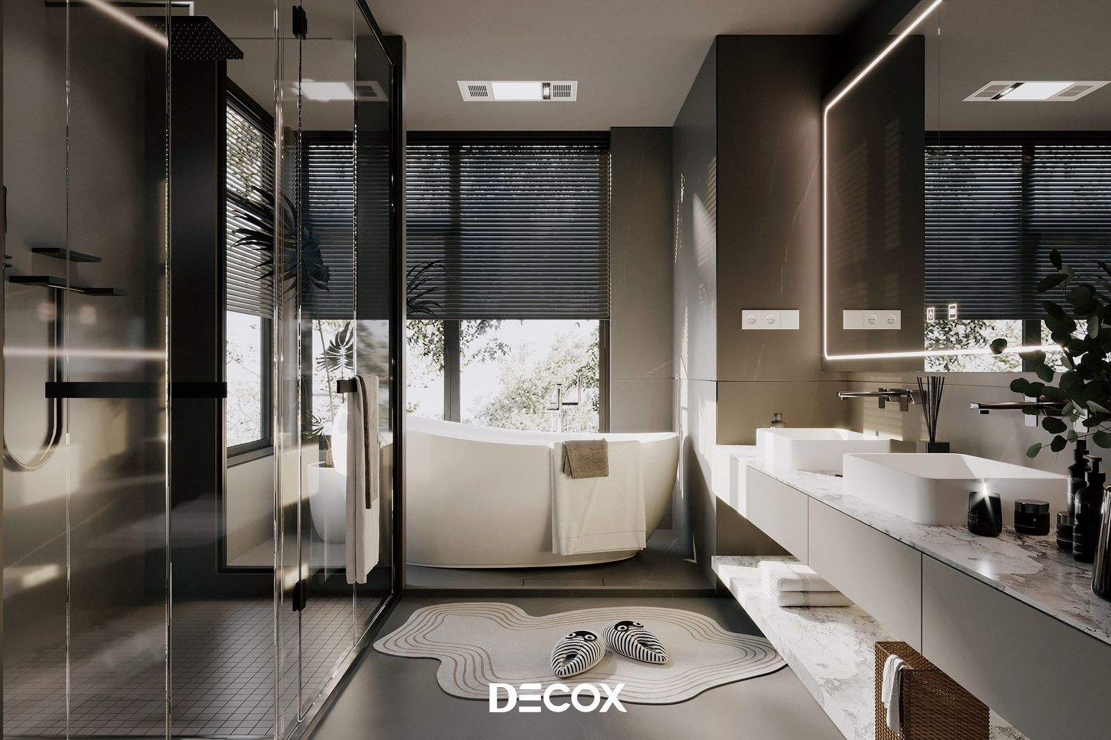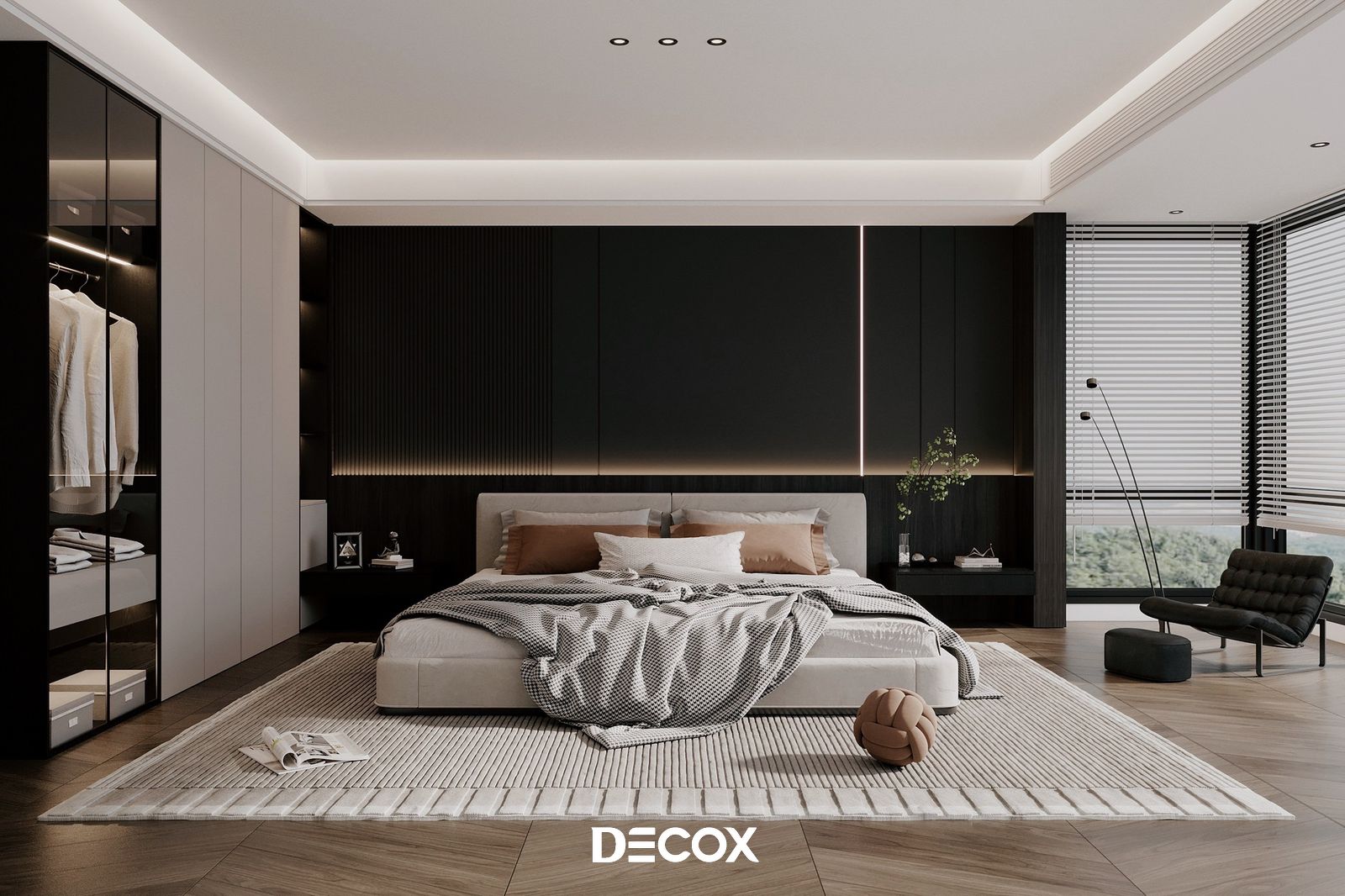 Trong bài viết hôm nay, Decox Design muốn chia sẻ một căn nhà phố 4 tầng tọa lạc tại Quận Bình Thạnh, TP Hồ Chí Minh mà chúng tôi vừa đảm nhận trong quý đầu tiên của năm 2023. Thiết kế nhà phố như một bản bản giao hòa giữa tỷ lệ hình khối - đường nét, chất liệu và màu sắc. Chính sự cân bằng này đã làm nên nét độc đáo riêng của công trình dẫu có theo lối thiết kế đã quá quen thuộc - phong cách hiện đại. Về tổng thể, căn nhà mang nét đẹp cá tính với hình khối vuông vức mang đến cảm nhận về sự vững chải nhưng cũng không thiếu phần mềm mại nhờ những đường nét cong uyển chuyển. Nét tinh túy của dự án còn nằm ở bảng màu sử dụng: xám - đen chủ đạo. Tuy sử dụng bảng màu tối cùng những vật liệu rắn rỏi, lạnh như bê tông, kính, thế nhưng công trình vẫn đạt được sự cân bằng nhờ sự xuất hiện của chất liệu gỗ mộc mạc cùng hệ thống ánh sáng phù hợp.