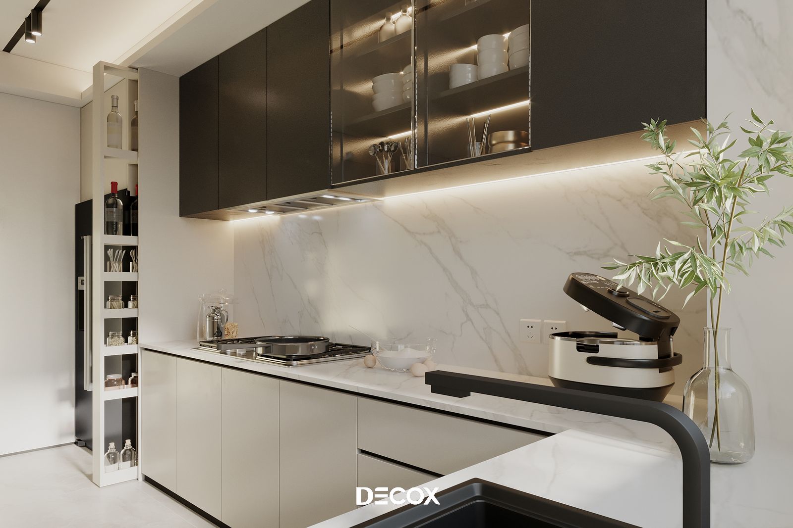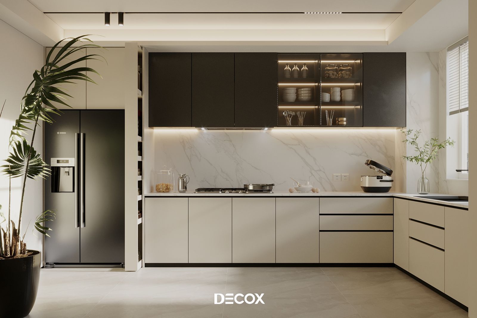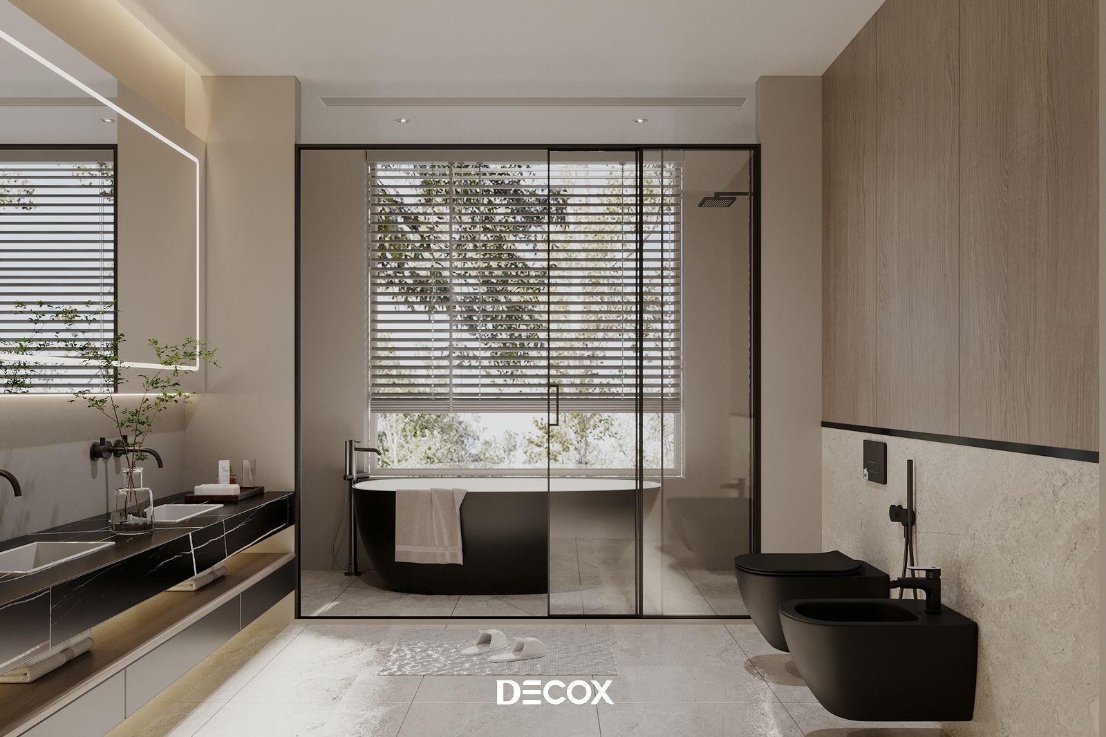 Dự án thiết kế và thi công lần này mà Decox Design đảm nhận là một căn nhà phố có kết cấu 4 tầng nhỏ xinh mang tên BQ House. Với bộ tiêu chí đơn giản, sang trọng đồng thời hàm chứa nét đẹp thuần Việt, KTS của Decox đã lựa chọn thiết kế kiến trúc theo phong cách hiện đại, thời thượng. Tổng thể ngôi nhà là sự pha trộn giữa sắc trắng cùng một chút nâu mộc mạc như một ly cà phê sữa đầy chất vị, có đắng có ngọt hòa quyện đầy tinh tế. Không chỉ bứt phá trong việc sử dụng bảng màu “tuy quen mà lạ”, điểm nhấn đặc biệt của dự án còn nằm ở việc lồng ghép yếu tố gạch kính vào công trình. Thiết kế gạch kính không chỉ gợi cảm giác quen thuộc, mang hương vị của một Việt Nam thuở xưa cũ nhưng cũng đã được biến tấu phá cách để thích hợp với xu hướng thời đại, mang đến điểm nhấn đặc sắc cho nhà mà đây còn là giải pháp lấy sáng hiệu quả cho căn nhà luôn tràn ngập năng lượng và sinh khí.