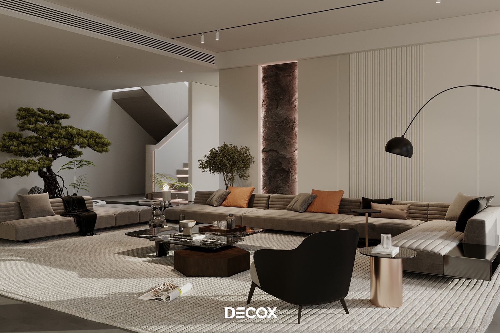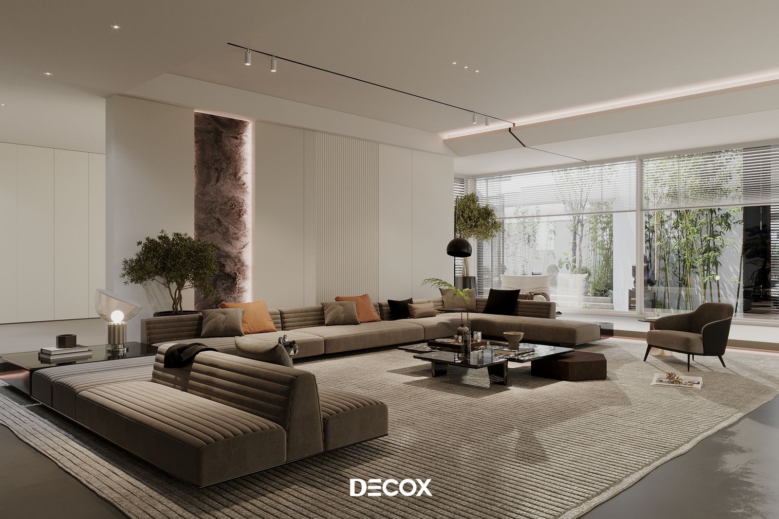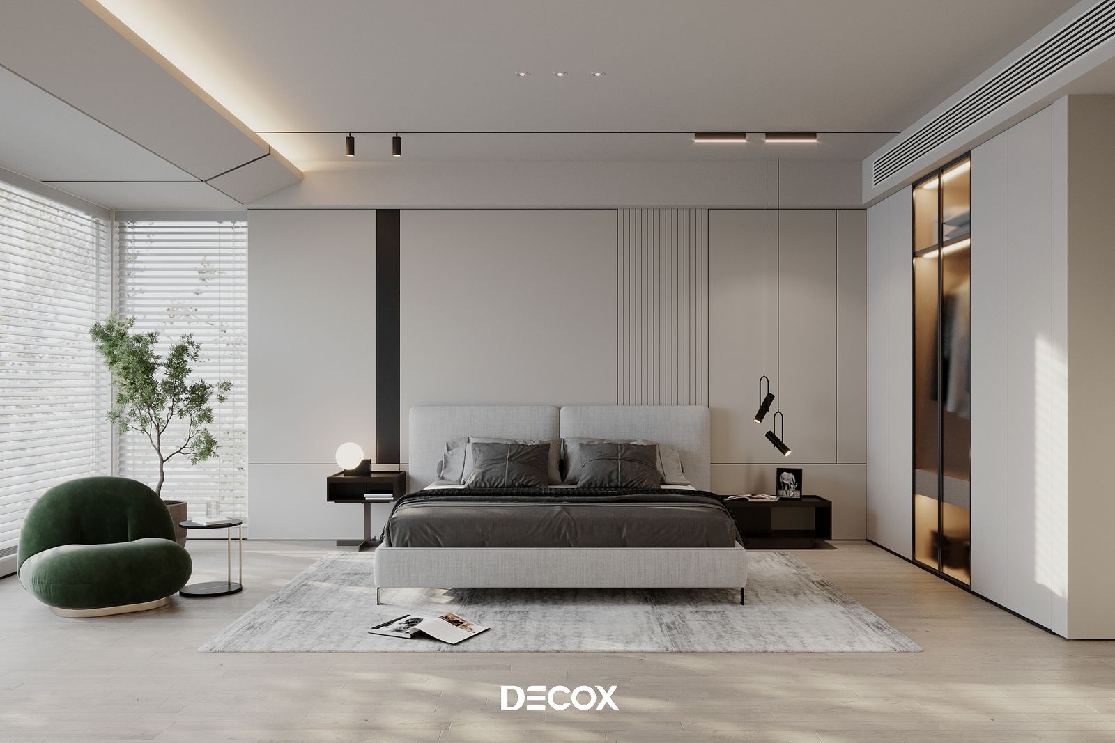 Nếu ví kiến trúc như một “khung xương” thì thiết kế nội thất lại chính là “linh hồn” để cấu thành một thể hoàn chỉnh. Nếu ngôi nhà cung cấp cho ta một nơi dừng chân thì không gian lại nơi nuôi dưỡng những xúc cảm, để bạn tìm lại sự cân bằng trong thân - tâm - trí. Bởi lẽ kiến trúc và nội thất là hai thành phần không thể tách rời, vậy nên, KTS đã lựa chọn sử dụng bảng màu, chất liệu tương đồng để tạo sự kết nối giữa nội - ngoại thất và các không gian. Bảng màu chủ đạo ở đây là gam màu trung tính nhẹ nhàng như đen - trắng - xám kết hợp cùng những tone màu nóng nhấn điểm trên đồ nội thất. Thiết kế hướng theo lối bố trí tinh giản, tiết chế nội thất để mang đến một không gian sinh hoạt rộng rãi nhưng vẫn đảm bảo đáp ứng đầy đủ công năng và giá trị thẩm mỹ cho căn nhà.