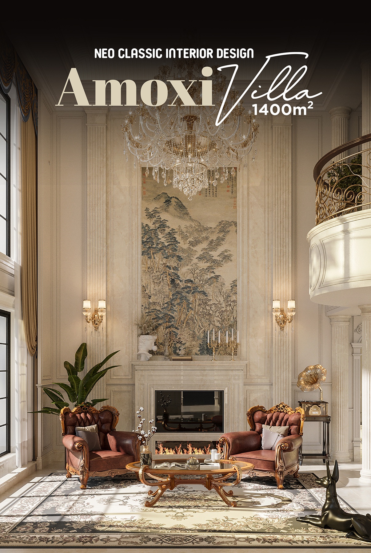 Không gian nội thất Amoxi Villa hứa hẹn sẽ đưa bạn lạc vào bản giao hưởng hòa quyện giữa nền văn hóa phương Đông và phương Tây. Dự án mang màu sắc nhẹ nhàng, ấm cúng nhưng vẫn phô diễn đầy đủ nét đẹp hoa lệ, đắt đỏ của một không gian sống đẳng cấp. Điều này được thể hiện rõ nét thông qua sự chuẩn chỉ, đầu tư trong từng chi tiết từ tính đối xứng - cân bằng, nội thất sang trọng, đèn chùm hoa lệ cho đến những dấu ấn từ đường nẹp, phào chỉ, hoa văn tinh tế và cả những đường cong mềm mại, uyển chuyển, chạm trổ công phu trên các món đồ nội thất.