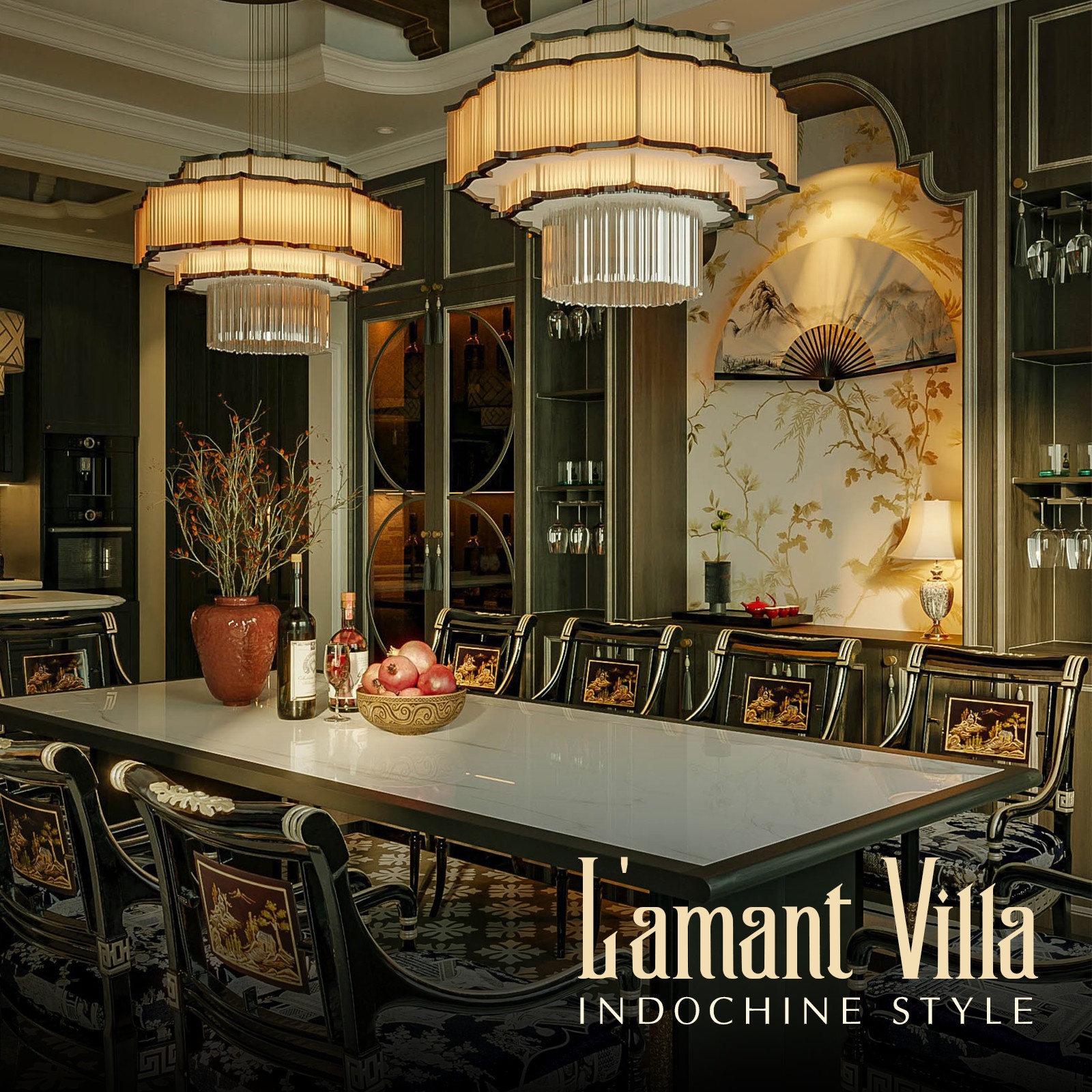 Tại L'amant Villa, thiết kế nội thất đem đến điểm chạm cảm xúc khi chọn lựa phong cách Indochine chủ đạo, kết hợp cùng nội thất được điêu khắc tỉ mỉ thấm nhuần nét đẹp văn hóa tạo nên một không gian sống giàu chiều sâu nghệ thuật và lắng đọng giữa nhịp sống hiện đại.