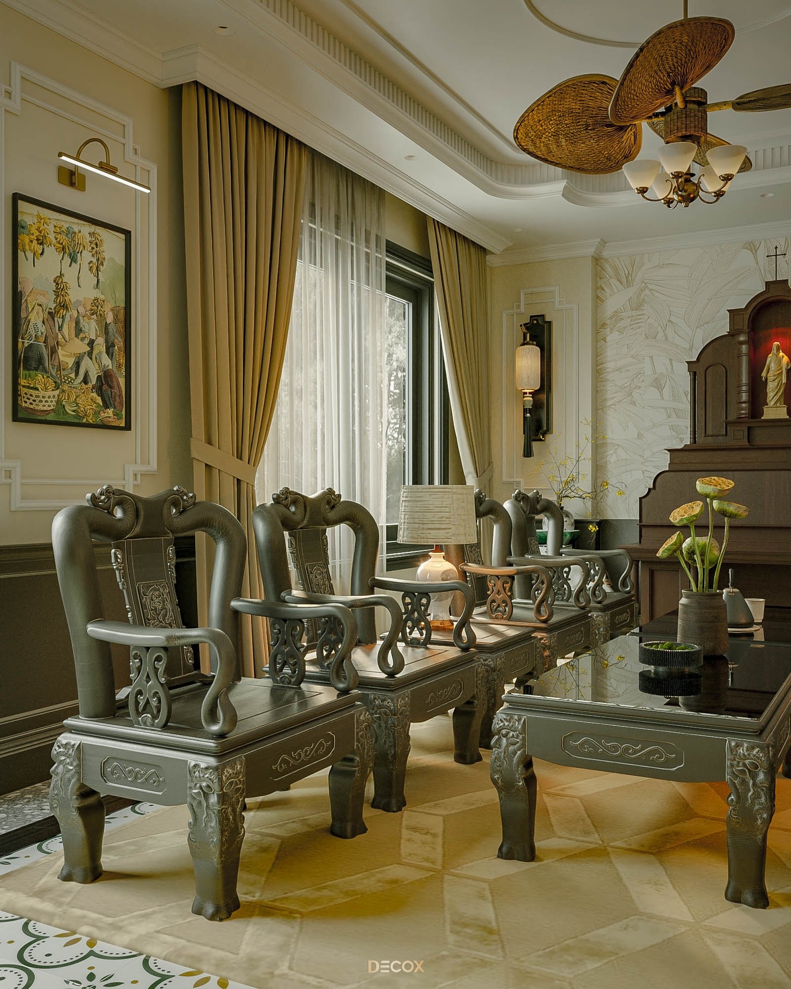 Nét đẹp tinh tế của văn hóa truyền thống luôn là nét chạm sâu sắc nhất đến tâm hồn mỗi con người Việt. Bởi mỗi nếp nhà là một câu chuyện riêng, thế nên, Decox luôn tìm cách cân bằng giữa đời sống vật chất và đời sống tinh thần trong mỗi dự án.