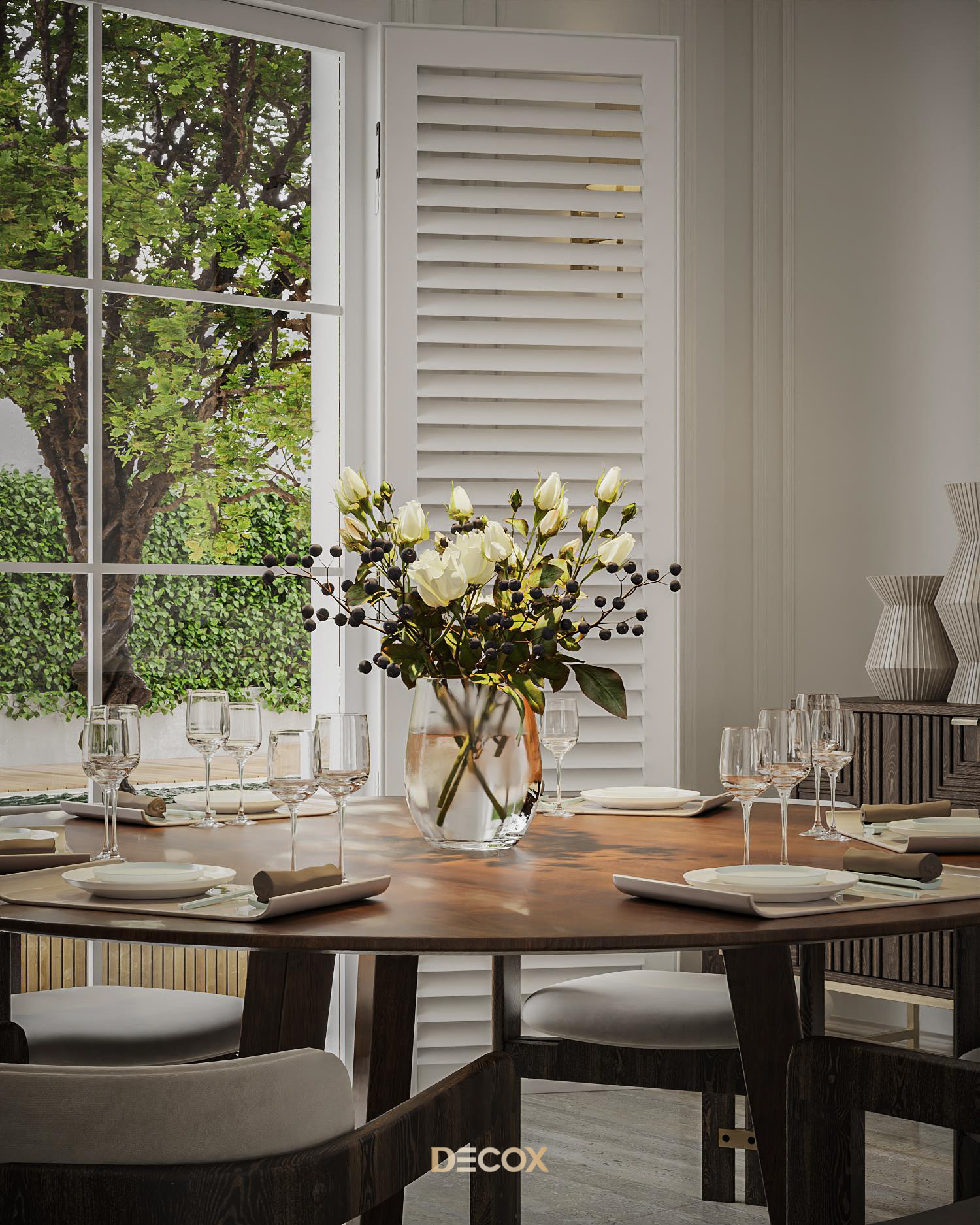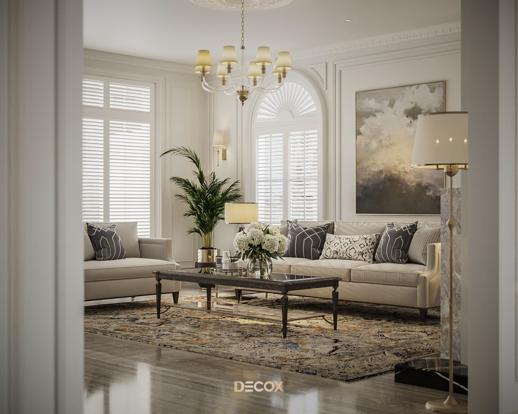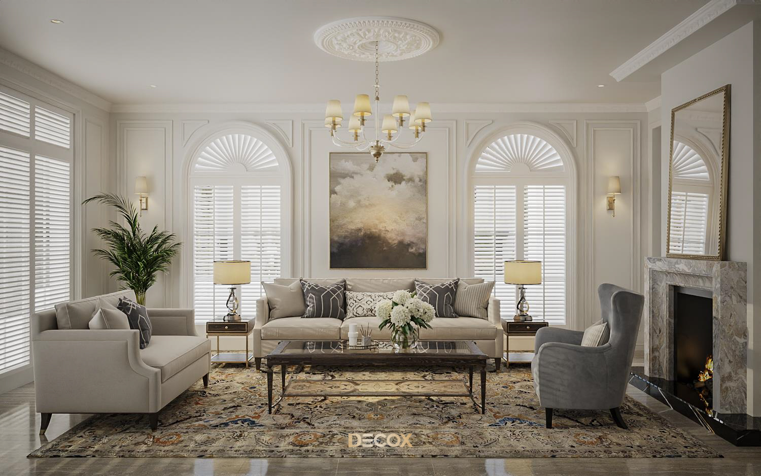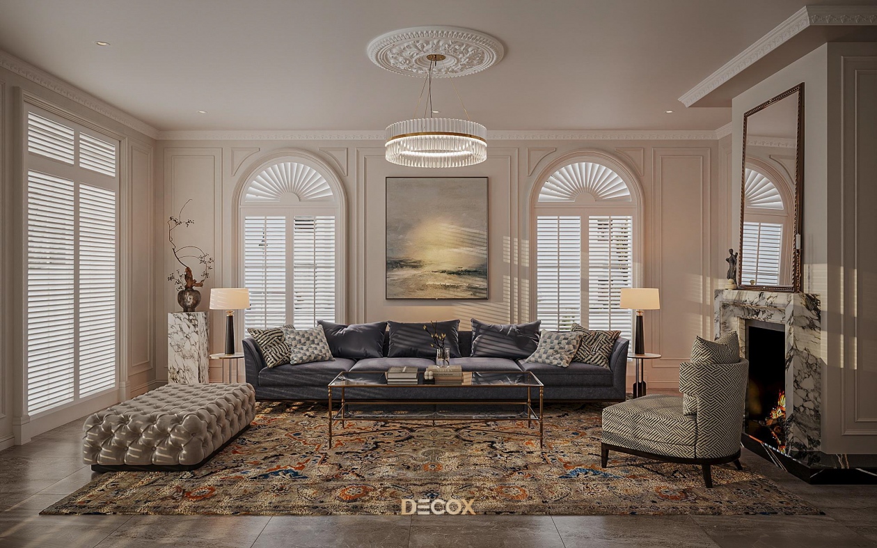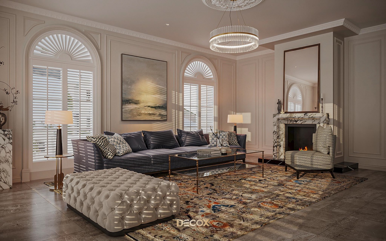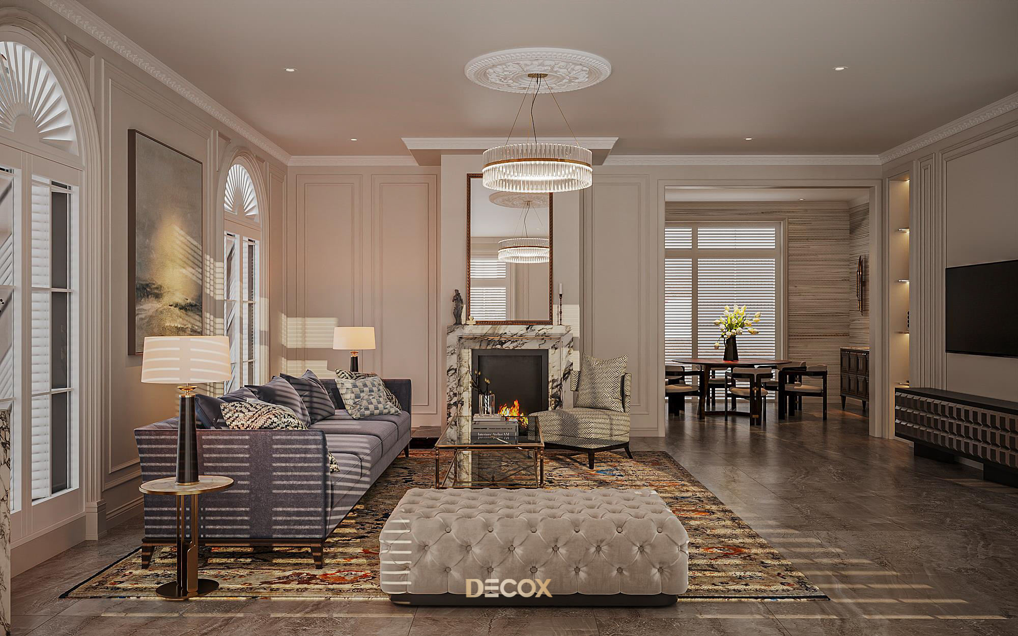 Đề bài của gia chủ là mong muốn một không gian sống sang trọng, tinh tế, hài hòa với khối kiến trúc và có vẻ đẹp vượt thời gian. Thế nên, Decox đã mang đến một thiết kế lấy cảm hứng từ thẩm mỹ Tây phương, nhấn mạnh vào sự tinh tế đặc trưng của phong cách Tân cổ điển. Với sự nhẹ nhàng của tông màu trắng chủ đạo, kết hợp với chất liệu gỗ và ánh sáng vàng dịu nhẹ đã tạo nên không gian thân mật, ấm cúng, nuôi dưỡng cảm xúc từ sâu trong tâm hồn.