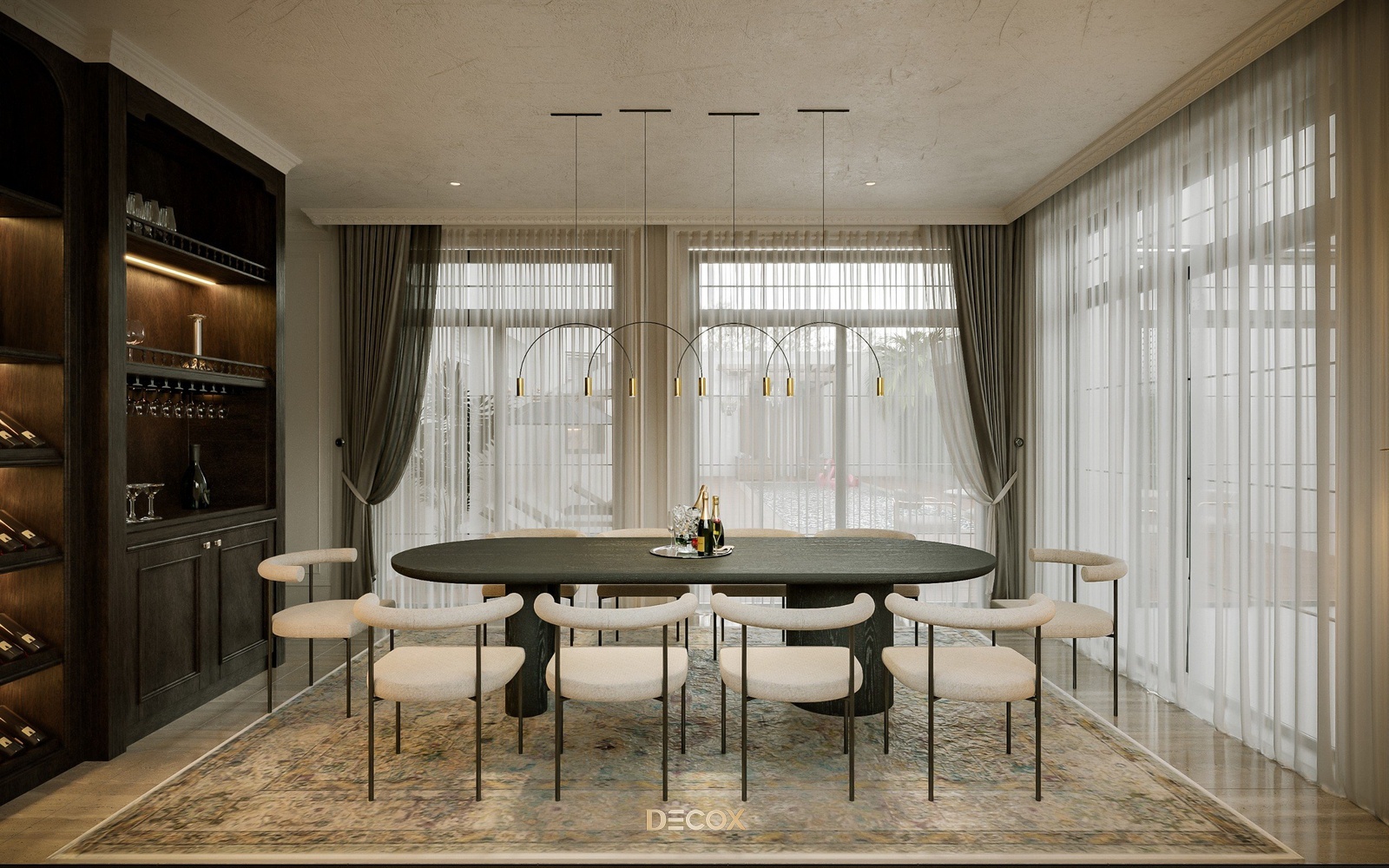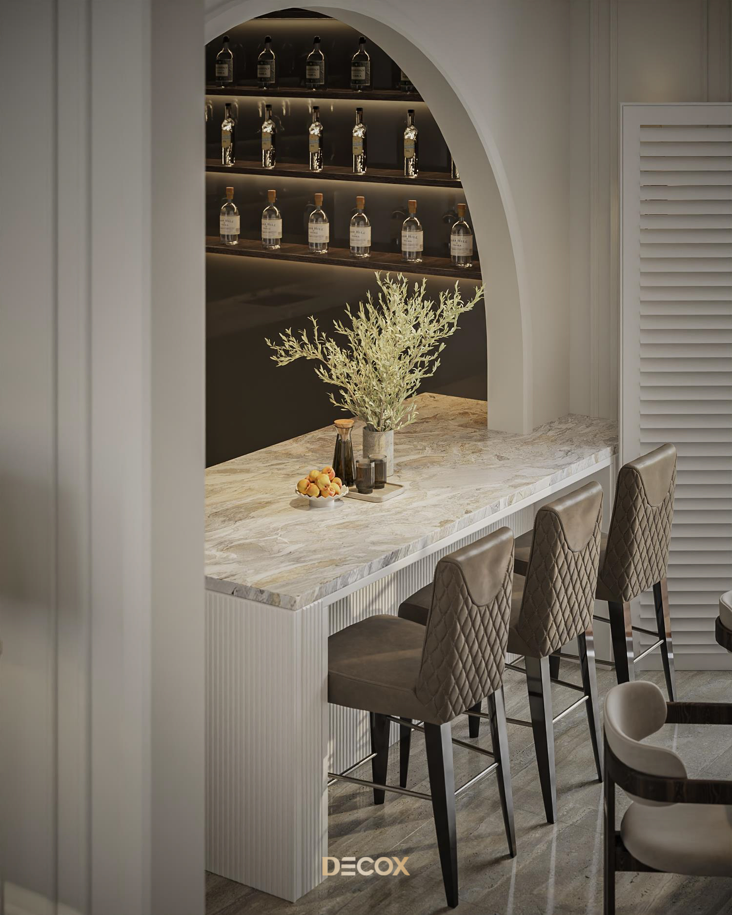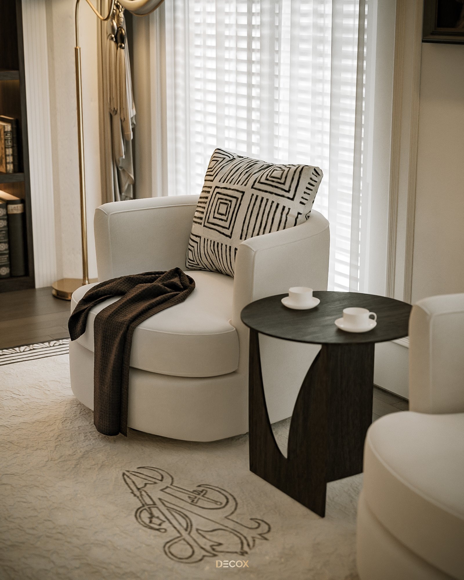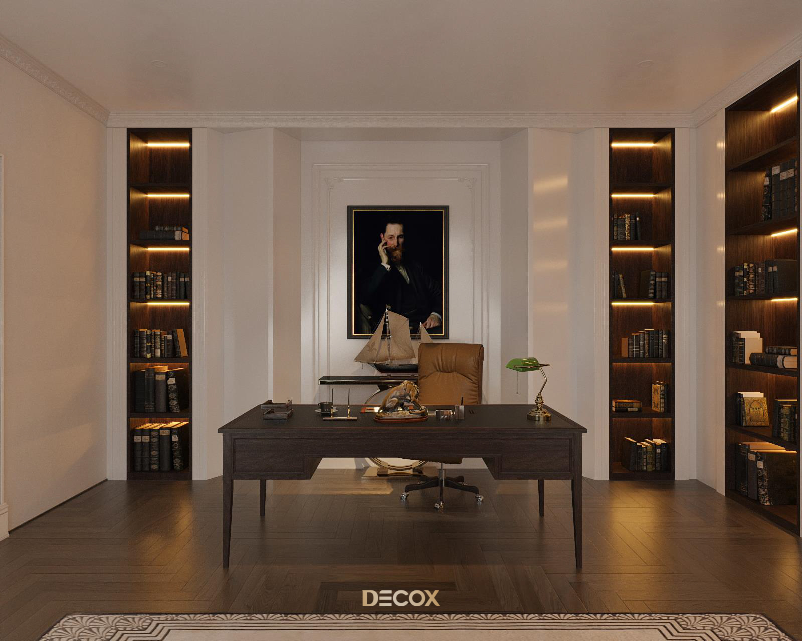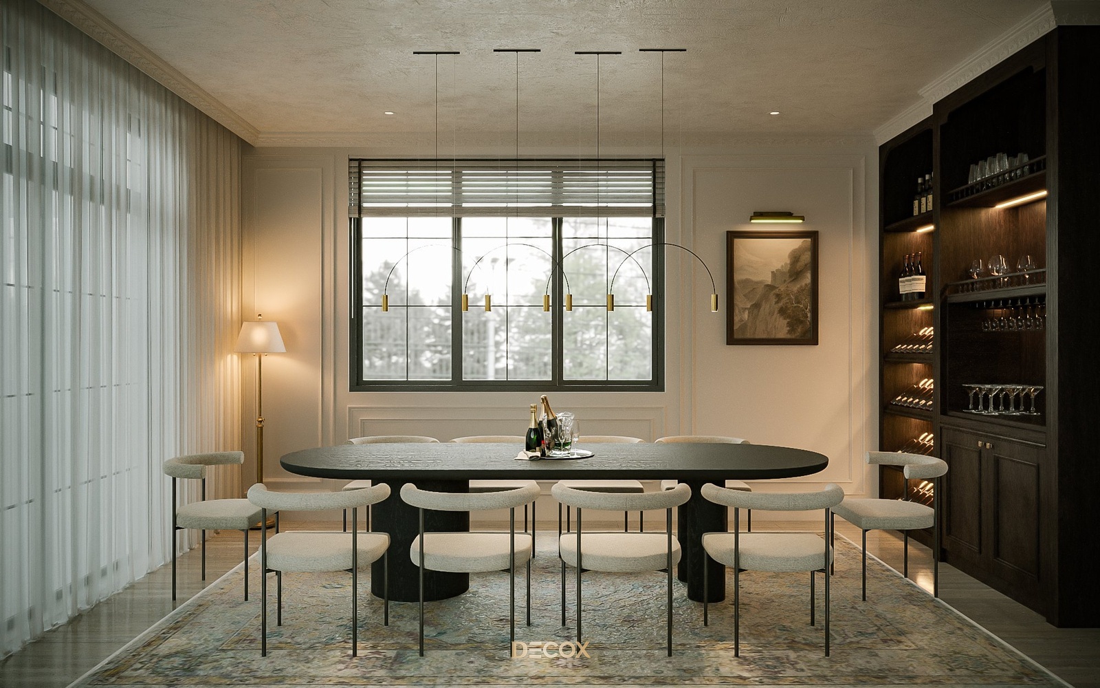 Đề bài của gia chủ là mong muốn một không gian sống sang trọng, tinh tế, hài hòa với khối kiến trúc và có vẻ đẹp vượt thời gian. Thế nên, Decox đã mang đến một thiết kế lấy cảm hứng từ thẩm mỹ Tây phương, nhấn mạnh vào sự tinh tế đặc trưng của phong cách Tân cổ điển. Với sự nhẹ nhàng của tông màu trắng chủ đạo, kết hợp với chất liệu gỗ và ánh sáng vàng dịu nhẹ đã tạo nên không gian thân mật, ấm cúng, nuôi dưỡng cảm xúc từ sâu trong tâm hồn.