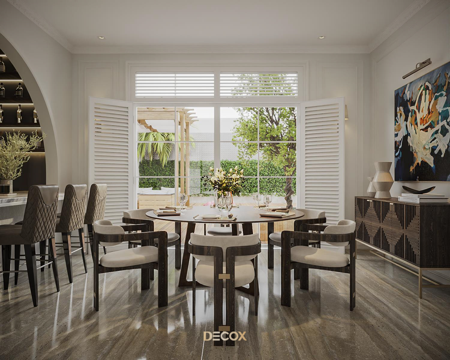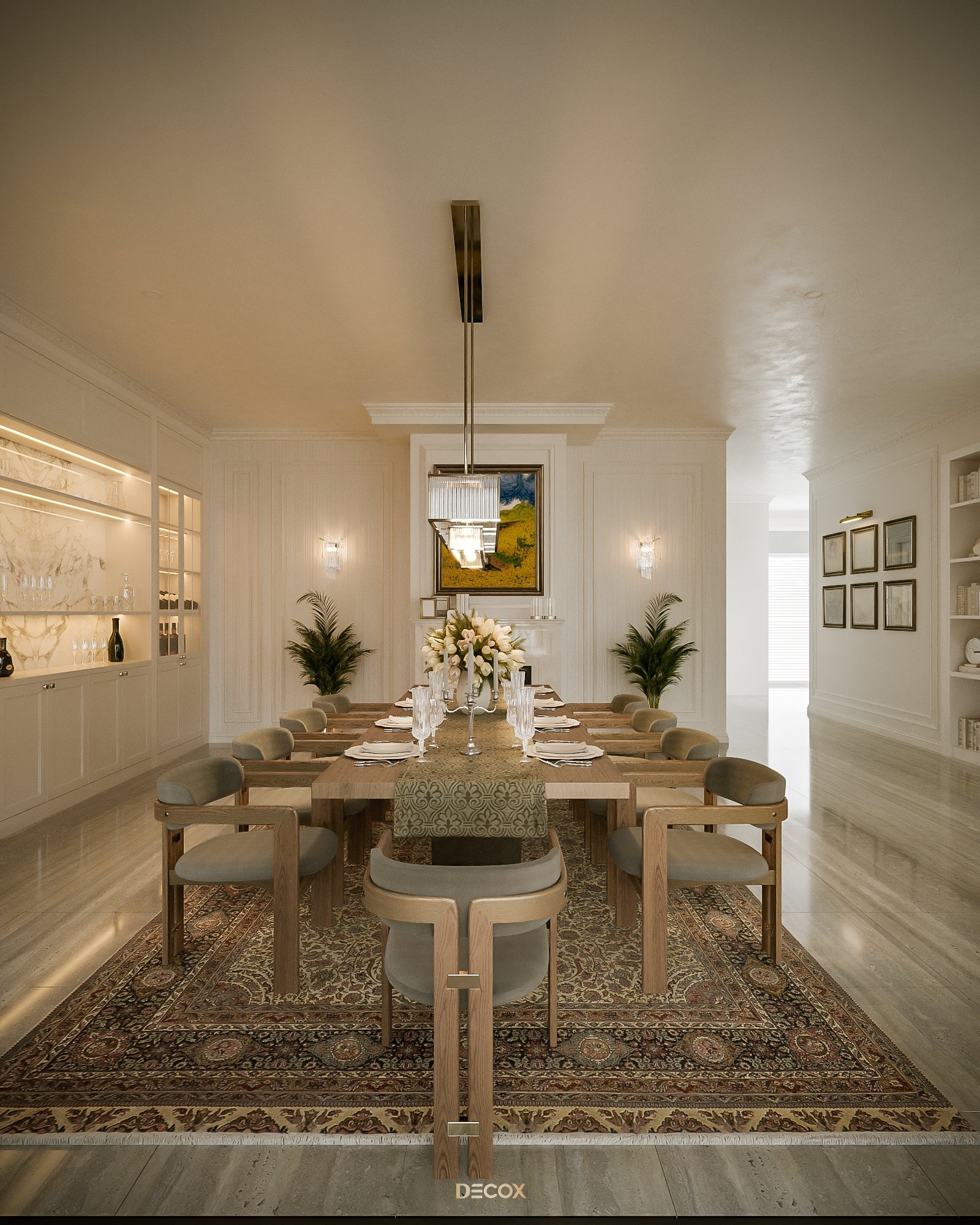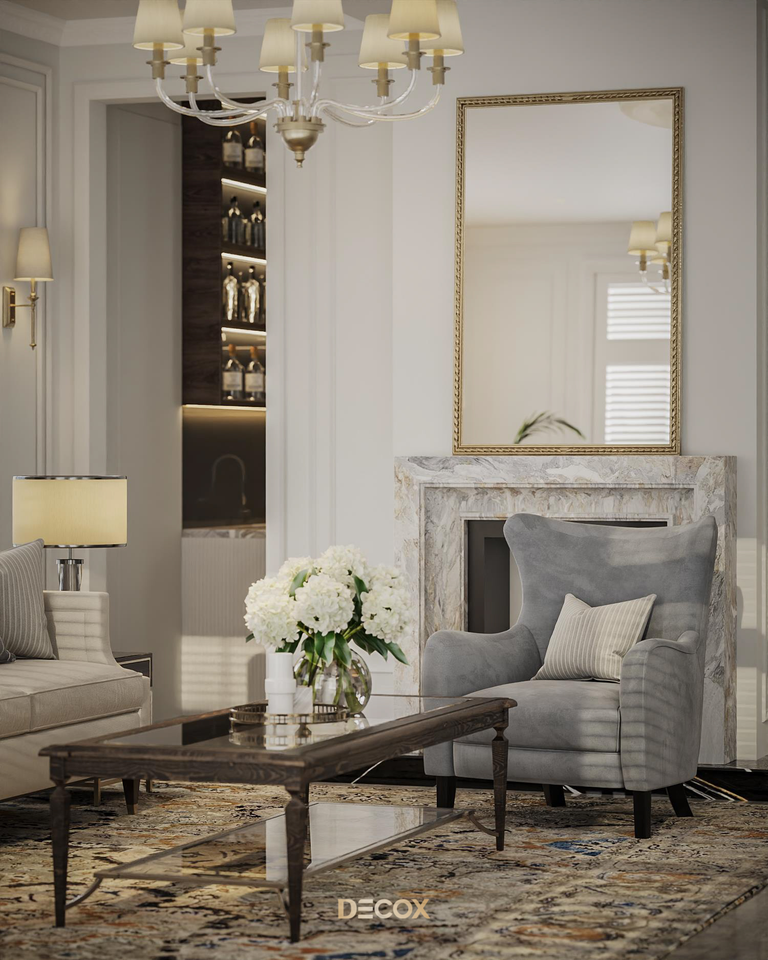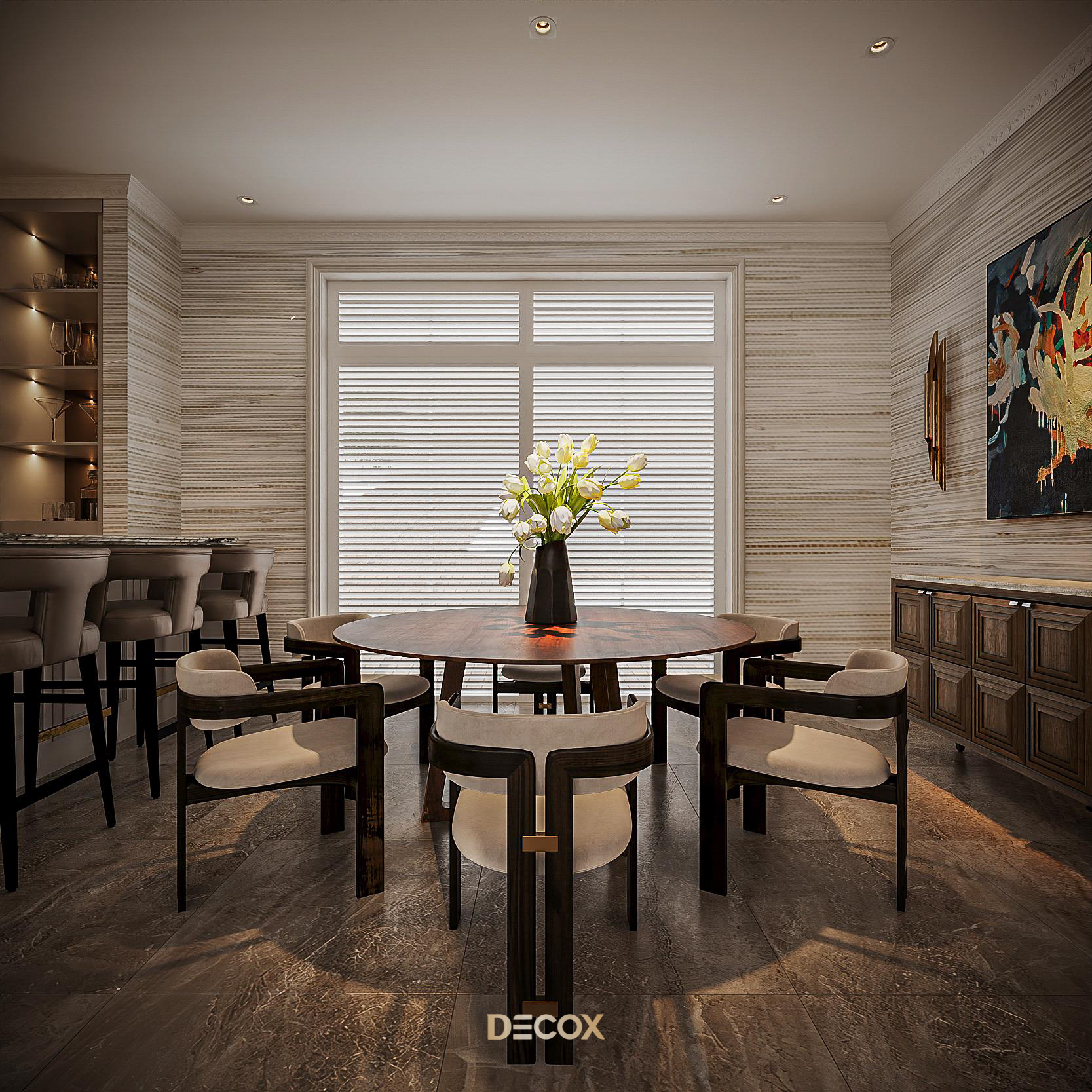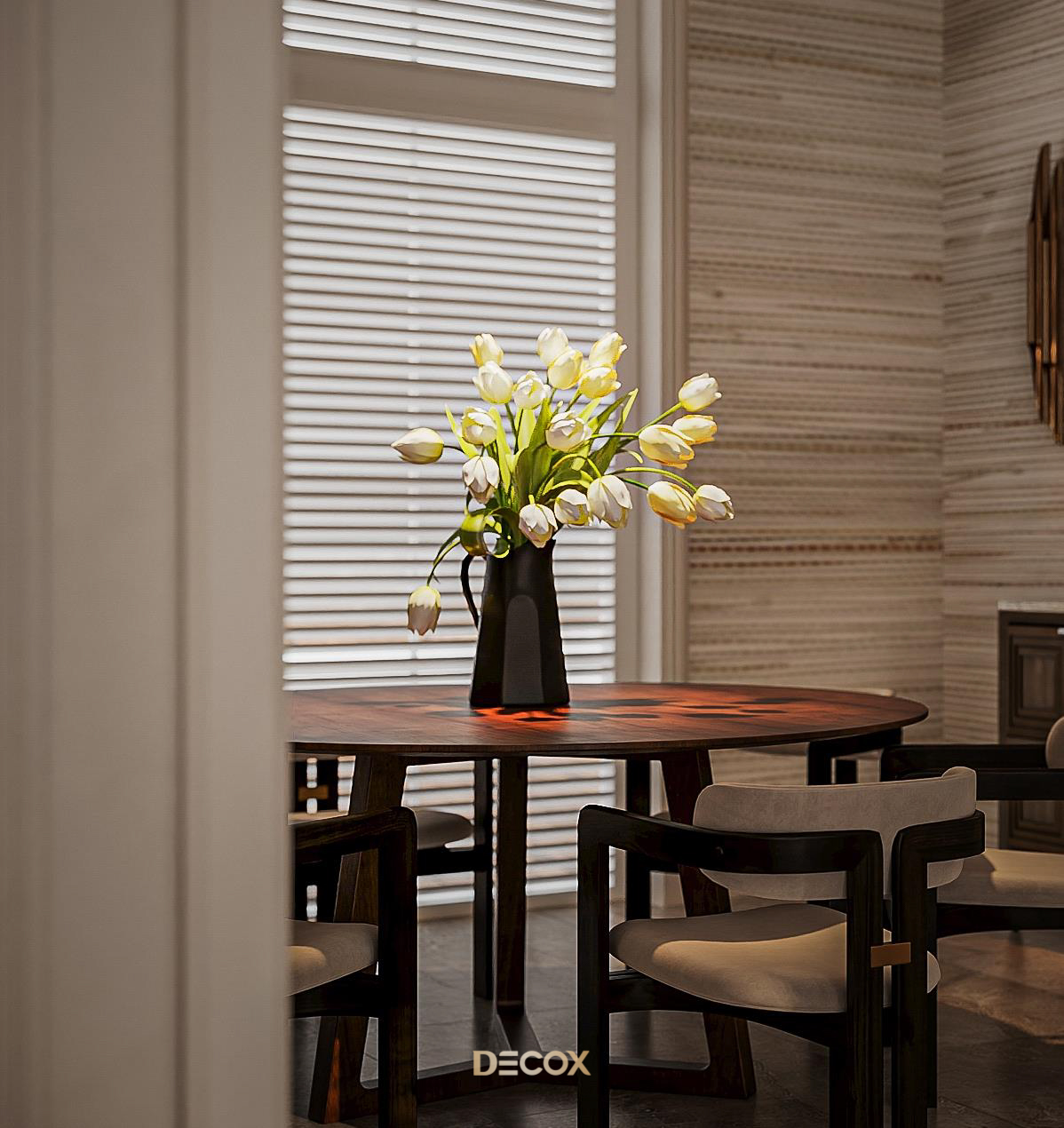 Đề bài của gia chủ là mong muốn một không gian sống sang trọng, tinh tế, hài hòa với khối kiến trúc và có vẻ đẹp vượt thời gian. Thế nên, Decox đã mang đến một thiết kế lấy cảm hứng từ thẩm mỹ Tây phương, nhấn mạnh vào sự tinh tế đặc trưng của phong cách Tân cổ điển. Với sự nhẹ nhàng của tông màu trắng chủ đạo, kết hợp với chất liệu gỗ và ánh sáng vàng dịu nhẹ đã tạo nên không gian thân mật, ấm cúng, nuôi dưỡng cảm xúc từ sâu trong tâm hồn.