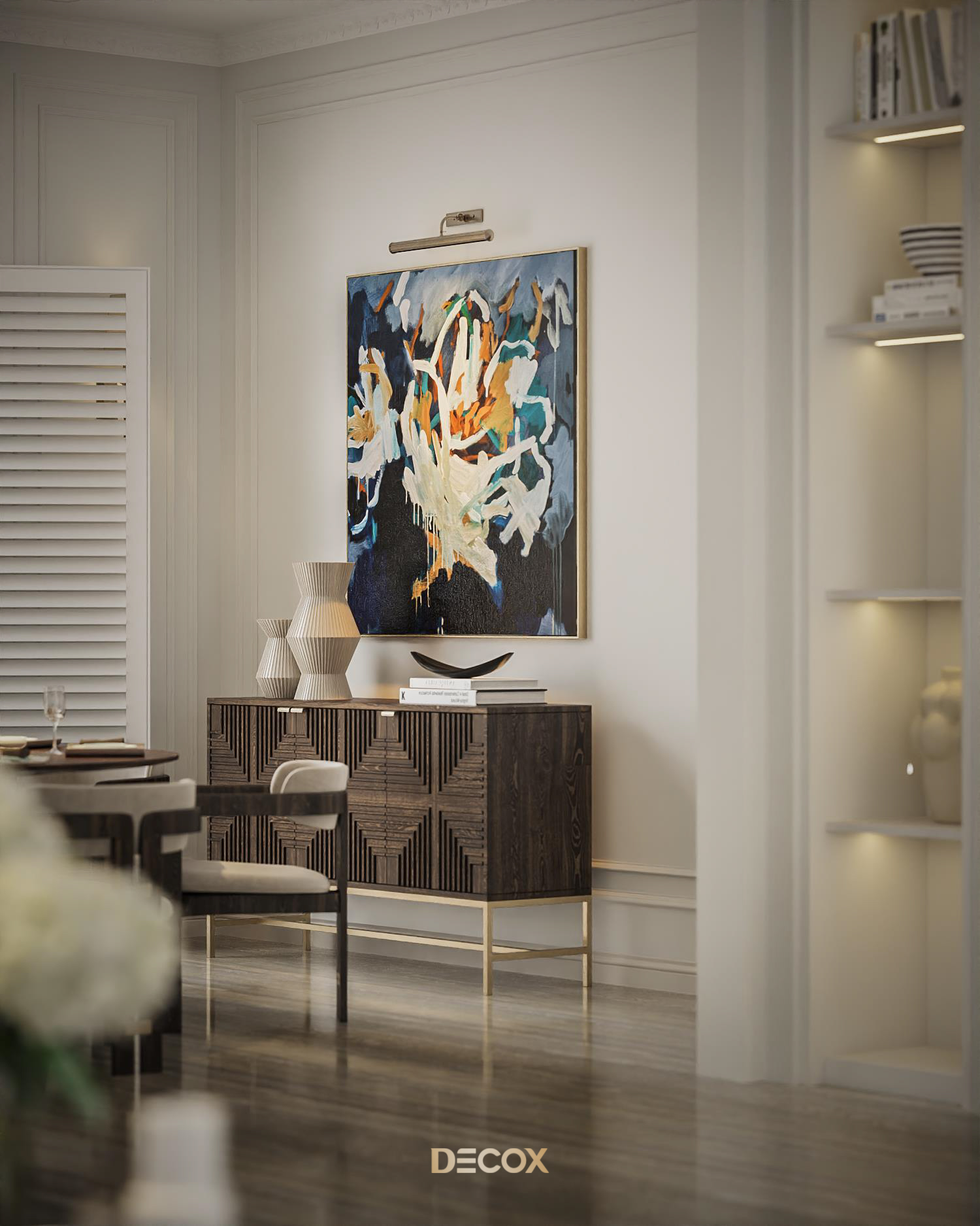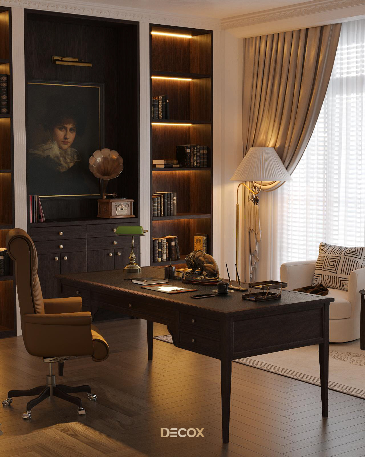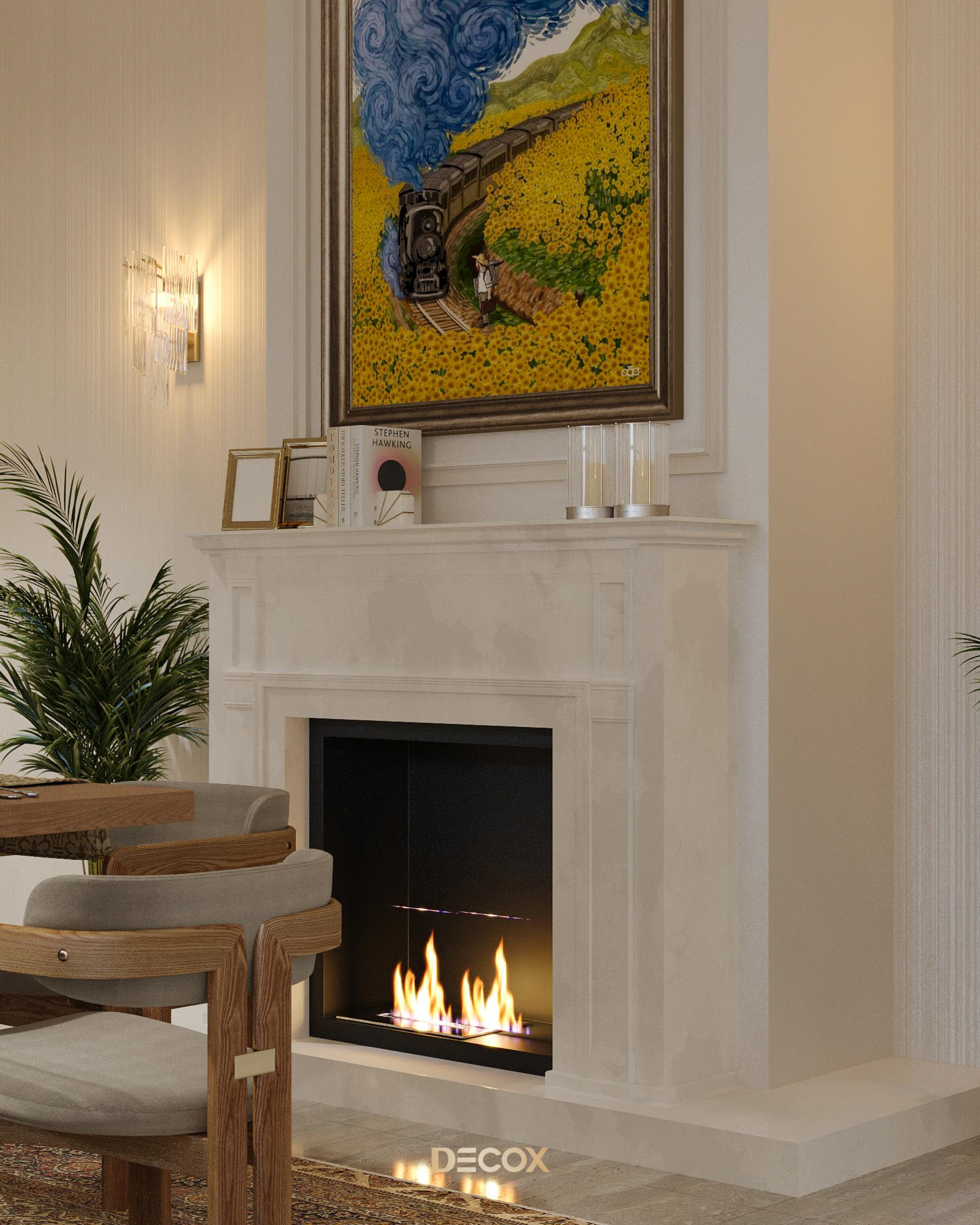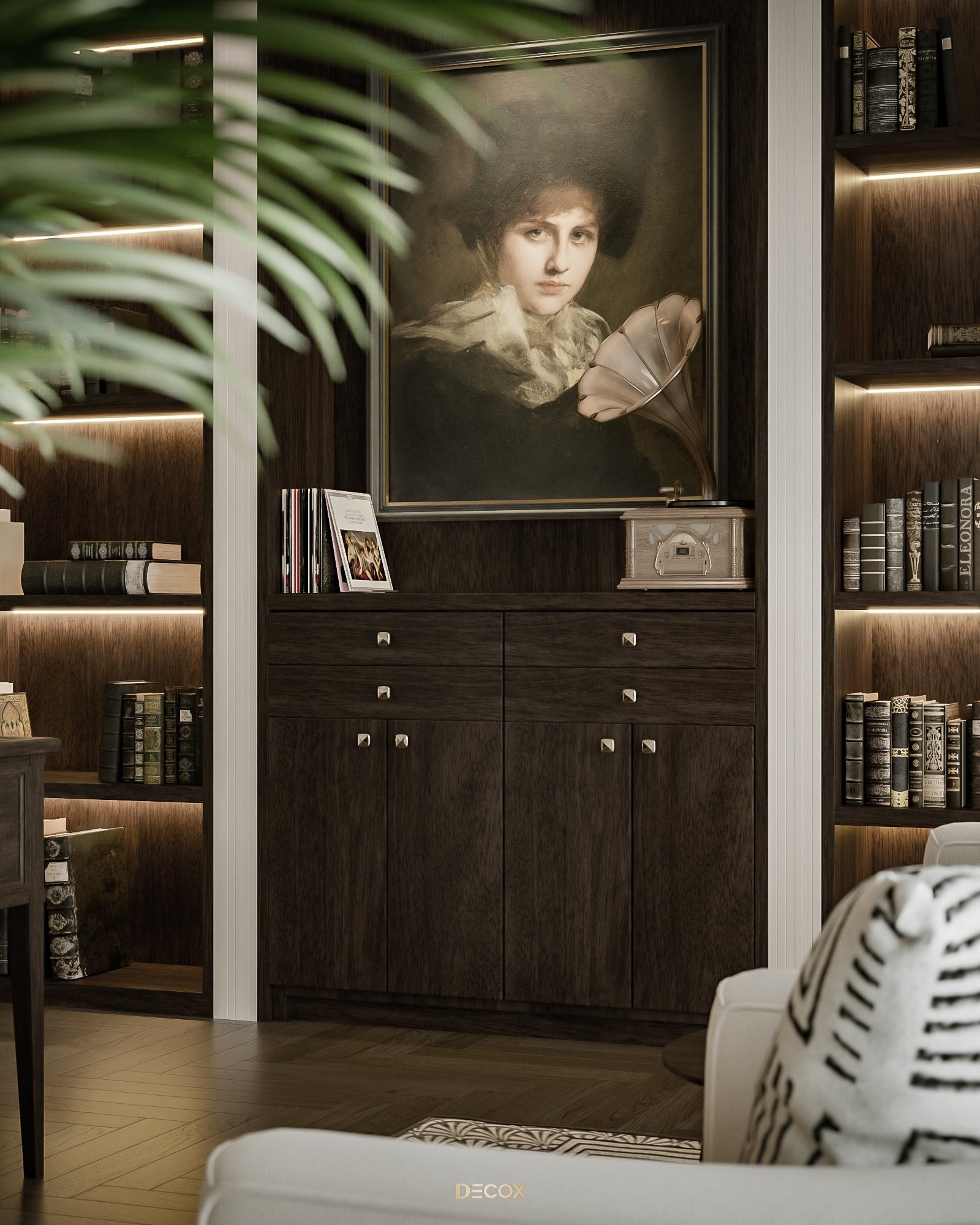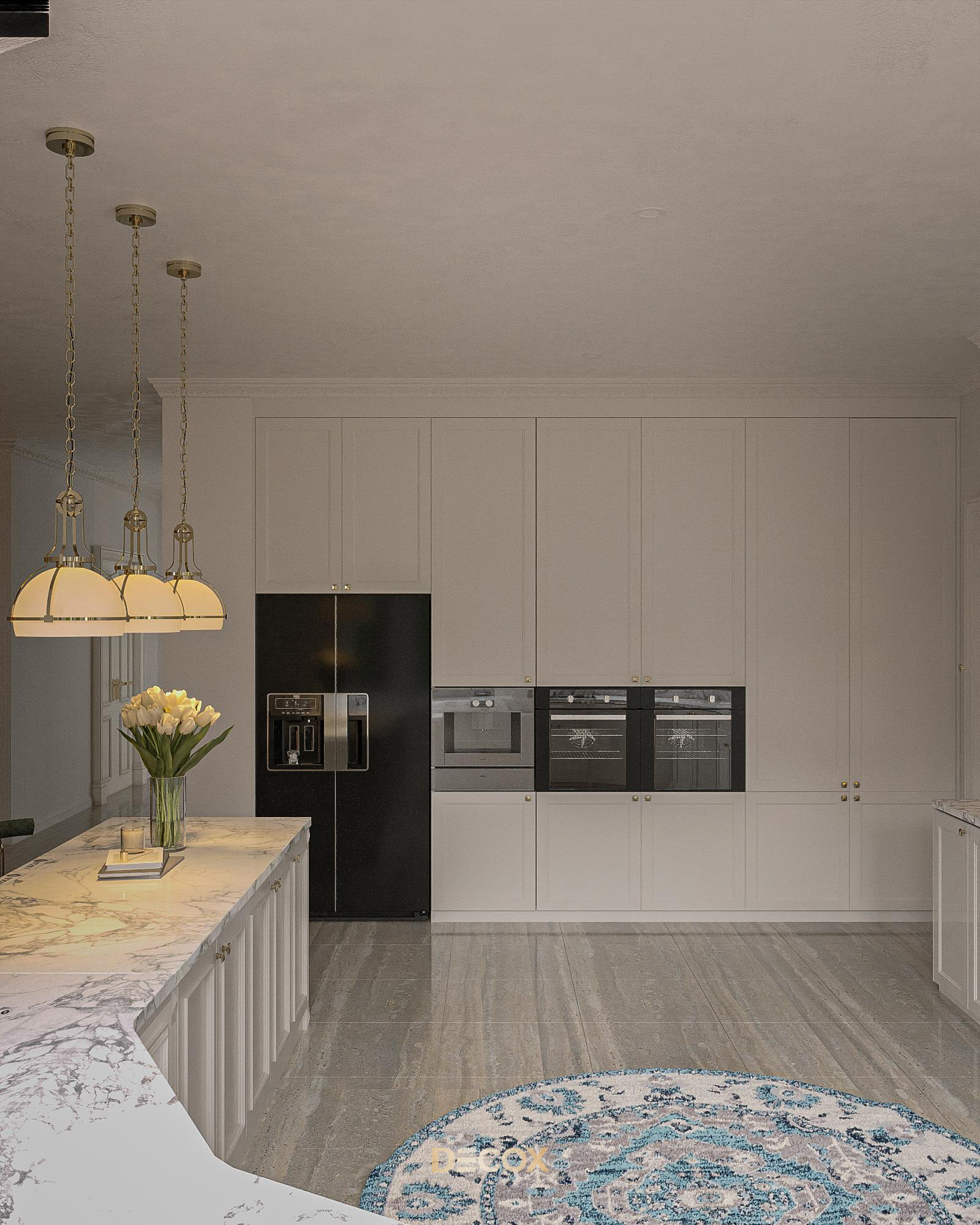 Đề bài của gia chủ là mong muốn một không gian sống sang trọng, tinh tế, hài hòa với khối kiến trúc và có vẻ đẹp vượt thời gian. Thế nên, Decox đã mang đến một thiết kế lấy cảm hứng từ thẩm mỹ Tây phương, nhấn mạnh vào sự tinh tế đặc trưng của phong cách Tân cổ điển. Với sự nhẹ nhàng của tông màu trắng chủ đạo, kết hợp với chất liệu gỗ và ánh sáng vàng dịu nhẹ đã tạo nên không gian thân mật, ấm cúng, nuôi dưỡng cảm xúc từ sâu trong tâm hồn.