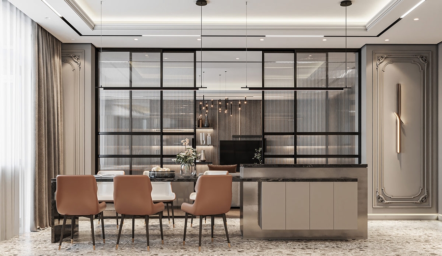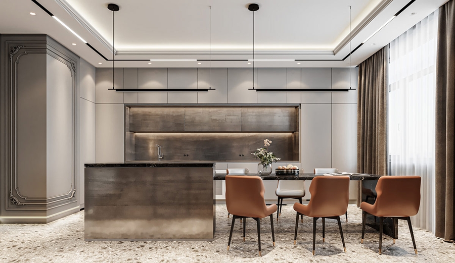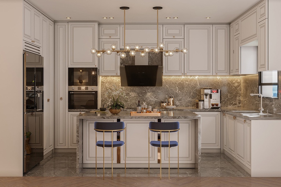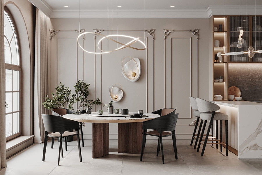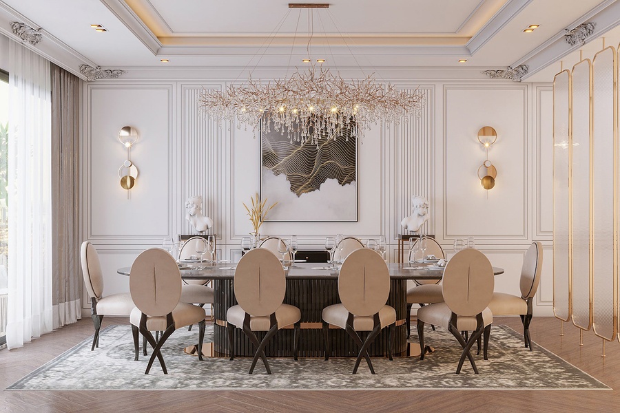 - Nội thất phòng bếp, phòng ăn biệt thự tân cổ điển