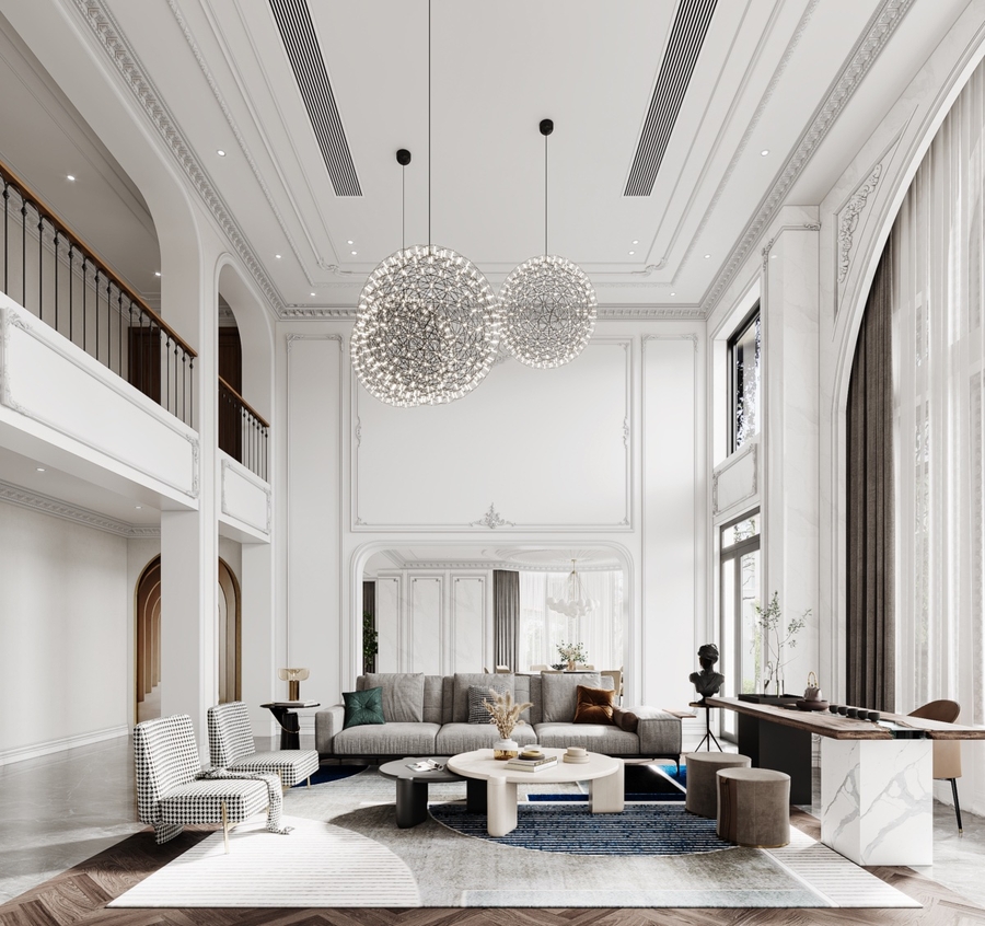 - Thiết kế nội thất biệt thự tân cổ điển theo từng khu vực chức năng