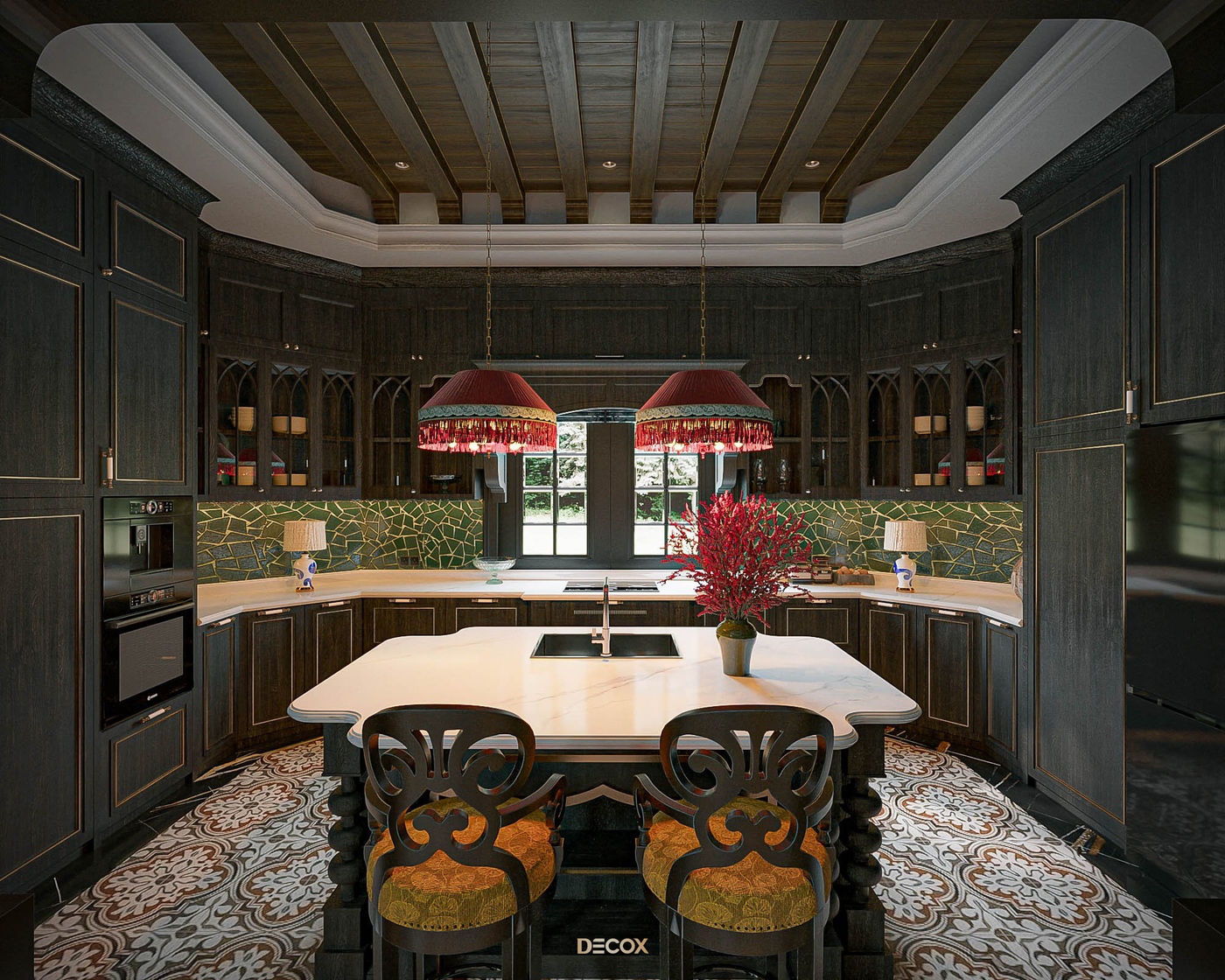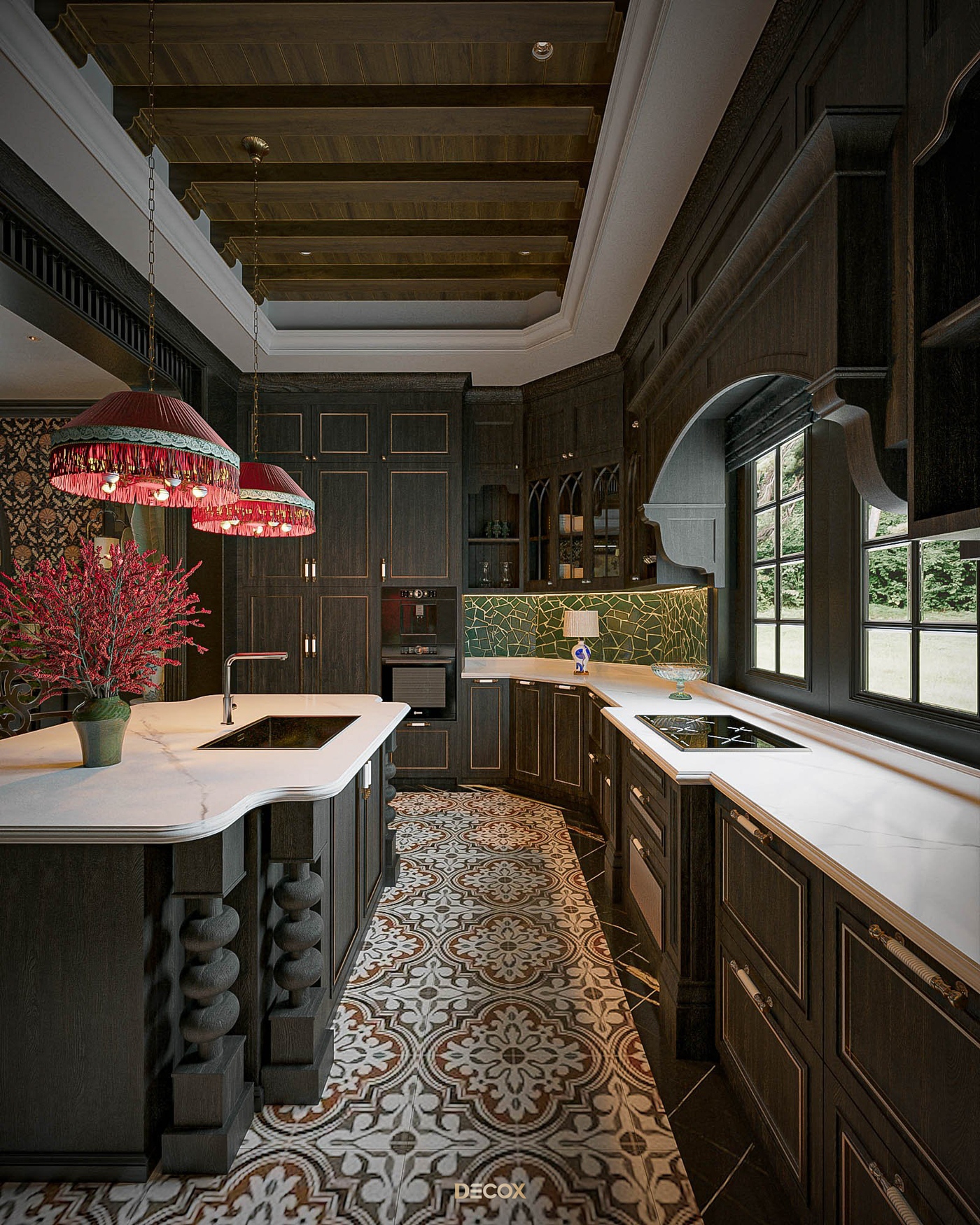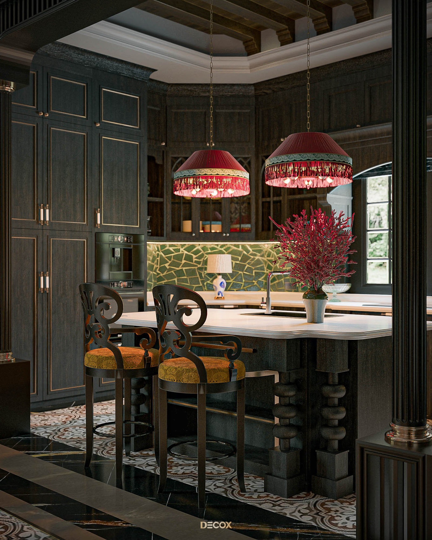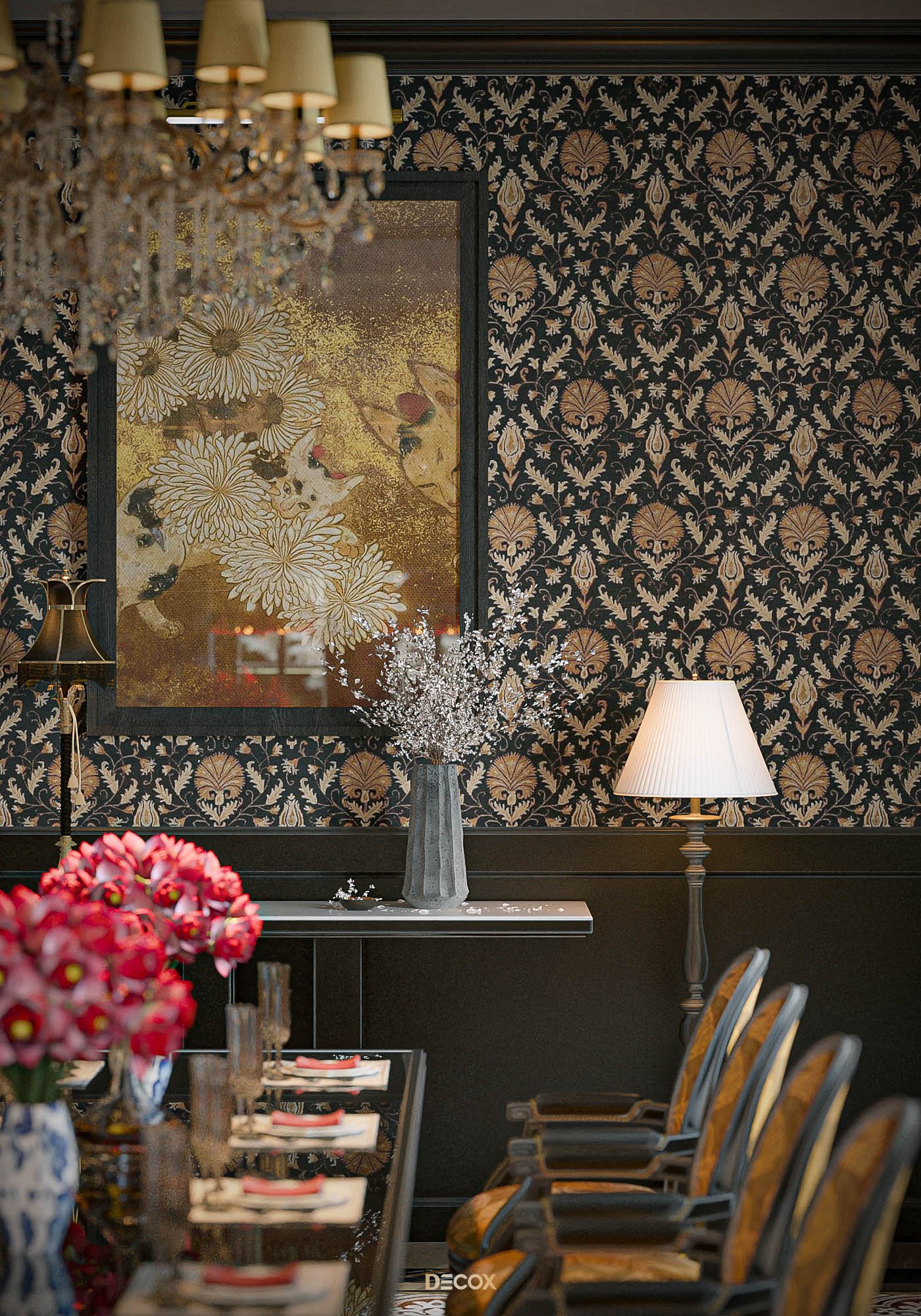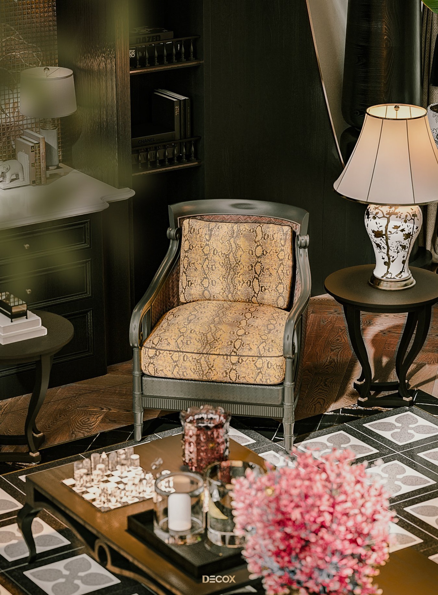 TIME VILLAS - Một căn biệt thự hòa trộn giữa phong cách Đông Dương và Art Nouveau do Decox thực hiện. Thiết kế nội thất là sự hiện diện của gam màu trầm ấm kết hợp với gỗ mun đen tạo nên sự quý phái sang trọng quyền lực cho gia chủ.