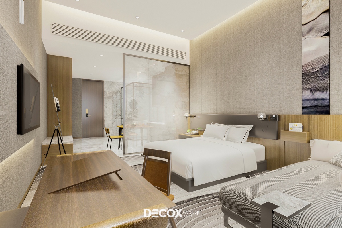 Với những căn hộ có diện tích nhỏ dưới 40m2 thông thường chủ đầu tư cũng như KTS sẽ hướng đến lối thiết kế nội thất hiện đại, tối giản nhằm đảm bảo tính thẩm mỹ cũng như công năng và tiện ích cho người sử dụng. Thế nhưng việc đó không đồng nghĩa với căn hộ dịch vụ nhỏ là không sang trọng, cao cấp. Và mẫu dự án thiết kế căn hộ dịch vụ mà Decox Design muốn giới thiệu đến bạn sau đây chính là một dẫn chứng cụ thể cho vấn đề trên. Nhìn chung, tổng thể căn hộ được thiết kế theo phong cách hiện đại pha chút luxury và bố cục chia làm 2 không gian riêng biệt với cách thiết kế khác nhau. Sau đây, hãy cùng Decox tham quan xem bên trong căn hộ dịch vụ 40m2 này có những gì nhé.
