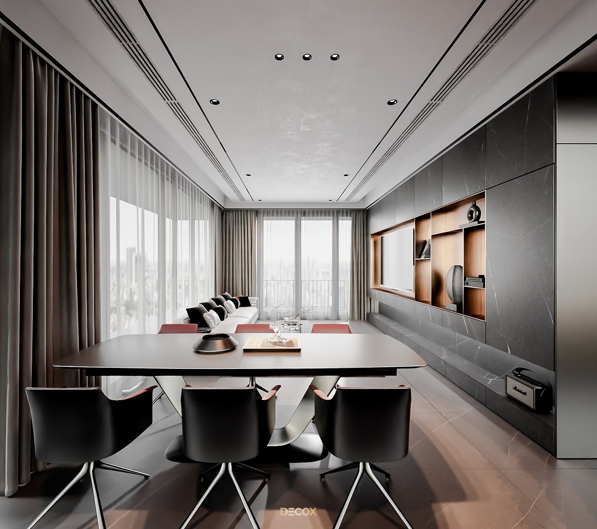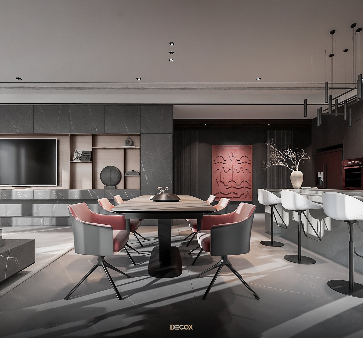 Lấy cảm hứng từ nghệ thuật tương phản, KTS Decox đem đến một không gian sống thanh lịch, sáng tạo và cá tính trong căn hộ rộng 137m2 tại The Opera. Thiết kế nội thất là sự phối hợp đầy tinh tế của các gam màu trung tính, sự ấm áp của chất liệu gỗ và điểm nhấn nổi bật từ sắc đỏ trầm. Bên cạnh đó, lối bài trí tinh giản cũng góp phần tôn lên vẻ đẹp cao cấp của những món đồ nội thất nhập khẩu từ Italy.