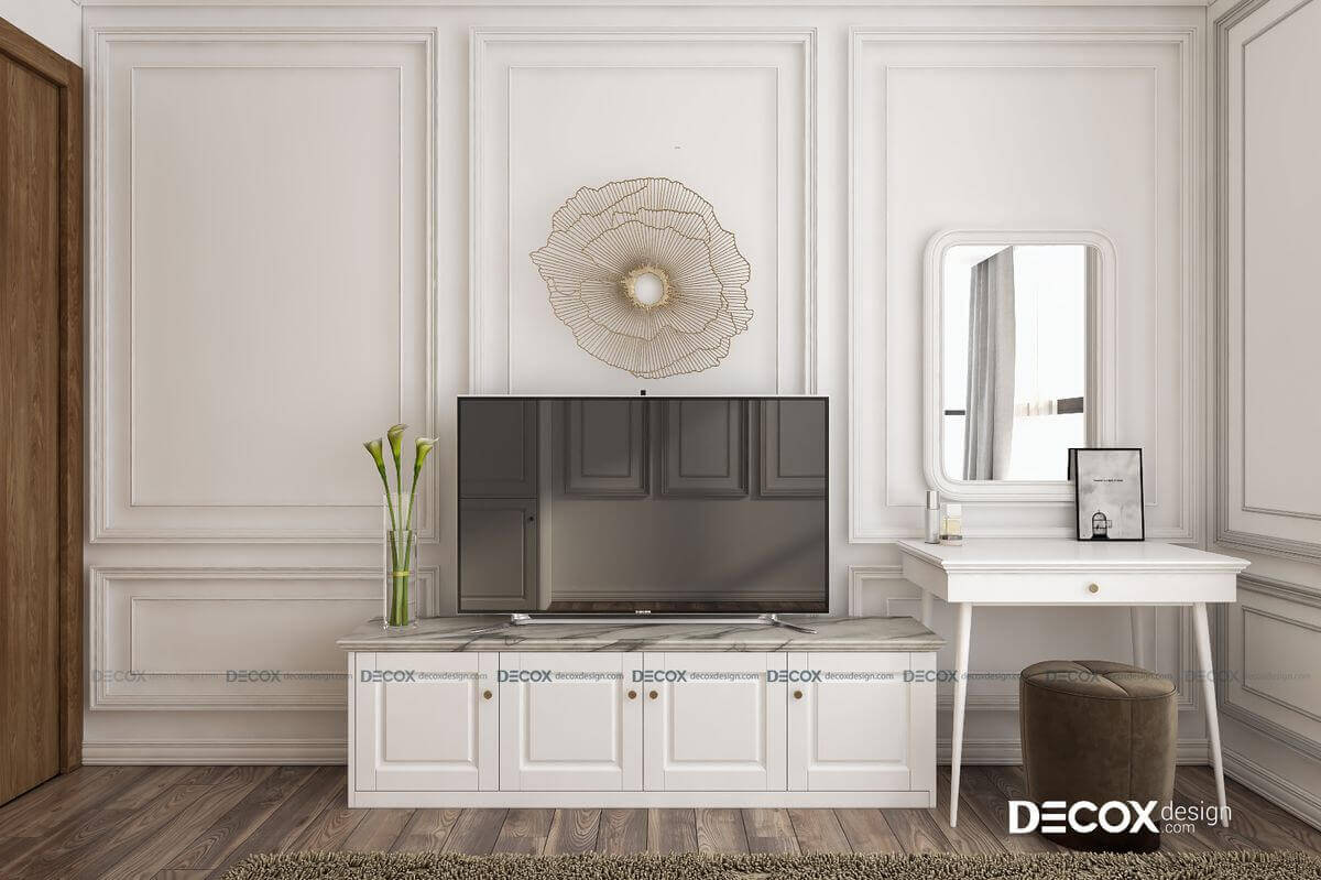 Căn hộ Celadon City 97m2 de180028 được thiết kế theo phong cách bán cổ điển – một sự hòa trộn tinh tế giữa cổ điển và hiện đại. Với phong cách này, mẫu thiết kế nội thất chung cư của Decox Design sẽ không quá rườm rà nhưng vẫn toát lên vẻ đẹp của sự sang trọng và quý phái trong không gian sống của gia chủ.