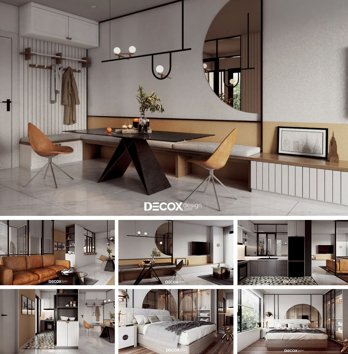 Mẫu 3: Thiết kế nội thất chung cư 1 phòng ngủ phong cách hiện đại