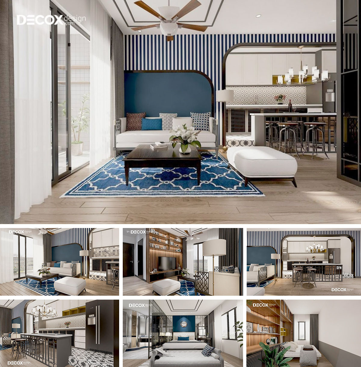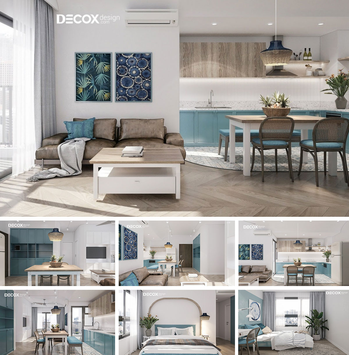 Mẫu 12: Mẫu thiết kế nội thất chung cư 70m2 theo phong cách Địa trung hải