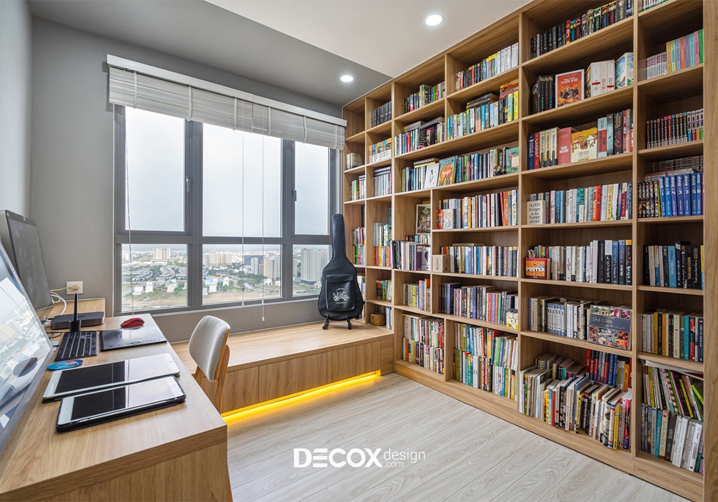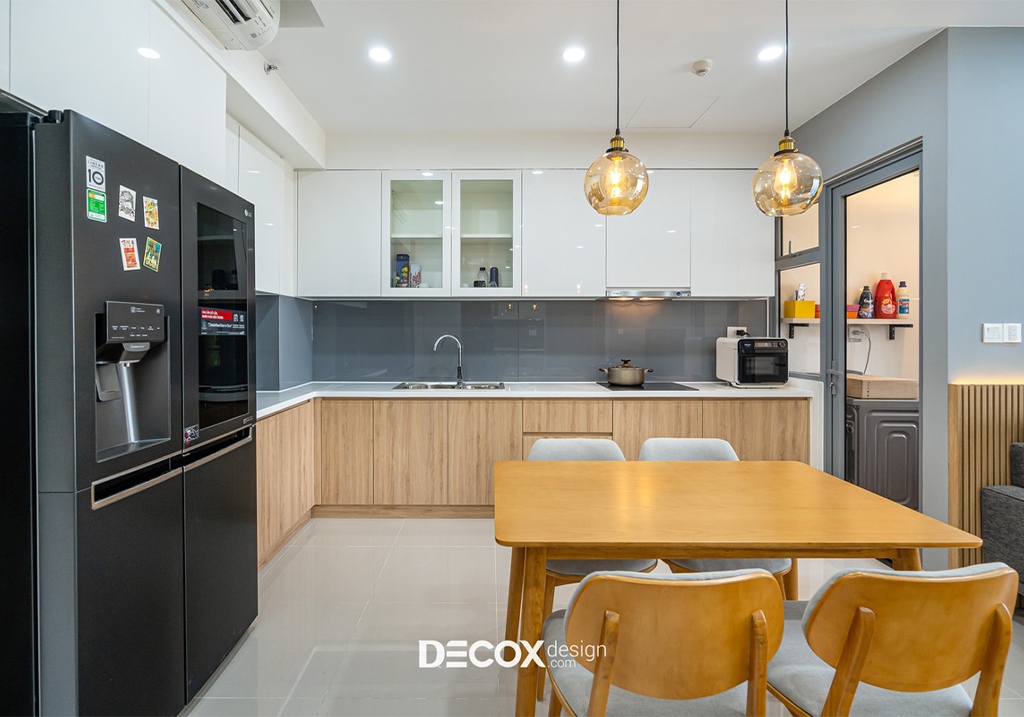 Thiết kế nội thất căn hộ 70m2 đẹp với chất liệu gỗ óc chó