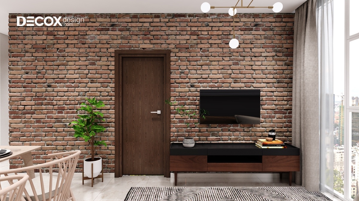Ưu điểm của nội thất làm bằng gỗ óc chó là sự bền bỉ bất chấp thời gian, gỗ có mùi hương nhẹ nhàng, đặc biệt an toàn cho sức khỏe. Những bộ bàn ghế, tủ, giường làm bằng gỗ óc chó thường nổi bật bởi màu nâu sẫm tạo sự sang trọng, tinh tế cho không gian. Mẫu 13: Thiết kế nội thất căn hộ mộc mạc với nội thất gỗ