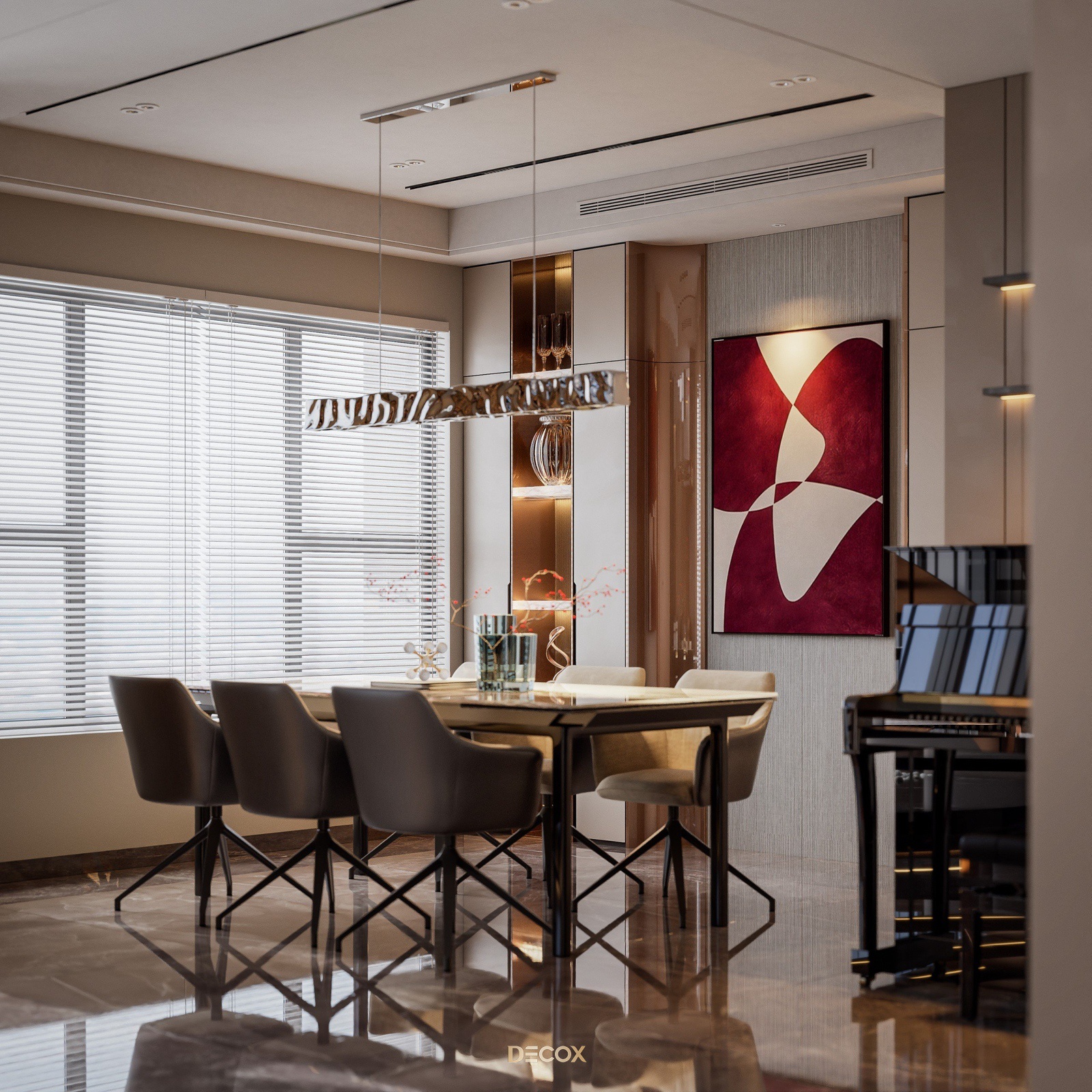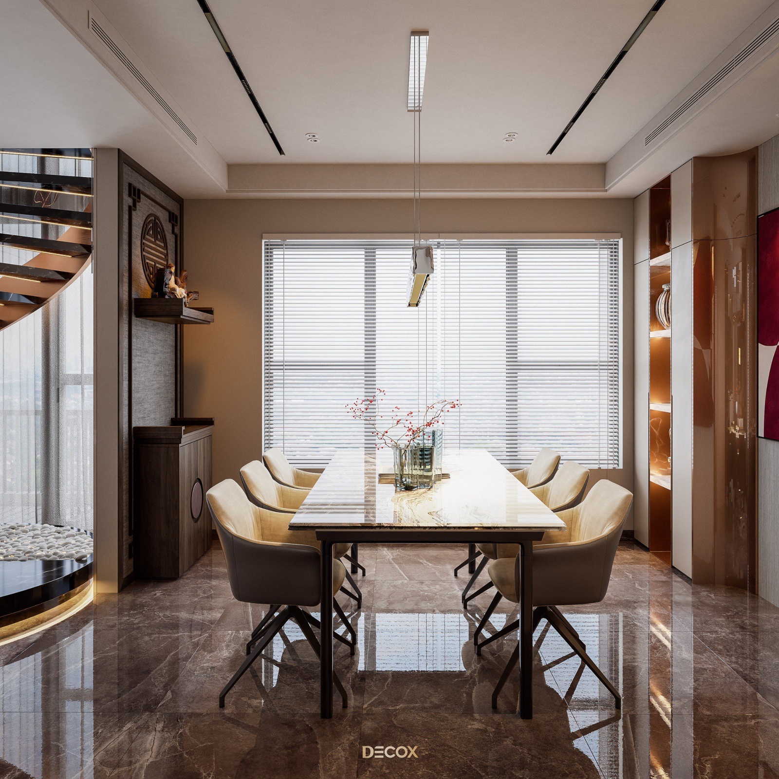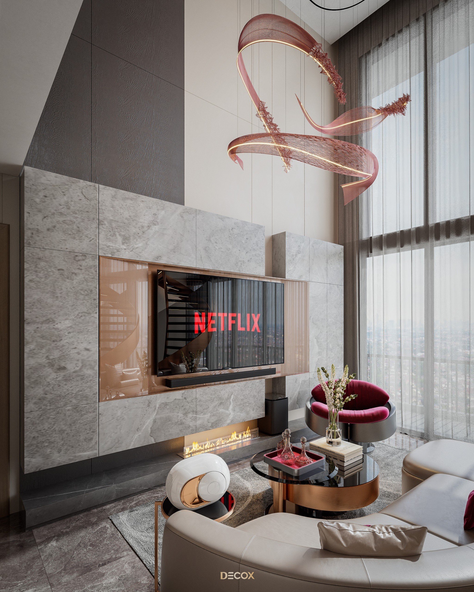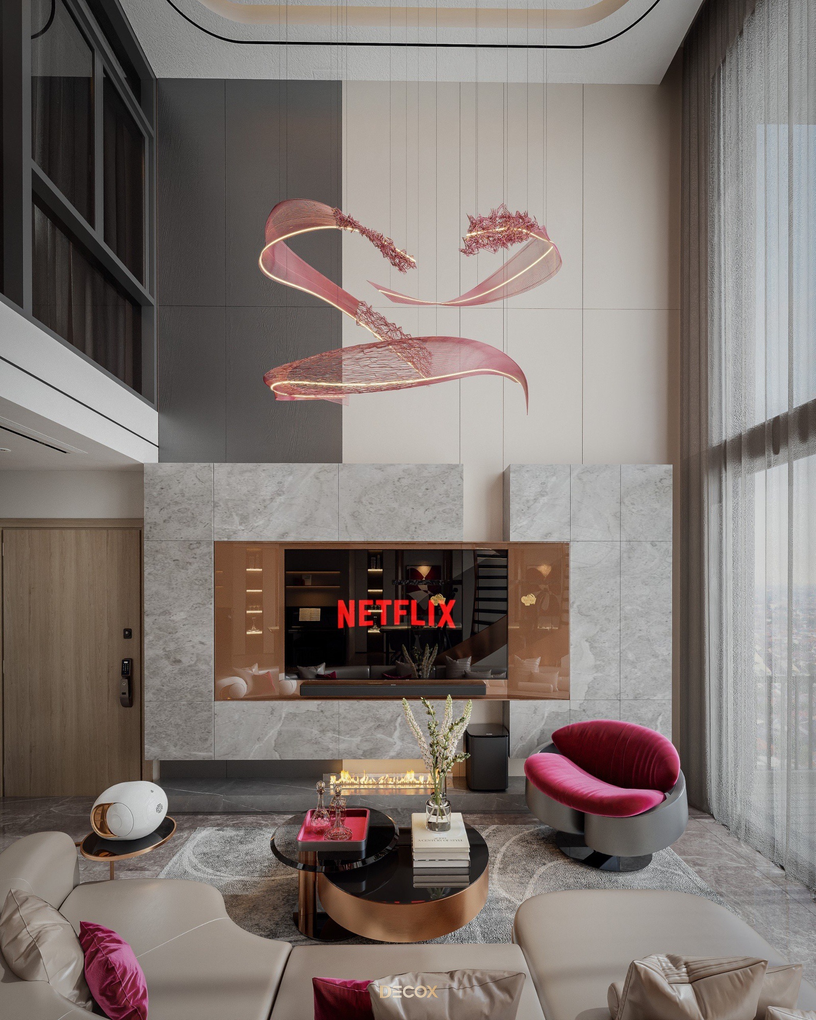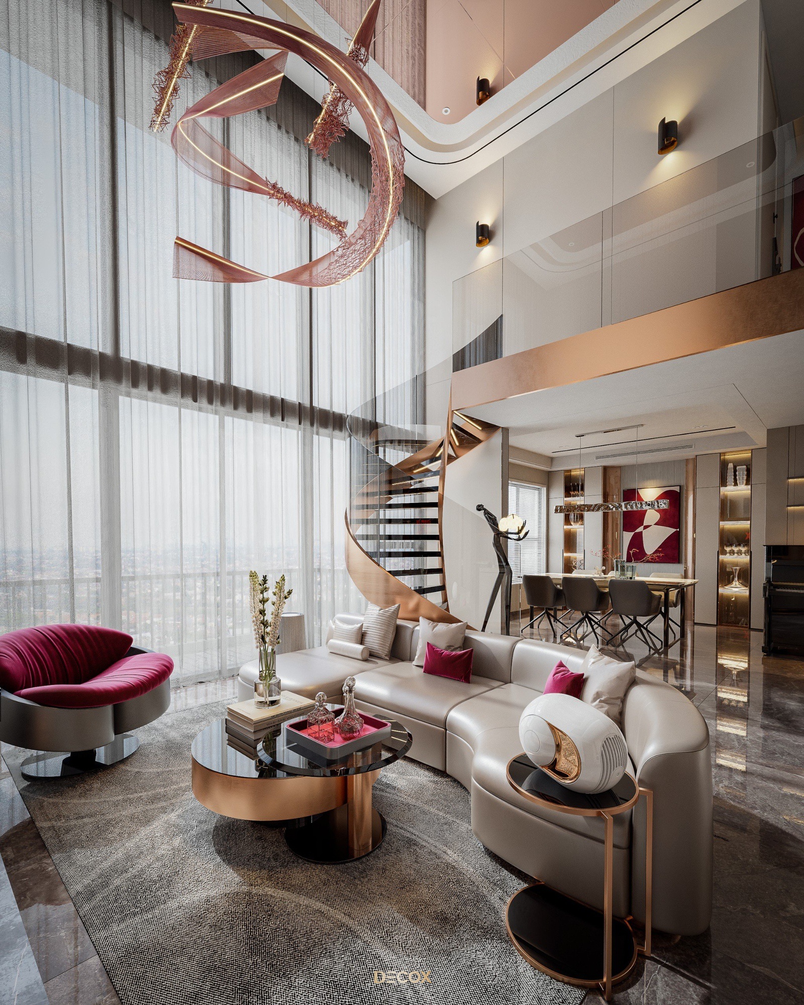 Với đề bài là một ngôi nhà mang phong cách hiện đại, tránh xa sự rườm rà, phức tạp nhưng vẫn thể hiện được sự sang trọng, trẻ trung và độc bản, KTS Decox đã chọn lựa ngôn ngữ Modern Luxury cho căn hộ Duplex rộng 122m2 tại chung cư The View Riviera Point. Sử dụng chất liệu và nội thất cao cấp, thiết kế nội thất không chỉ tạo ra không gian sống năng động và sáng tạo mà còn mang đến sự sâu sắc về thị giác thông qua việc phối hợp màu sắc tinh tế. Không chỉ dừng lại ở các đường nét thẳng tắp, thiết kế còn thể hiện sự mềm mại và uyển chuyển với những đường cong được tính toán hợp lý, tạo nên một tổng thể vừa mới mẻ vừa độc đáo.
