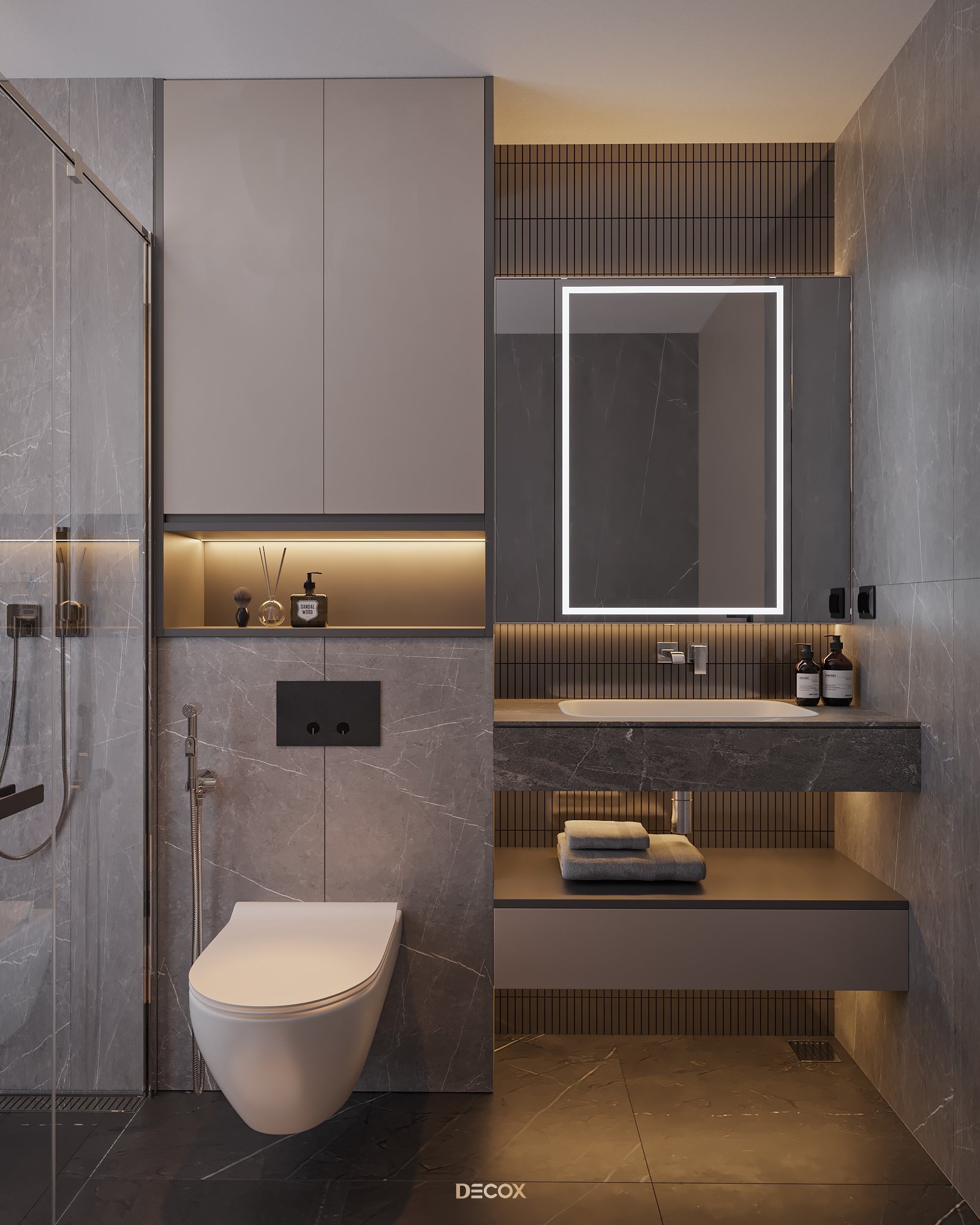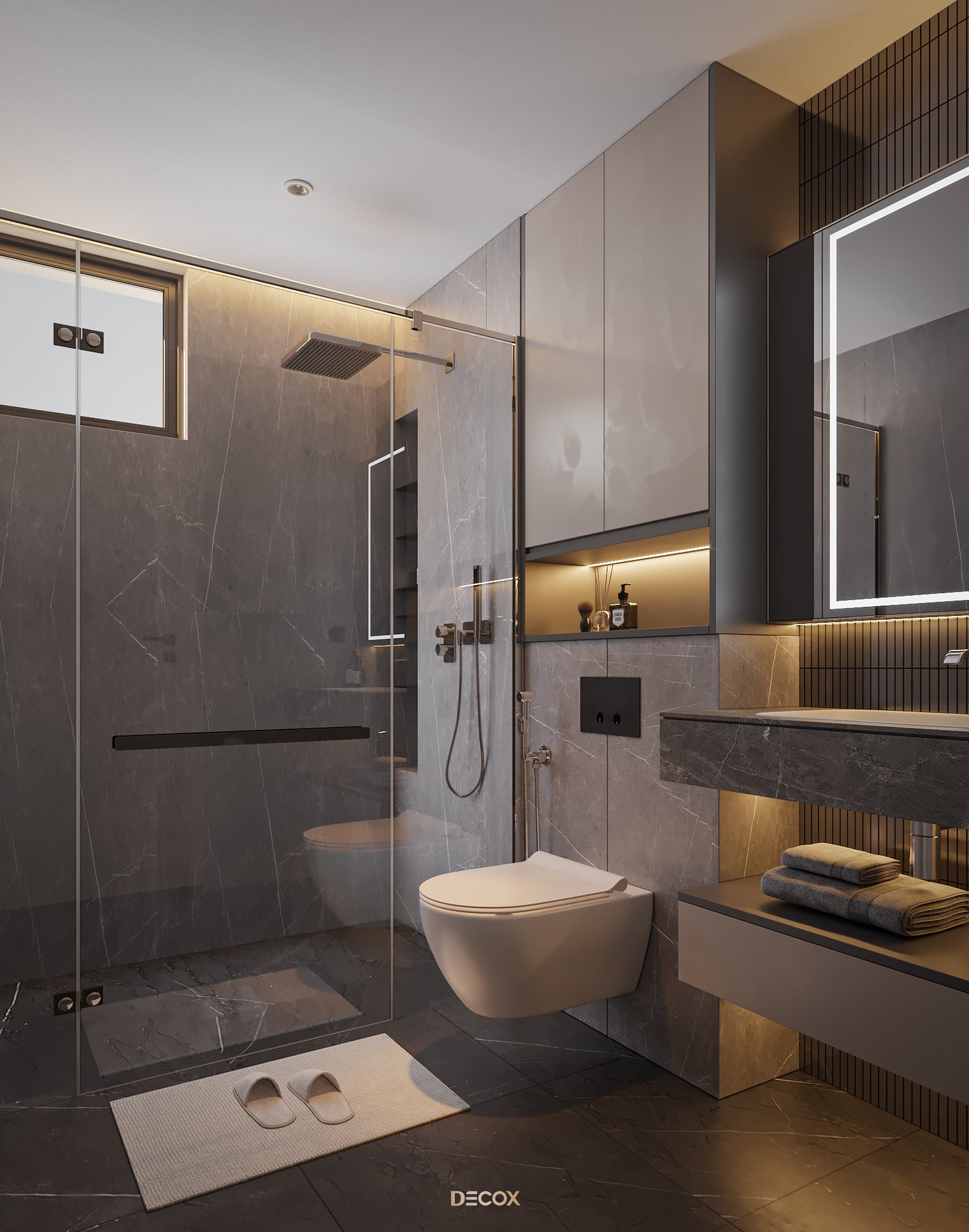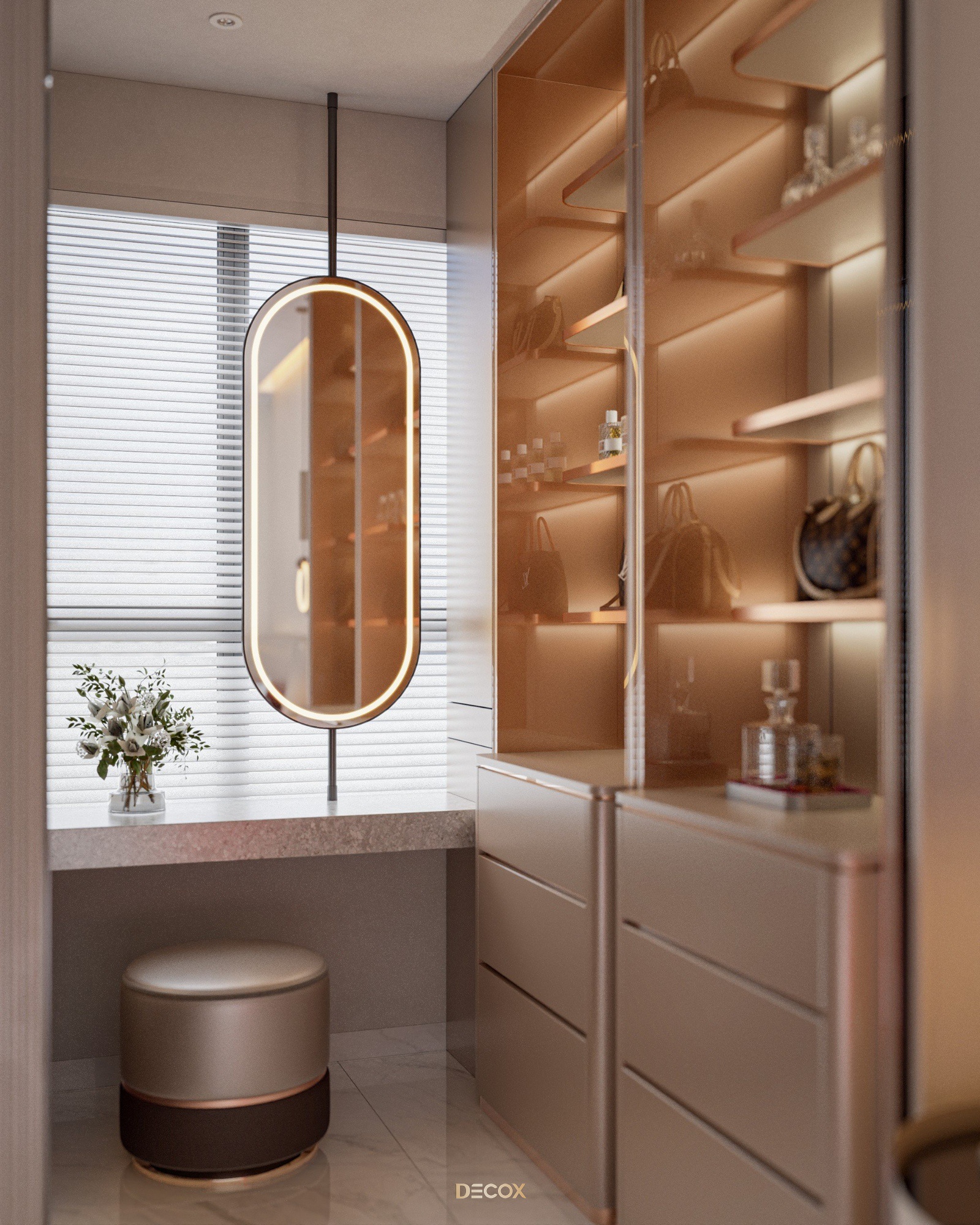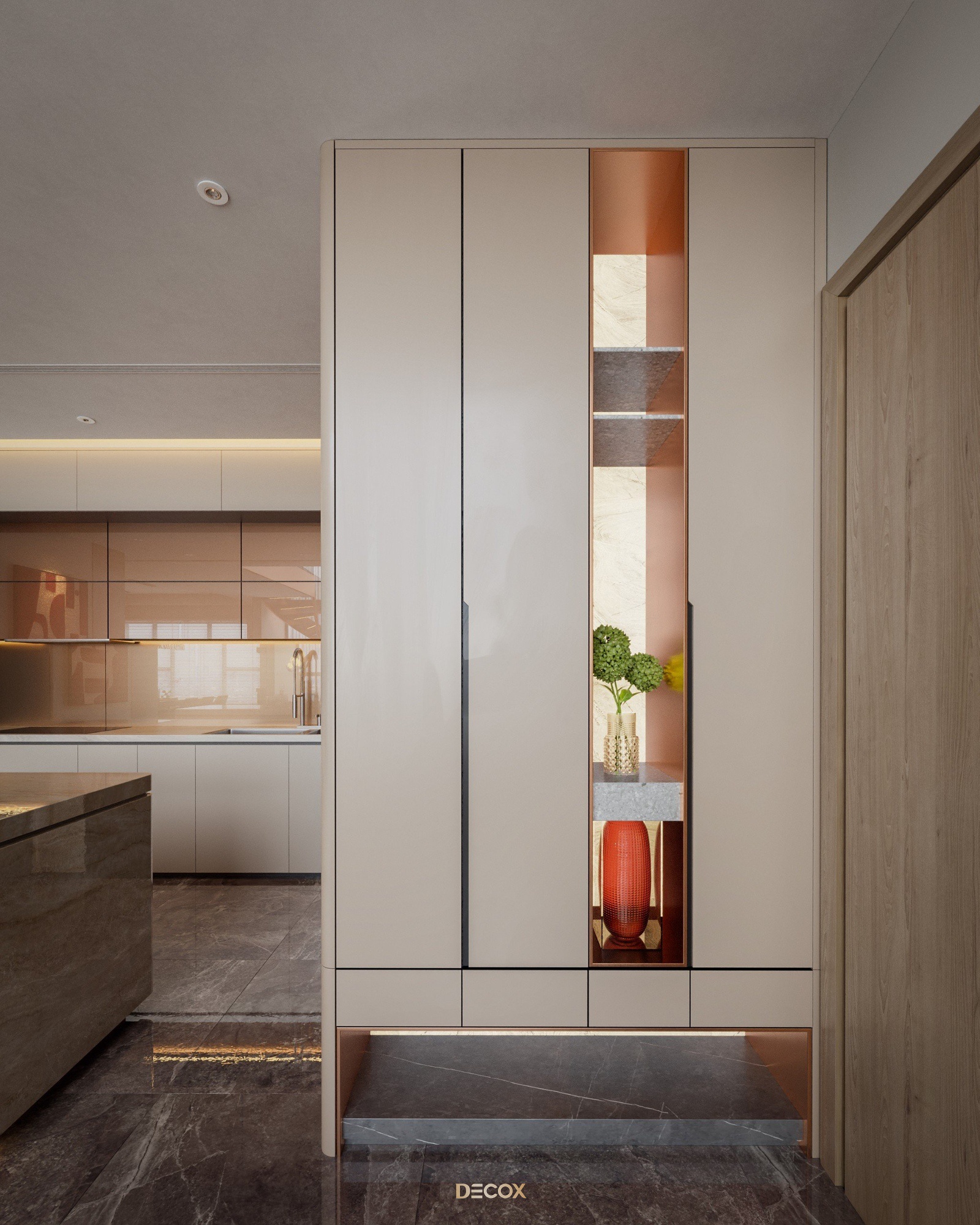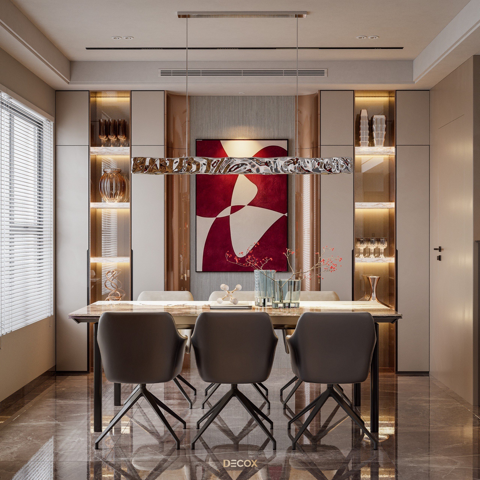 Với đề bài là một ngôi nhà mang phong cách hiện đại, tránh xa sự rườm rà, phức tạp nhưng vẫn thể hiện được sự sang trọng, trẻ trung và độc bản, KTS Decox đã chọn lựa ngôn ngữ Modern Luxury cho căn hộ Duplex rộng 122m2 tại chung cư The View Riviera Point. Sử dụng chất liệu và nội thất cao cấp, thiết kế nội thất không chỉ tạo ra không gian sống năng động và sáng tạo mà còn mang đến sự sâu sắc về thị giác thông qua việc phối hợp màu sắc tinh tế. Không chỉ dừng lại ở các đường nét thẳng tắp, thiết kế còn thể hiện sự mềm mại và uyển chuyển với những đường cong được tính toán hợp lý, tạo nên một tổng thể vừa mới mẻ vừa độc đáo.