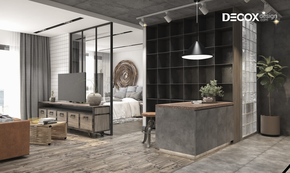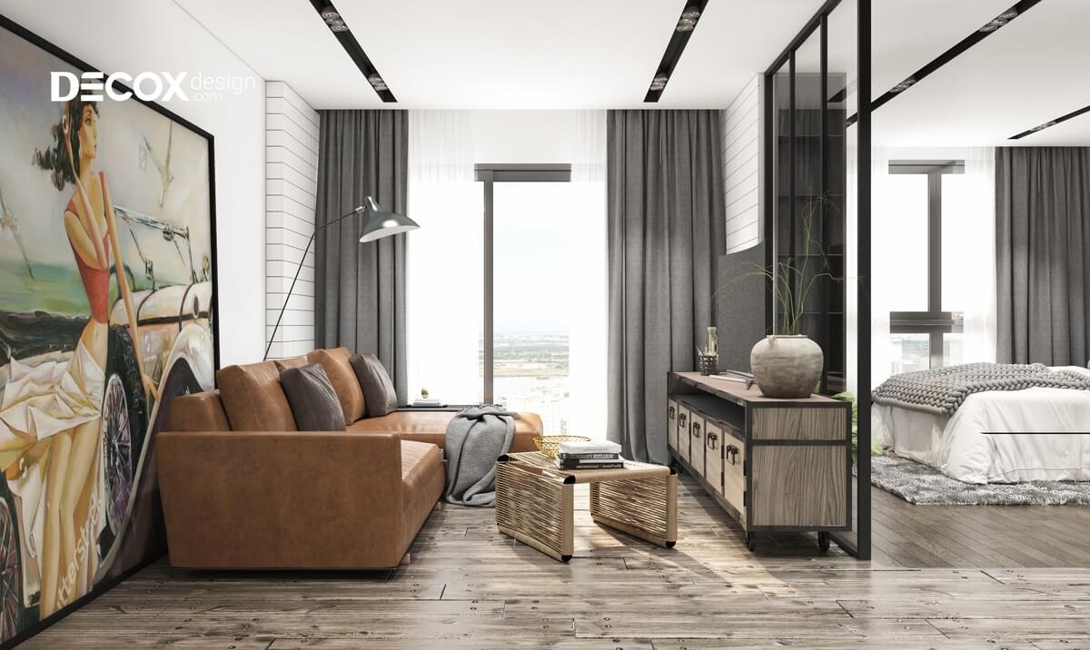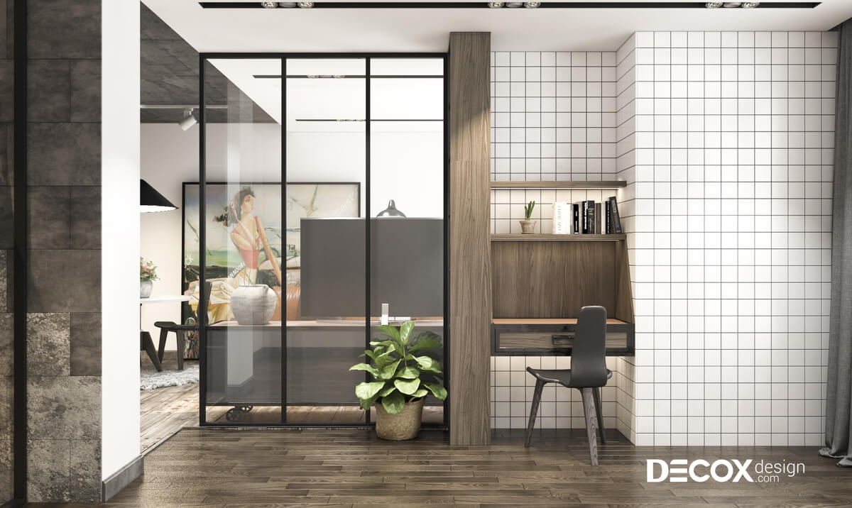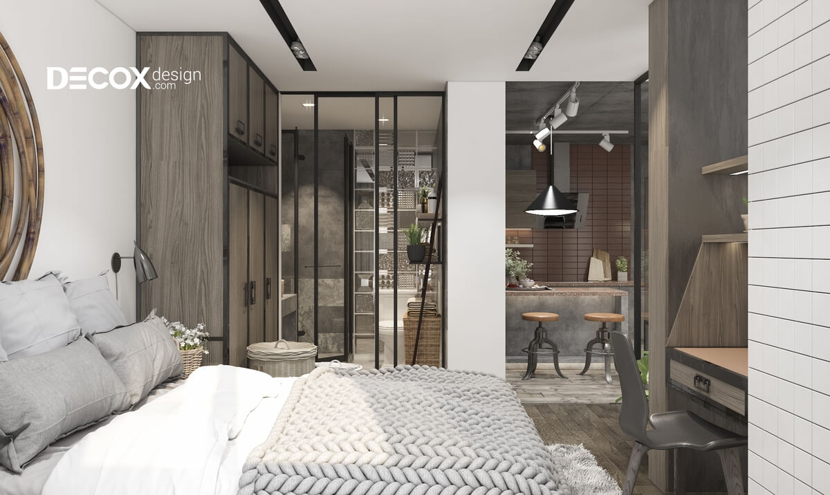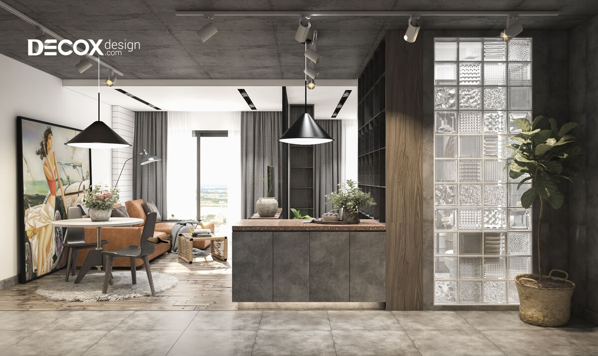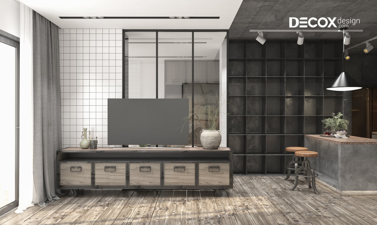 Thiết kế nội thất căn hộ Hado Centrosa theo phong cách nội thất công nghiệp với lối trang trí đơn giản, mộc mạc với những bức tường thô ráp và mang đến cho căn hộ một vẻ đẹp thu hút, gần gũi và đầy sự khác biệt. Hãy cùng Decox Design tham khảo mẫu thiết kế nội thất căn hộ Hado Centrosa 50m2 de011 này nhé!
