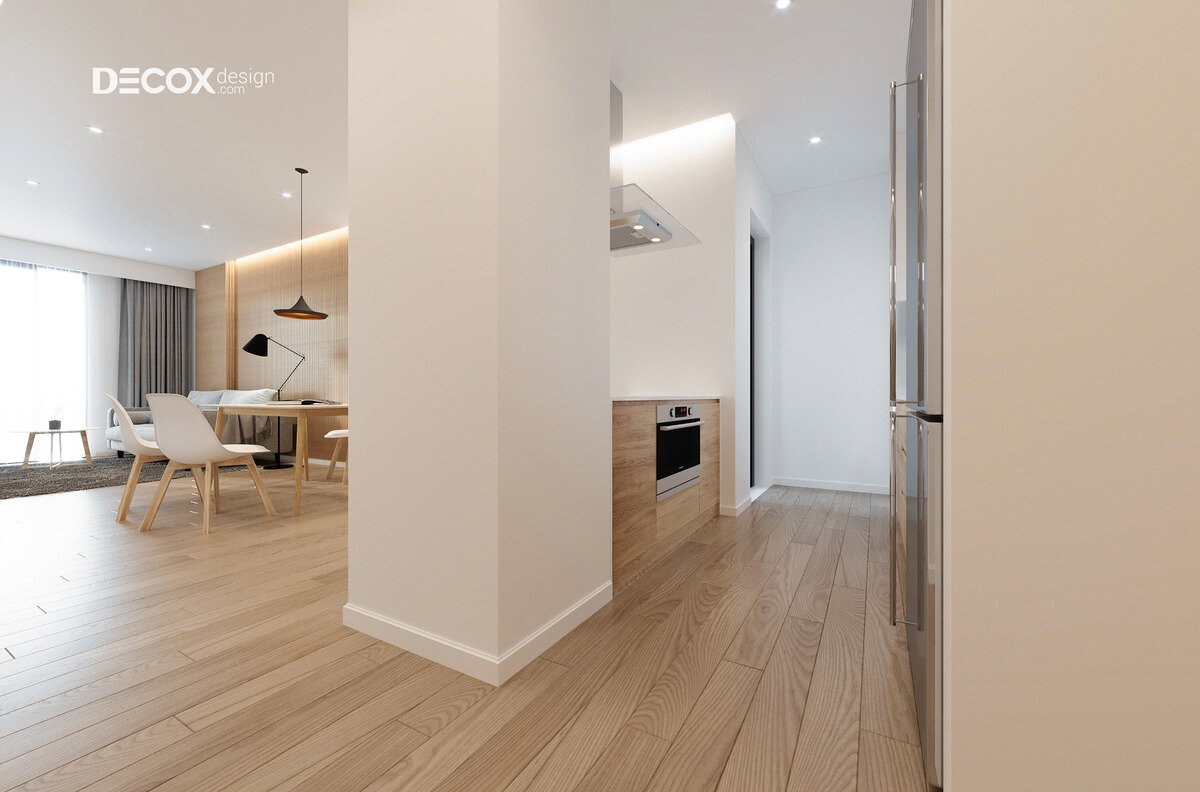 Thiết kế nội thất căn hộ Hado Centrosa 76m2 de09 là sự kết hợp điệu nghệ giữa màu sắc tự nhiên, ấm áp của gỗ cùng với sự nhẹ nhàng, thanh khiết của tông màu trắng. Mỗi ngóc ngách được thiết kế tỉ mỉ nhờ đó mà không gian được tối đa hóa. Các điểm chấm phá được thể hiện độc đáo góp phần tạo nên một căn hộ thật thời thượng và quyến rũ.