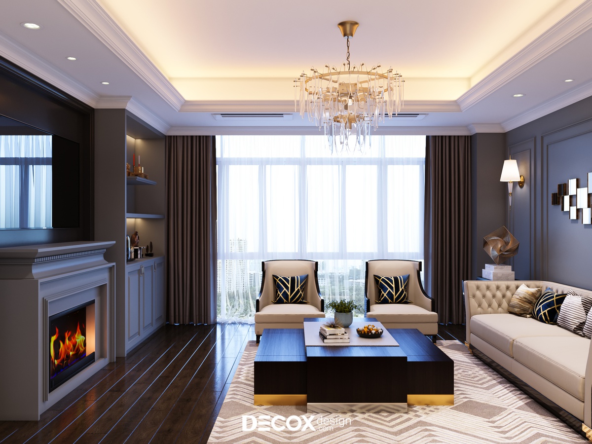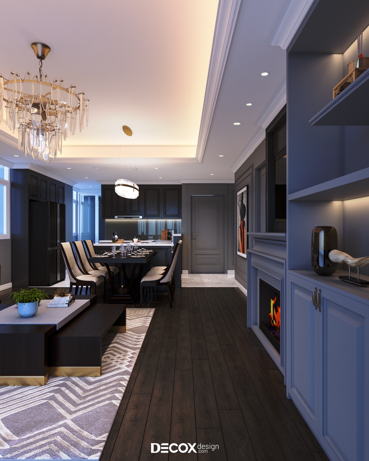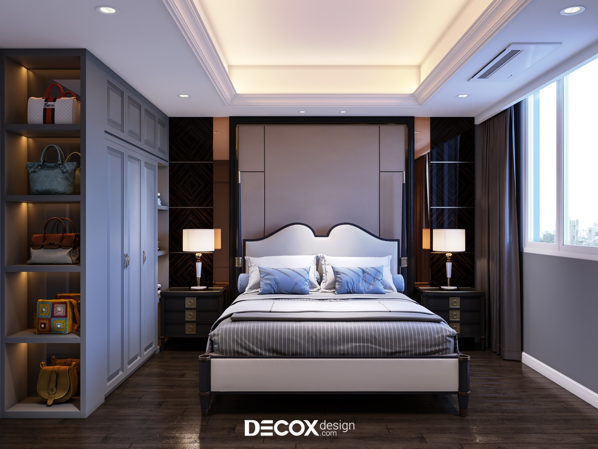 Phong cách bán cổ điển luôn được nhiều gia chủ yêu thích và chọn lựa khi thiết kế nội thất nhằm kiến tạo nên một không gian vừa tiện nghi, hiện đại mà vẫn có thể giữ được nét trang nhã và cổ cách trong đường nét thiết kế. Thế nên các KTS của Decox Design đã ứng dụng phong cách này vào căn hộ Imperia 107m2. Với tone nền trắng làm chủ đạo, sàn lát gỗ tự nhiên kết hợp cùng những đường phào chỉ đơn giản làm toát lên nét đẹp thanh thoát của căn hộ. Vật dụng nội thất cũng ưu tiên sử dụng các loại có kiểu dáng hoài cổ nhã nhặn, chất liệu da và gỗ cho tổ ấm thêm phần sang trọng, cuốn hút.