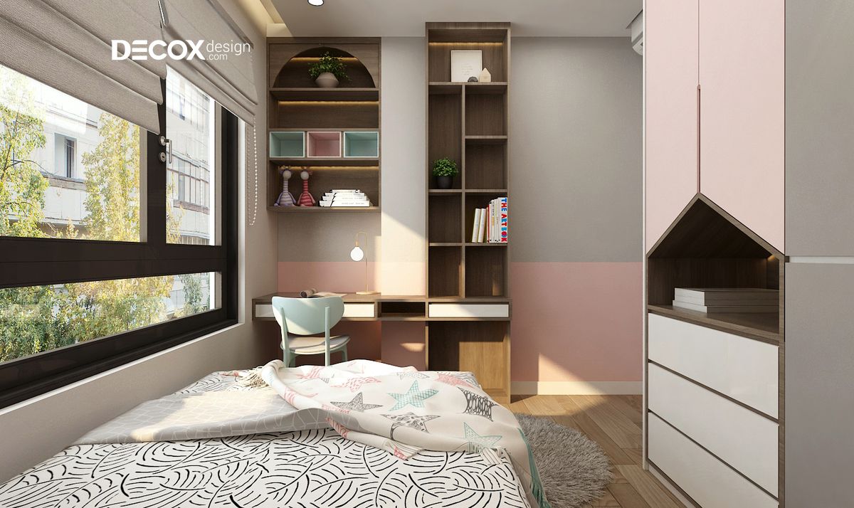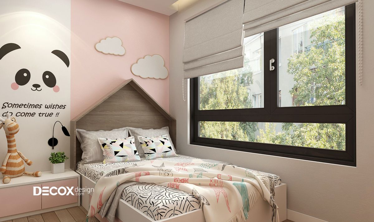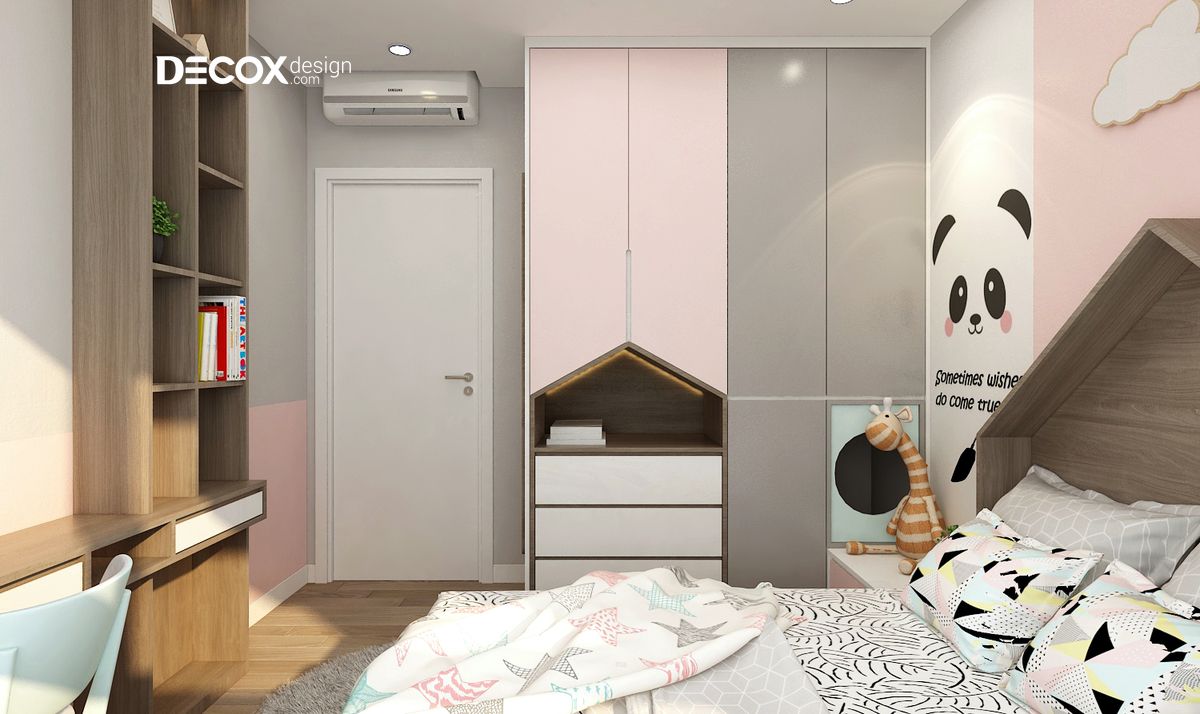 Căn phòng dành riêng cho bé với thiết kế có màu sắc pastel vô cùng dễ thương và các họa tiết ngộ nghĩnh để bé vui tươi, thích thú khi sinh hoạt trong căn phòng của mình.