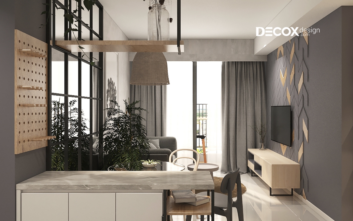 Sự kết hợp hài hòa của các tông màu trầm ấm và quý phái tạo nên một không gian quyến rũ và cuốn hút. Từng vật dụng đều được Decox Design bố trí một cách khéo léo tận dụng được đối đa công năng sử dụng. Việc bố trí các tiện ích xanh một cách phù hợp cho từng khu vực càng làm cho căn hộ thêm tràn đầy sức sống.