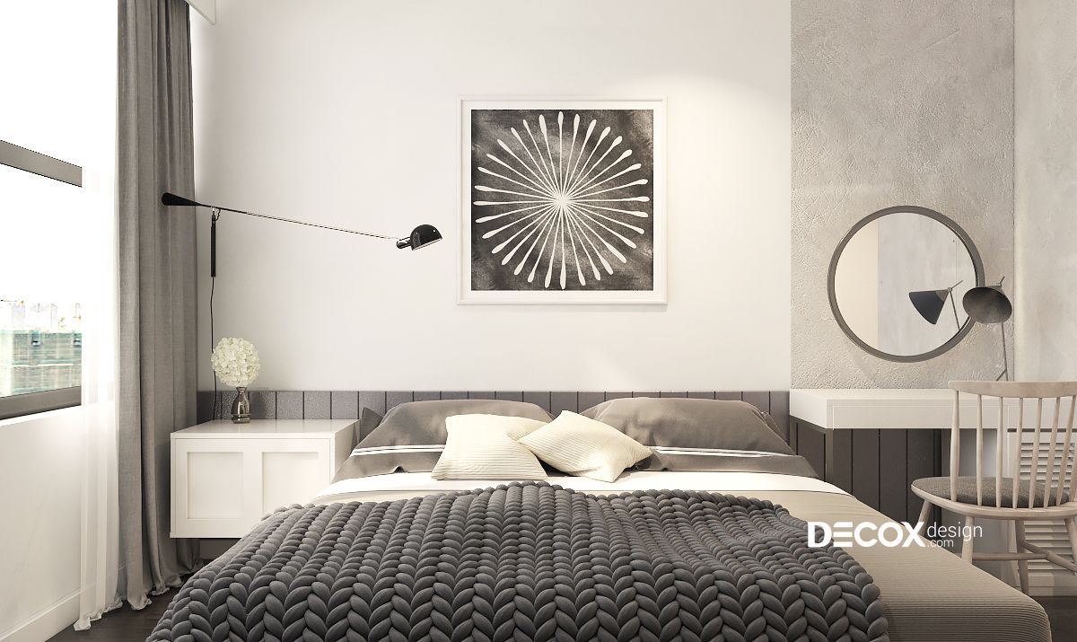 Căn phòng ngủ được bố trí đầy đủ các tiện nghi nhờ sự sắp xếp một cách khoa học từng chi tiết nội thất. Sự phân chia các mảng màu một cách chuẩn mực cũng góp phần tạo nên một thiết kế nội thất phòng ngủ đậm chất nghệ thuật. Chiếc giường ngủ êm ái với kết hợp cùng ga giường mới lạ mang đến cho gia chủ những giấc ngủ bình yên.