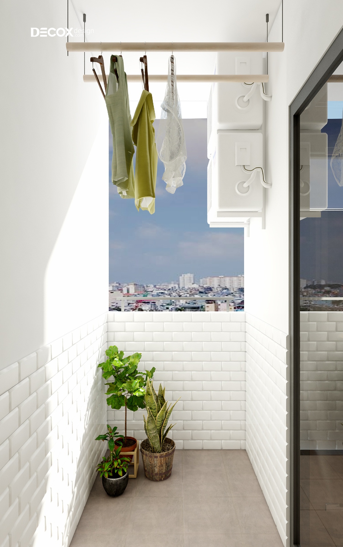 Bố trí máy giặt ở ban công sẽ giúp cho việc di chuyển của gia chủ khi phơi đồ trở nên dễ dàng hơn nhiều. Song song đó, có thể tận dụng nguồn ánh sáng tự nhiên để giúp cho đồ đạc khô ráo nhanh hơn.