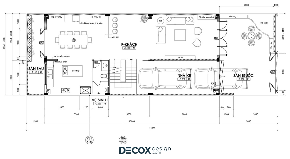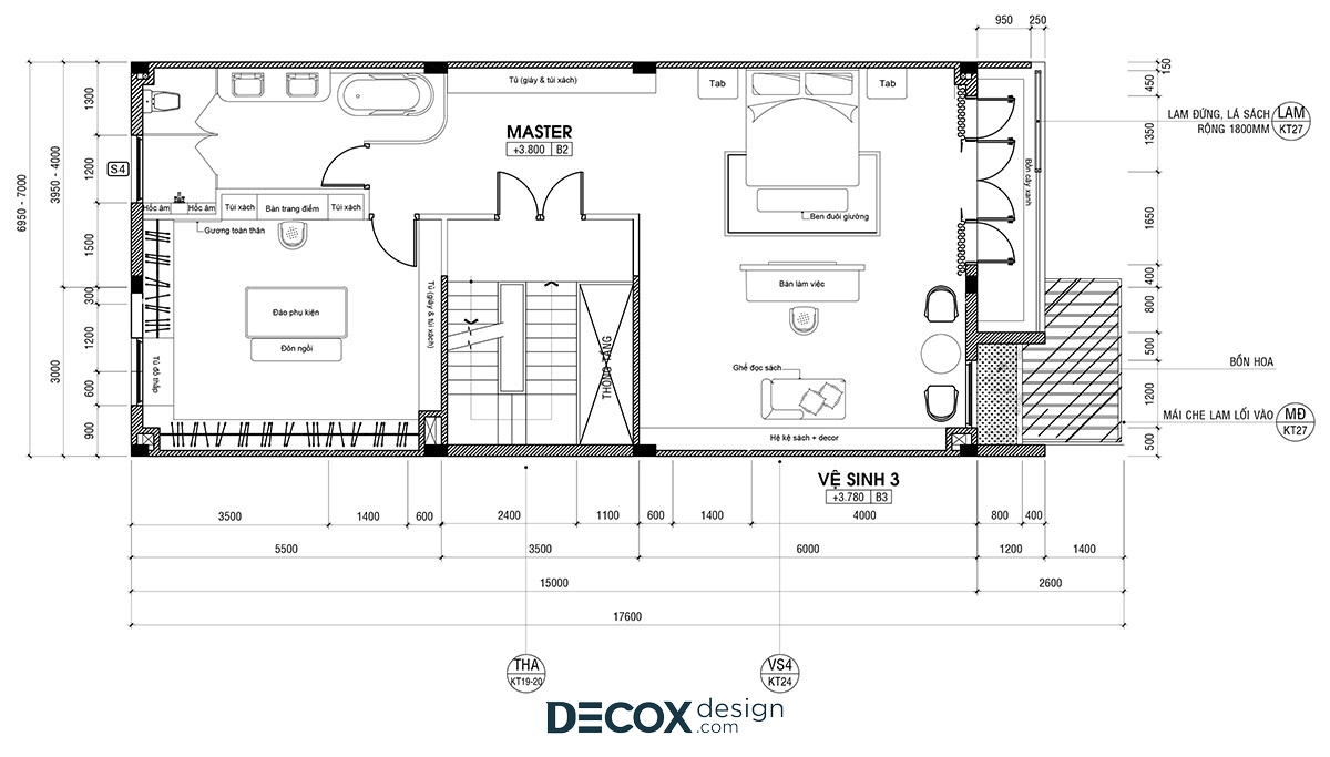Với diện tích lý tưởng, Decox Design đã phân chia nhiều khu vực nhằm đáp ứng theo nhu cầu của từng thành viên trong gia đình. Ngoài các phòng chức năng chính, KTS cũng bố trí thêm một số không gian sinh hoạt chung khác như sân vườn xanh mát, phòng thờ cúng, phòng gym...