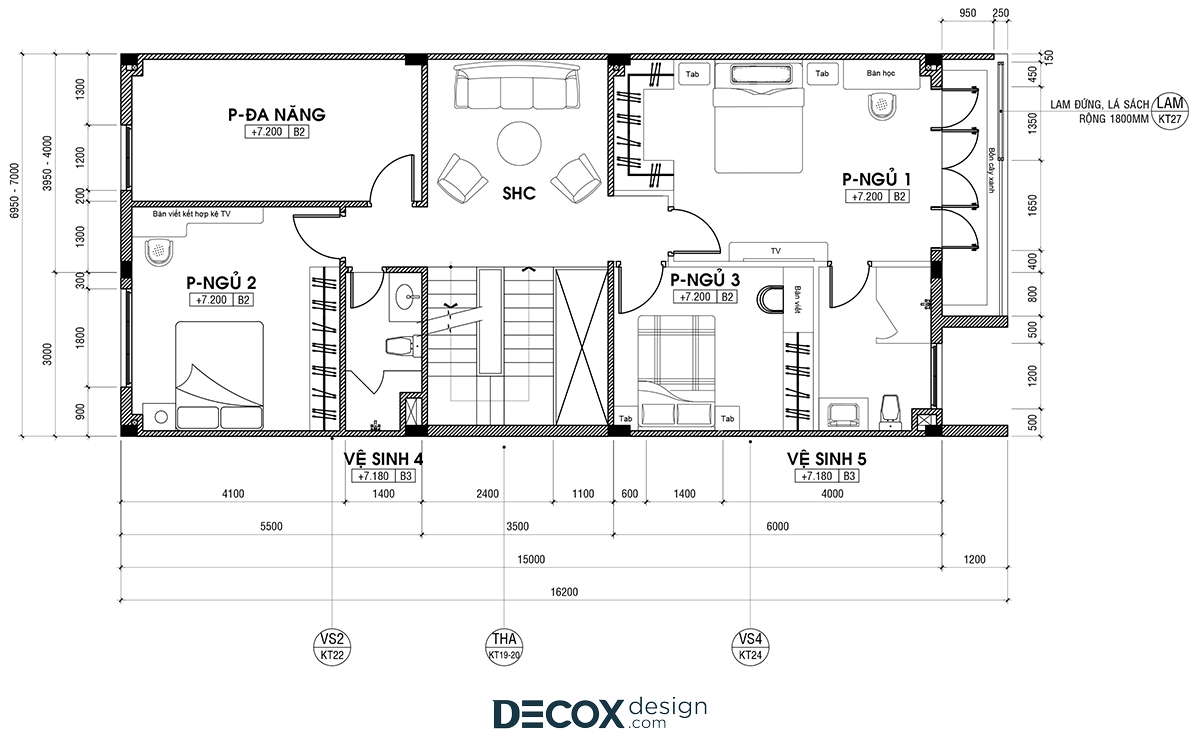 Mặt bằng thiết kế nội thất nhà phố 426m2 - Tầng 2