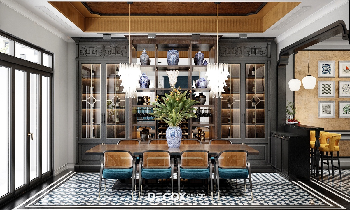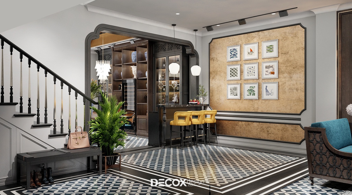 Bên cạnh đó, với yêu cầu mang đến một không gian hoài cổ, tinh tế và tiện nghi, chúng tôi đã lựa chọn thiết kế nội thất theo phong cách Đông Dương - sự kết hợp hoàn mỹ giữa văn hóa phương Đông cùng nét lãng mạn Pháp trong dự án nhà phố lần này.