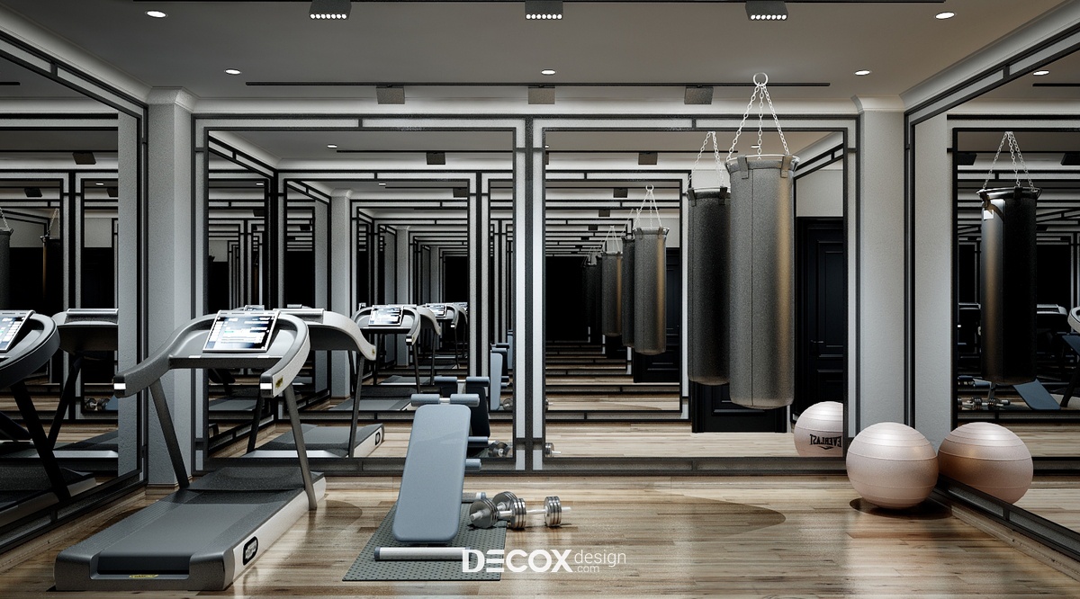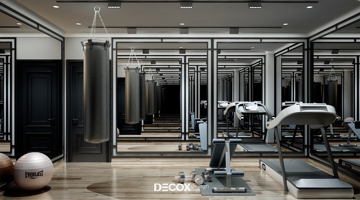 Phòng gym trong dự án thiết kế nhà phố lần này không chỉ đáp ứng đầy đủ tiện nghi hiện đại mà còn đạt độ thẩm mỹ cao. Ngoài trang bị đủ ánh sáng căn phòng còn được lắp thêm gương không khác gì một phòng gym thực thụ, cao cấp.