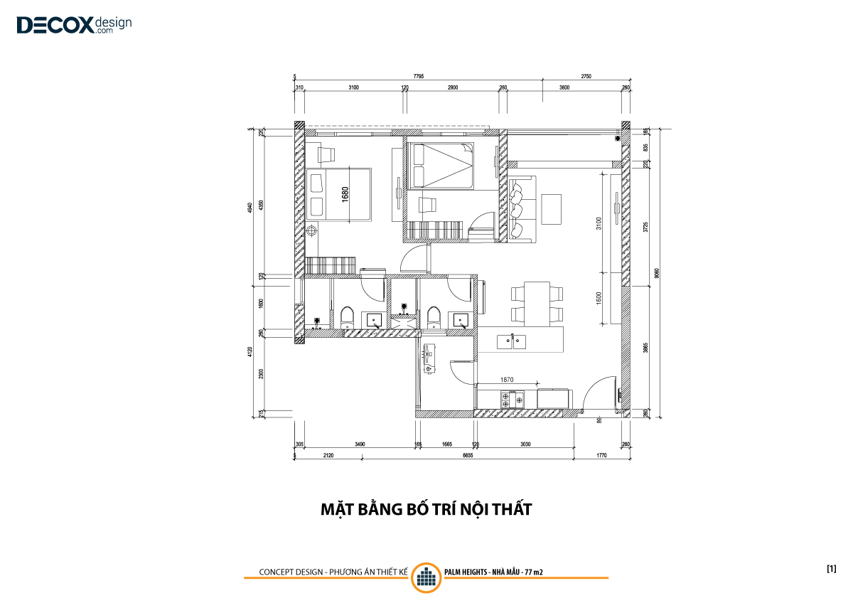 Tổ ấm là thành tố quan trọng tạo nên một xã hội thịnh vượng. Thấu hiểu điều đó Decox Design đã không ngừng sáng tạo để mang đến cho người dân thành phố nhiều mẫu thiết kế nội thất sang trọng, đẳng cấp. Sau thành công của nhiều dự án, Decox Design tiếp tục cho ra đời mẫu thiết kế nội thất căn hộ Palm Heights 77m2 de14. Đây là một mẫu thiết kế nội thất chung cư vô cùng tinh tế, các sắc màu được phối trộn điệu nghệ. Bên cạnh đó, sự hài hòa trong sắp xếp đã làm cho mỗi một mét vuông trong căn hộ Palm Heights 77m2 đều mang một sức hút đến lạ thường.