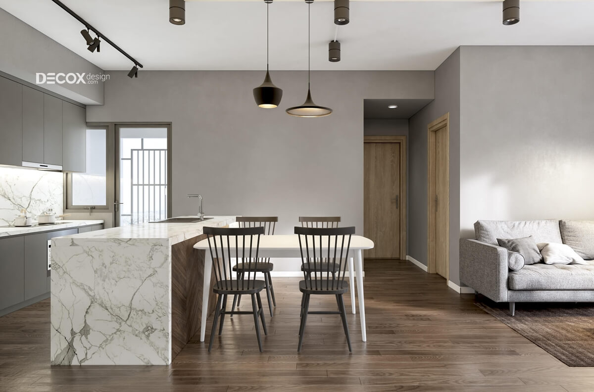 Chủ nhân là người có tính cách nhẹ nhàng, quý phái vì thế Decox Design đã lựa chọn phong cách nội thất tối giản để thiết kế nội thất cho căn hộ Palm Heights 77m2. Từng ngóc ngách trong căn hộ được thiết kế khéo léo và phát huy tuyệt đối công năng sử dụng. Các nét chấm phá được thể hiện tinh tế góp phần làm tăng sức quyến rũ cho căn hộ.
