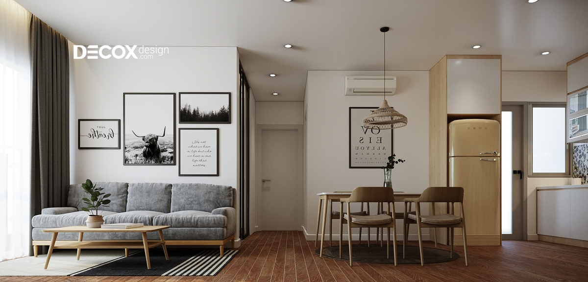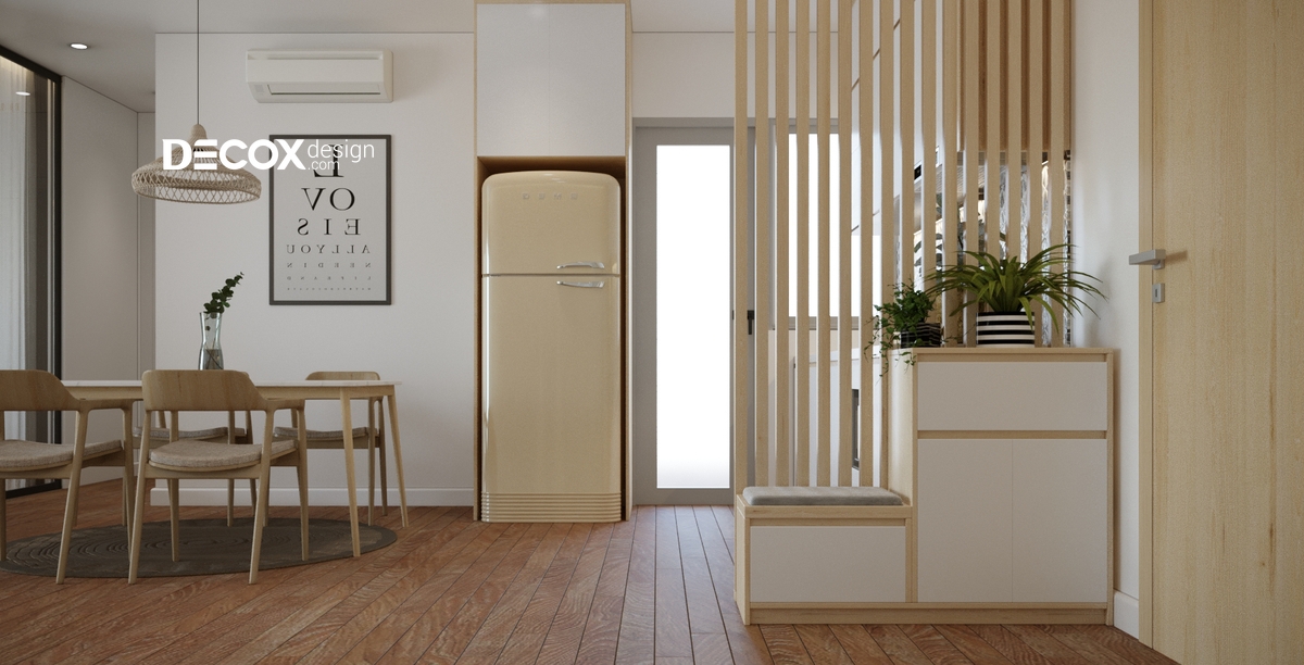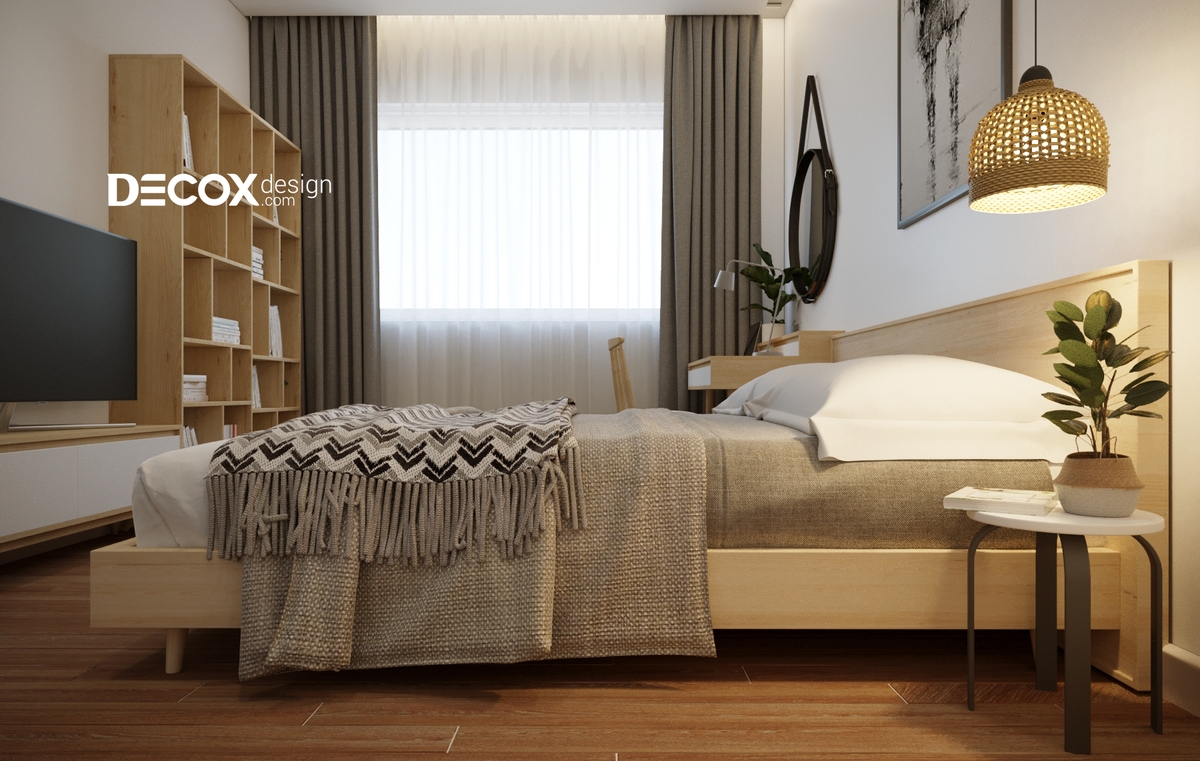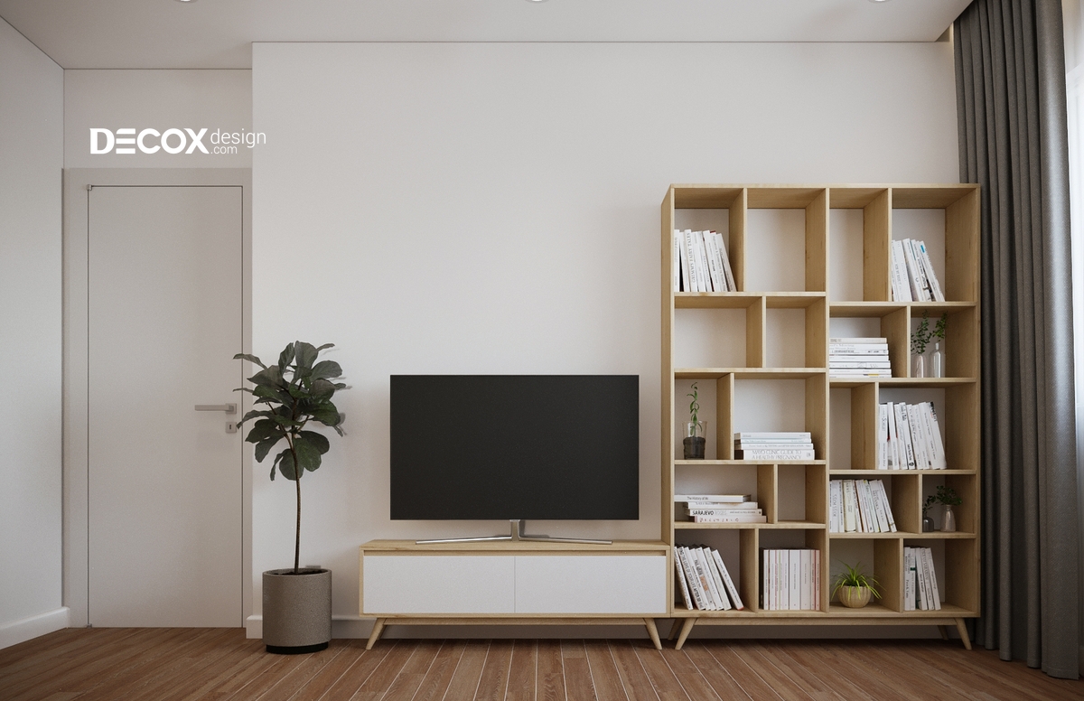 Decox Design chọn lựa nội thất căn hộ bằng gỗ với những đường nét mềm mại hòa cùng sự dịu dàng của các tiện ích xanh để giúp cho chủ nhân có được một không gian thật thanh thoát. Ngoài ra, sự hài hòa trong sắp xếp đã làm cho các ngóc ngách tại đây được cân đối và mang tính thẩm mỹ cao. Các tông màu được lựa chọn tinh tế và làm toát lên tính cách của chủ nhân.