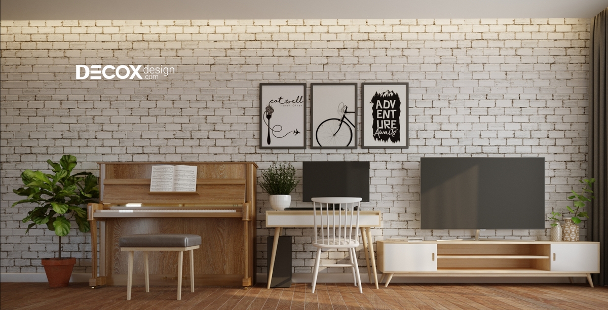 Nét chấm phá thú vị trong trang trí, thiết kế nội thất phòng khách đó là sự xuất hiện của đàn piano bên cạnh bàn làm việc. Sau những phút giây làm việc mệt mỏi, chủ nhân có thể thư giãn cùng với âm thanh của tiếng đàn.