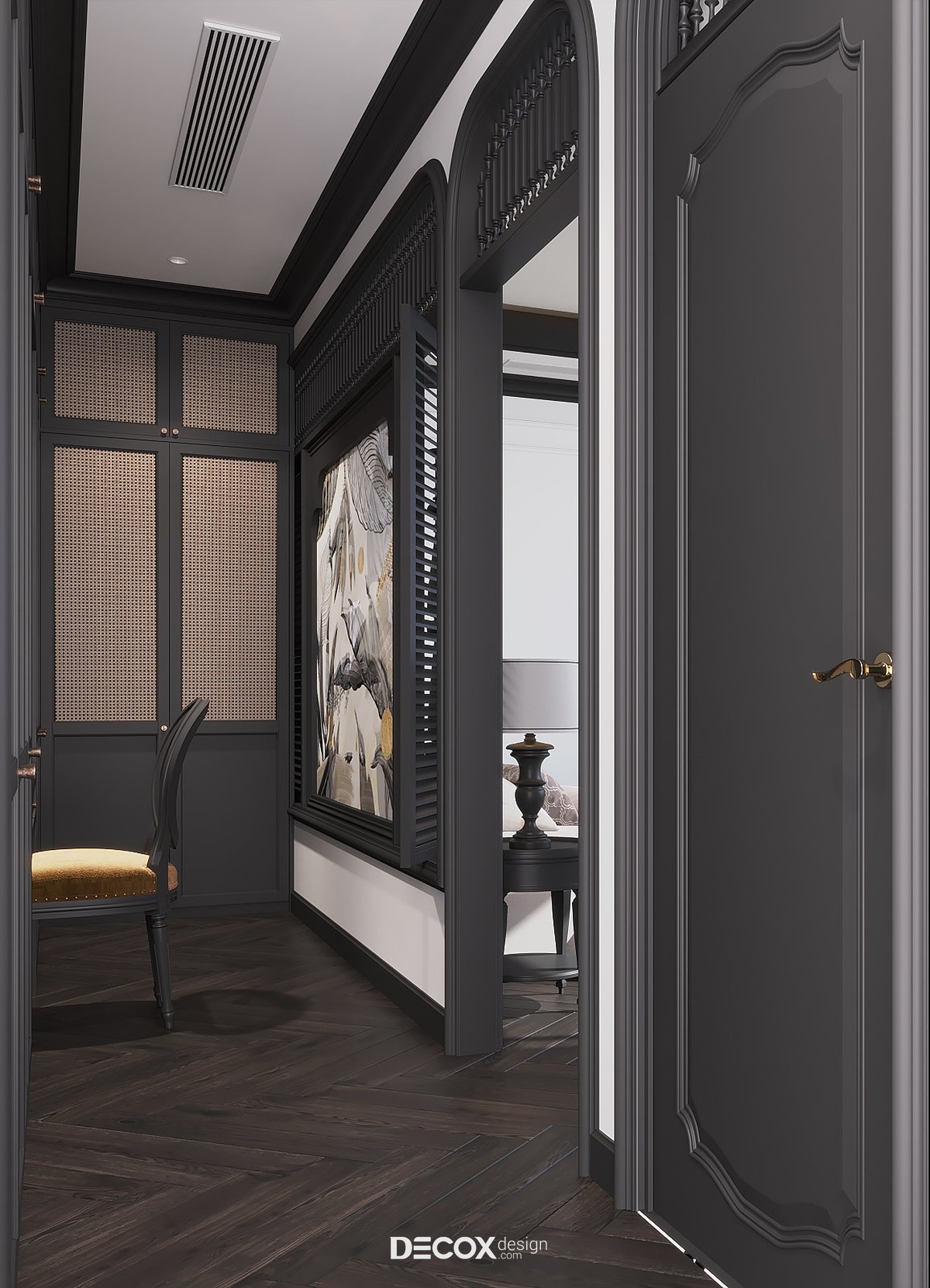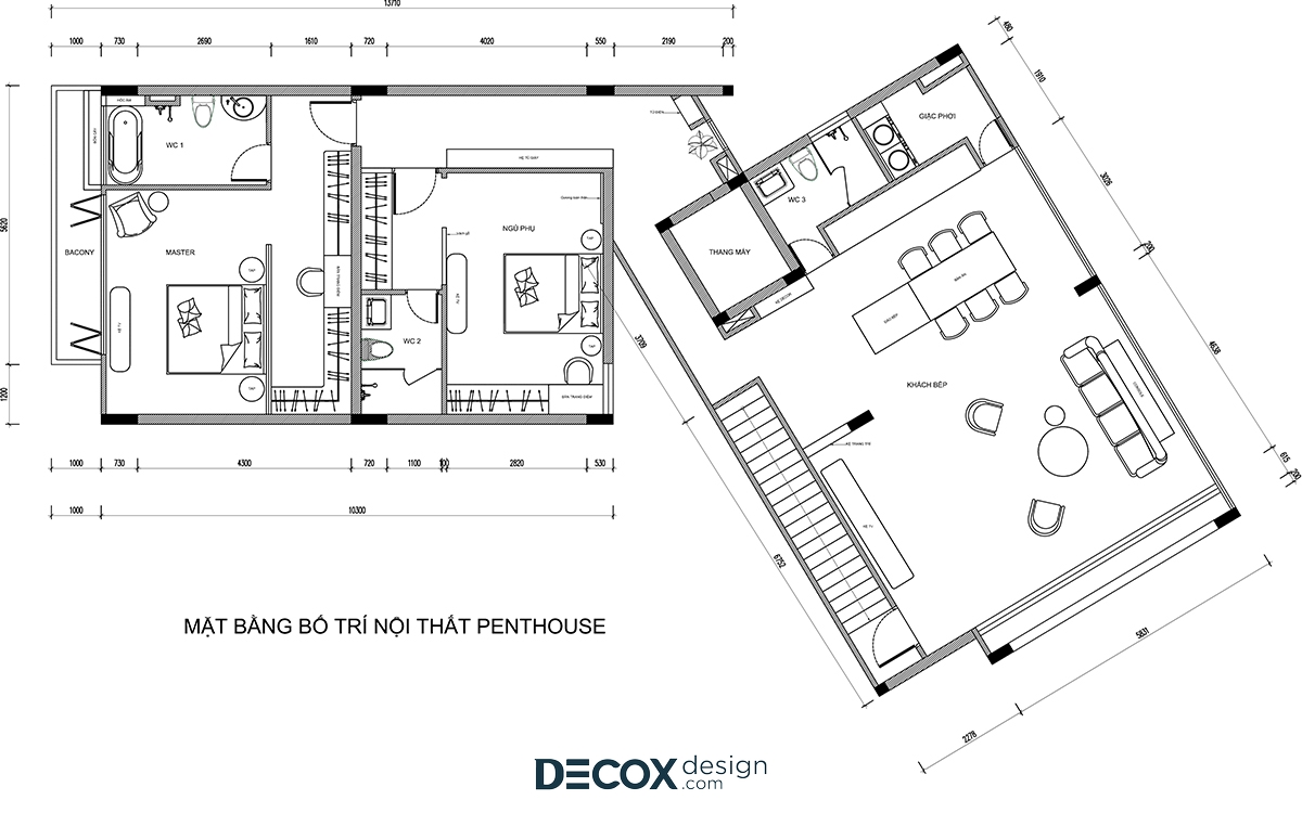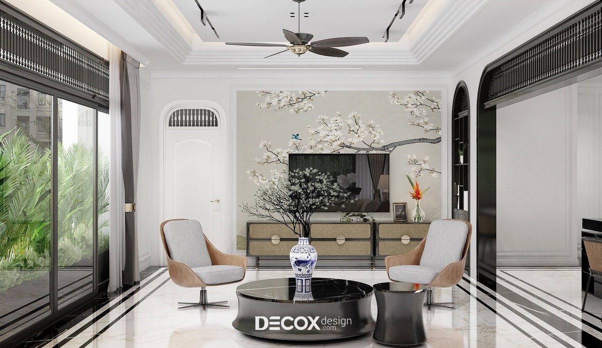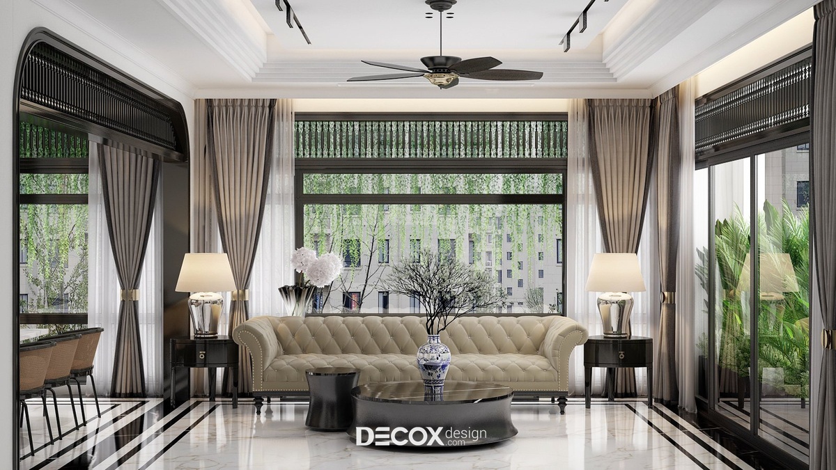 Có thể nói thiết kế nội thất đóng vai trò vô cùng quan trọng trong bất kỳ một công trình kiến trúc nào. Không chỉ đem đến giá trị thẩm mỹ cao, thiết kế nội thất còn thổi hồn phong cách vào trong không gian sống từ đó thể hiện được cá tính, gu thẩm mỹ cũng như bộc lộ nội tâm gia chủ. Vậy nên, mỗi một thiết kế đều mang hương vị, bản sắc riêng biệt để có thể lưu giữ những khoảnh khắc tuyệt vời trong cuộc sống cũng như đọng lại những cảm nhận khó quên trong lòng người nhìn. Nếu bạn đã quá quen thuộc với những thiết kế mang tính xu hướng thời đại như hiện đại, tối giản hay tân cổ điển thì dự án thiết kế nội thất Penthouse sau đây hứa hẹn sẽ thổi một luồng gió mới với phong cách Đông Dương (Indochine Style) - sự giao thoa tuyệt vời của vẻ đẹp văn hóa Á Đông cùng nét lãng mạn của kiến trúc Pháp. Nhìn chung, tổng thể căn hộ gợi cảm giác sang trọng, tinh tế nhưng cũng không kém phần hoài cổ và hiệu ứng kích thích thị giác tuyệt vời với tone trắng chủ đạo nhấn điểm cùng tone đen tương phản trên đồ nội thất. Sau đây, hãy cùng Decox Design tham quan những khu vực bên trong căn hộ Penthouse rộng 170m2 này nhé.