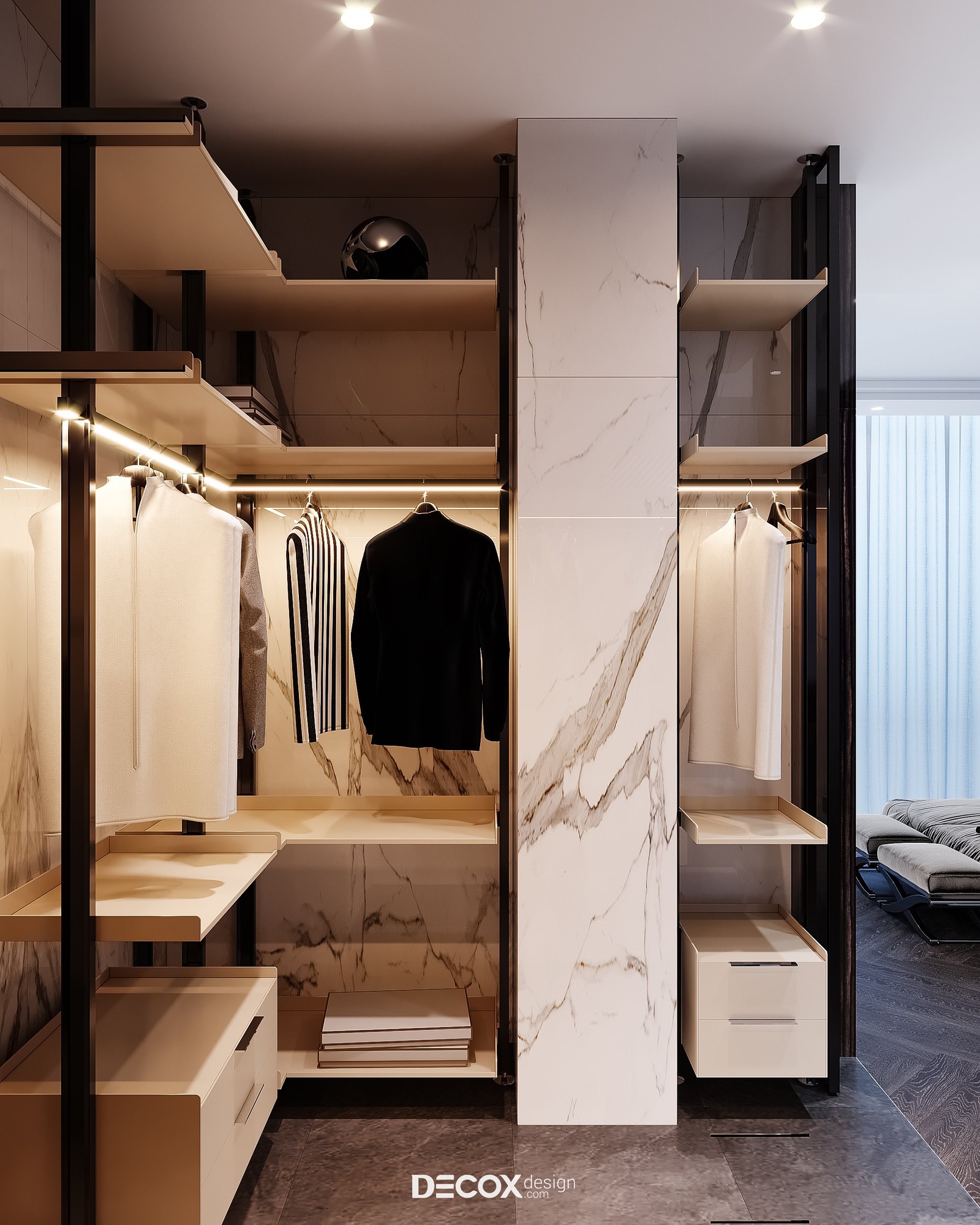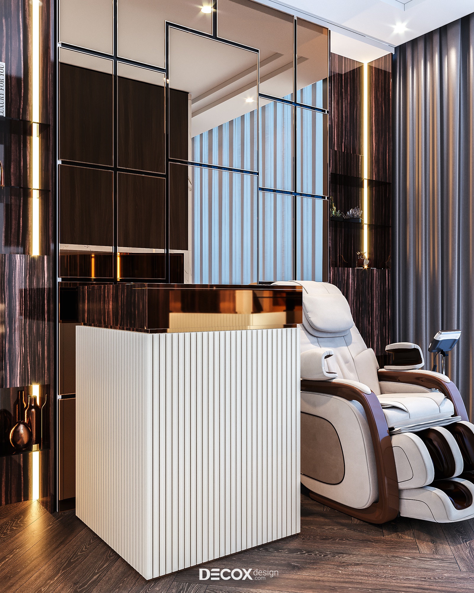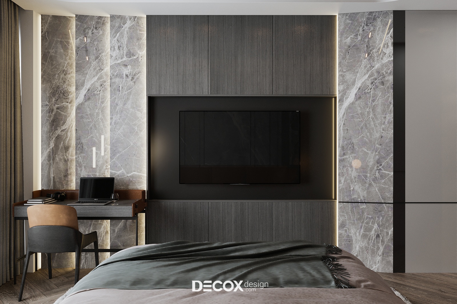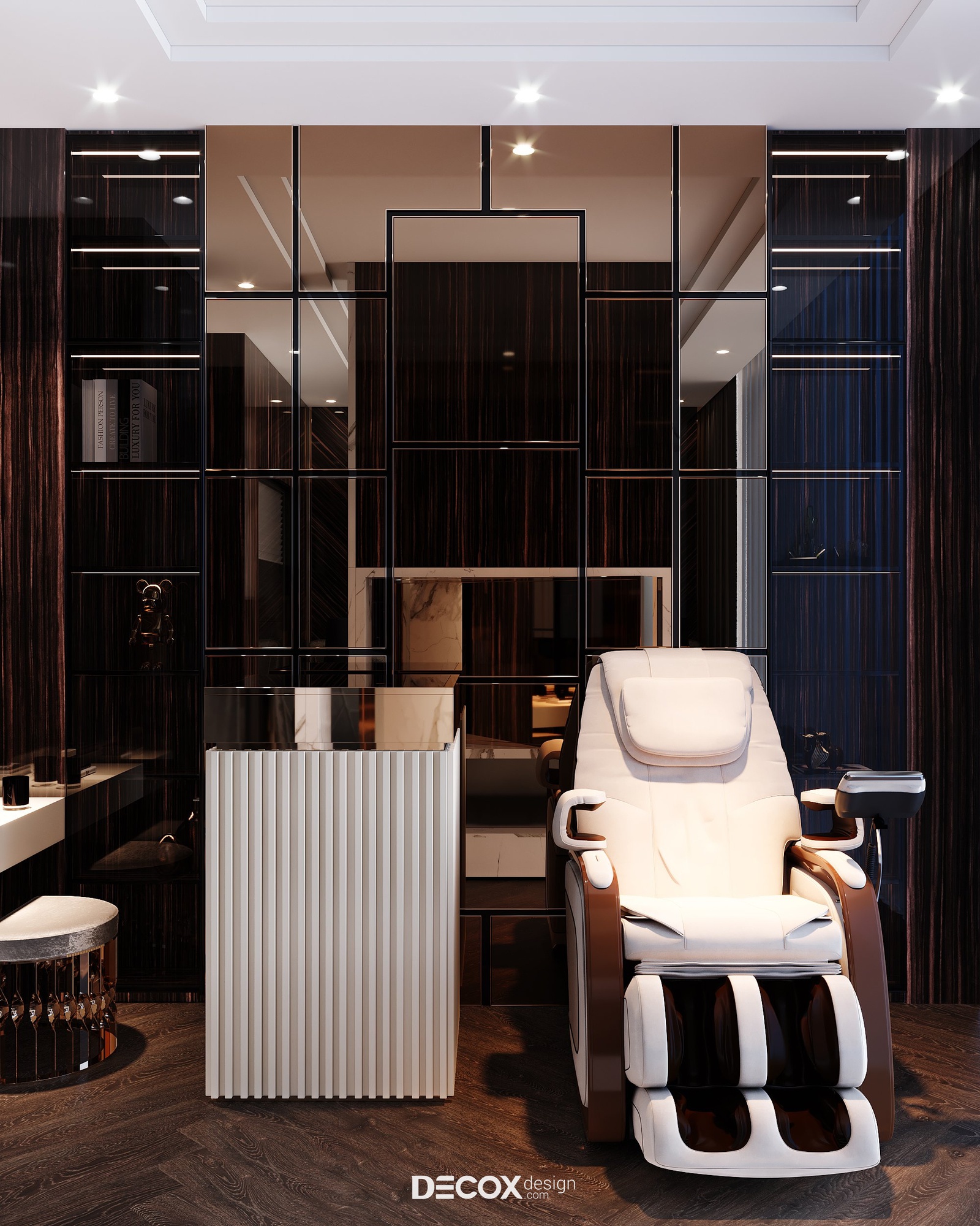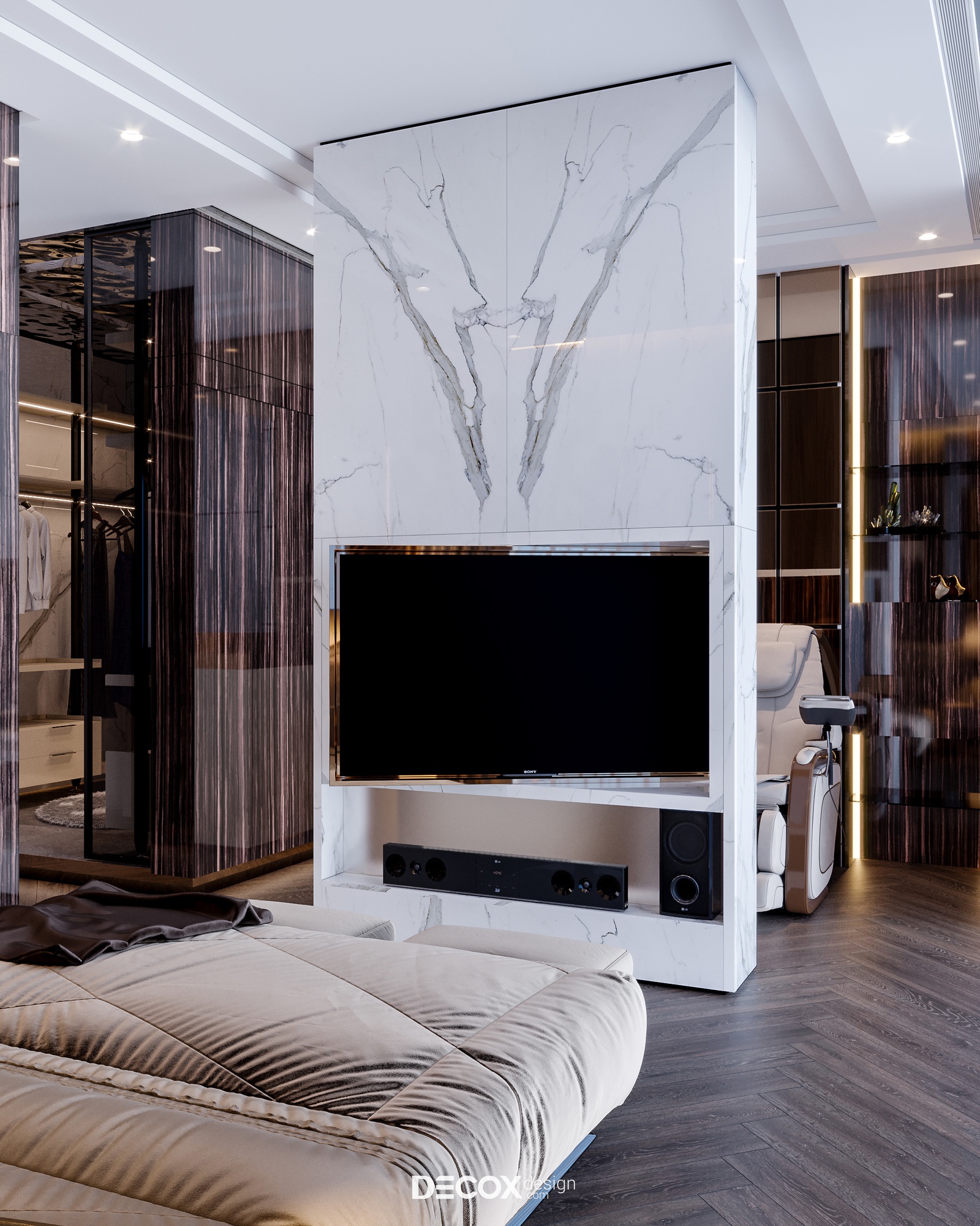 Yêu cầu đối với không gian sống, đặc biệt là không gian nghỉ ngơi ngày một khắt khe, không chỉ hướng đến giá trị thẩm mỹ tiện nghi mà sự trải nghiệm cũng được nâng lên một tầm cao mới để đáp ứng tiêu chí sống thư giãn chuẩn nghỉ dưỡng. Không chỉ đơn thuần là nơi dành để ngủ, giờ đây không gian phòng ngủ master trong dự án Penthouse The Marq còn được tích hợp thêm nhiều công năng khác từ phòng thay đồ, phòng tắm chuẩn spa cho đến khu vực thư giãn cạnh cửa sổ với chiếc ghế massage công nghệ tiên tiến cho những trải nghiệm trọn vẹn nhất.