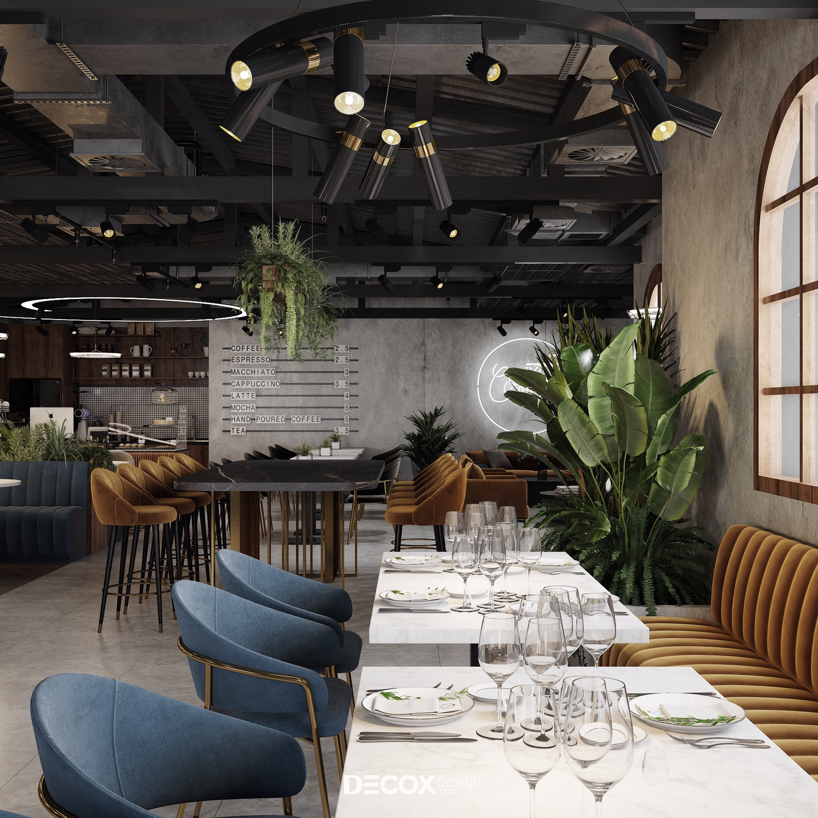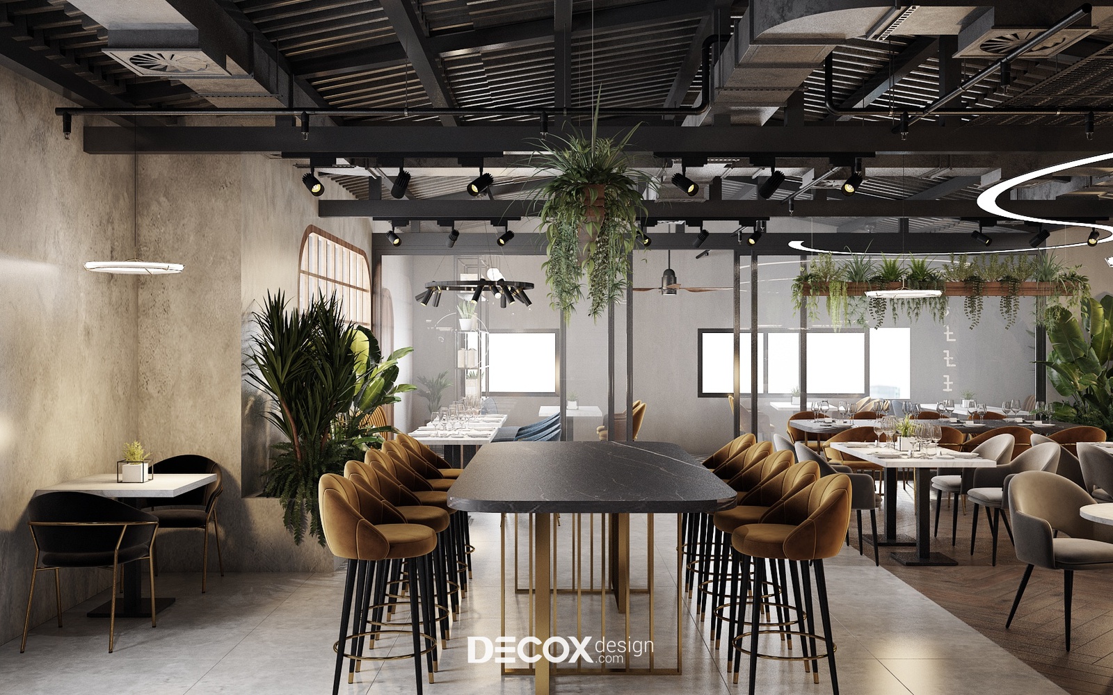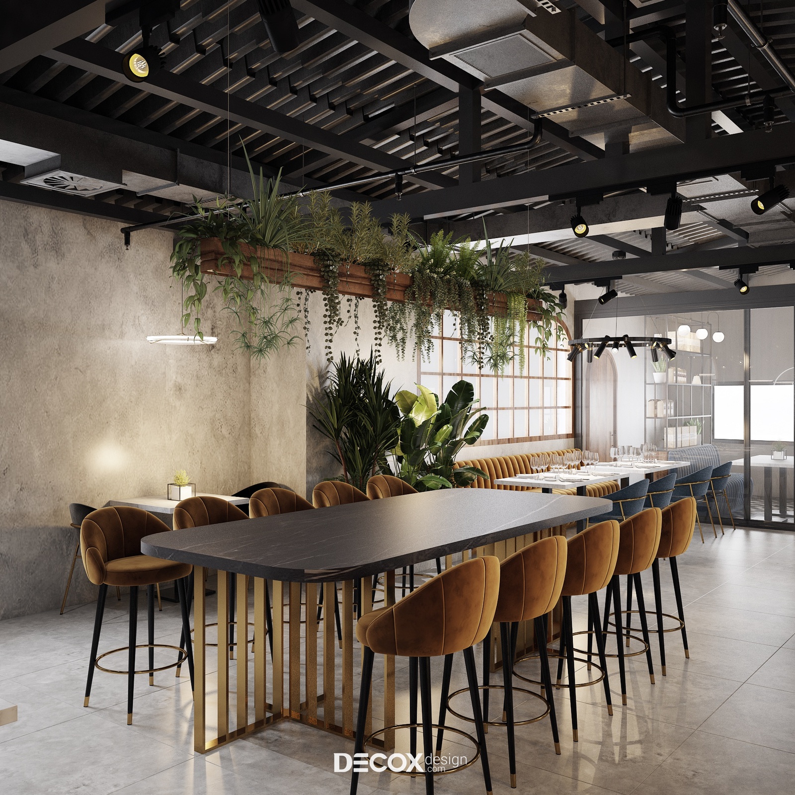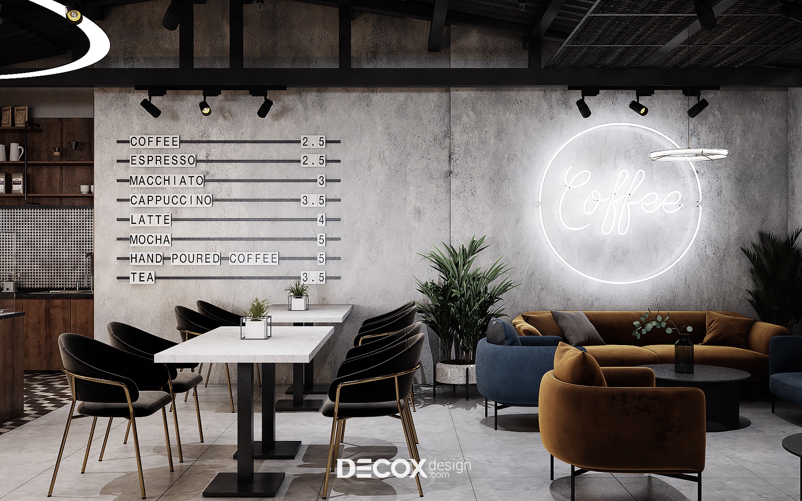Decox Design giới thiệu đến bạn một dự án thiết kế nội thất quán cafe tại Quận 3 mà chúng tôi vừa tiếp nhận trong thời gian vừa qua. Nằm trên tuyến đường Cách Mạng Tháng Tám sầm uất, nơi dòng người hối hả tấp nập qua lại, “anh chủ” mong muốn không gian quán cafe của mình thật phá cách, khác biệt và chạm đến ngưỡng bình yên trong tâm hồn của những vị khách. Vẫn dựa trên cảm hứng từ tinh thần hiện đại kết hợp industrial đầy cá tính như trong option 1, thế nhưng ở option này các KTS đã biến tấu không gian đầy cá tính và “lột tả” rõ nét chất công nghiệp hơn thông qua màu sắc và chất liệu sử dụng. Sau đây, Decox mời bạn cùng tham quan những không gian bên trong dự án thiết kế nội thất quán cafe này nhé.