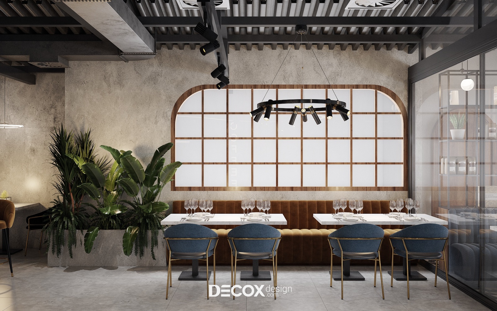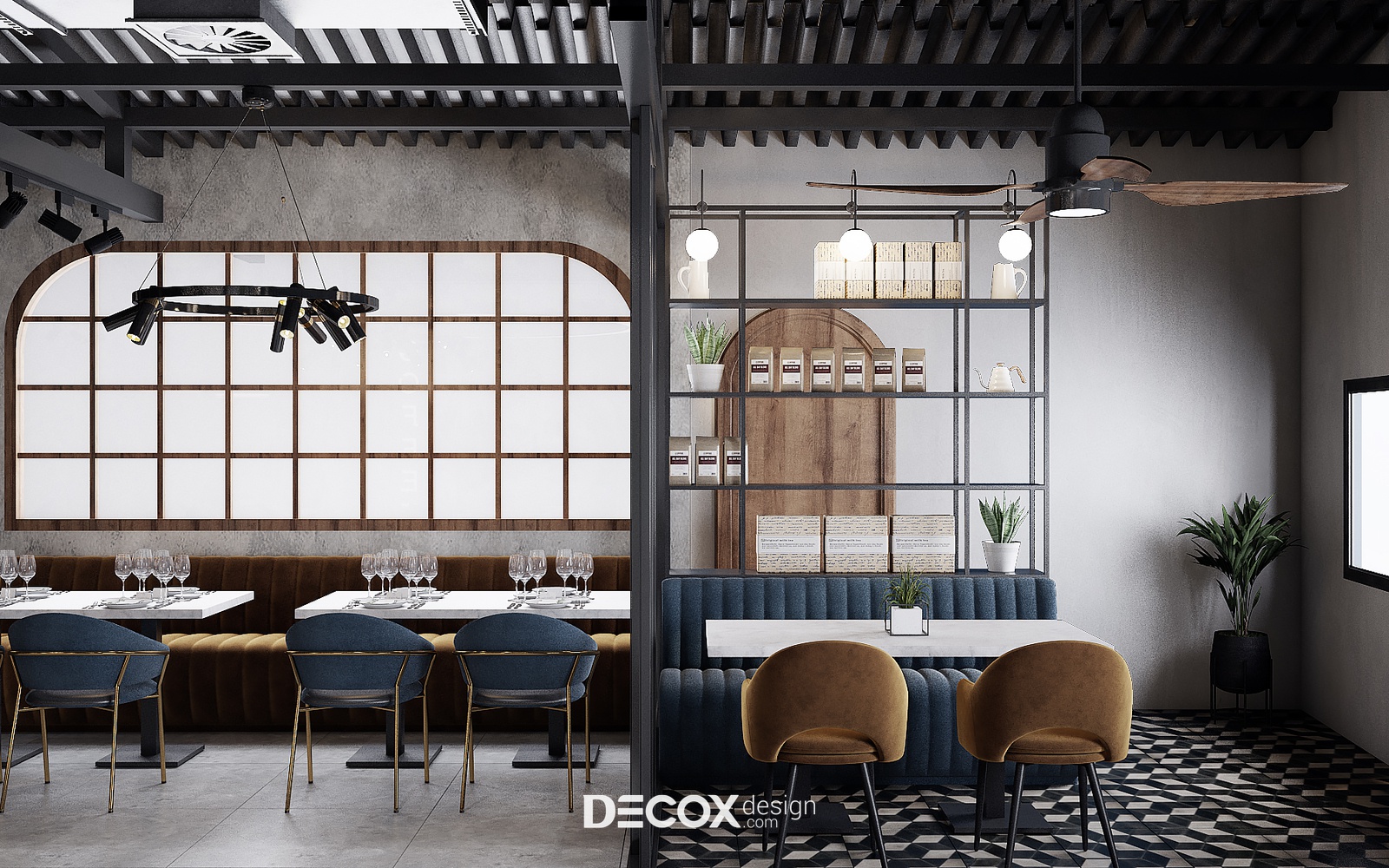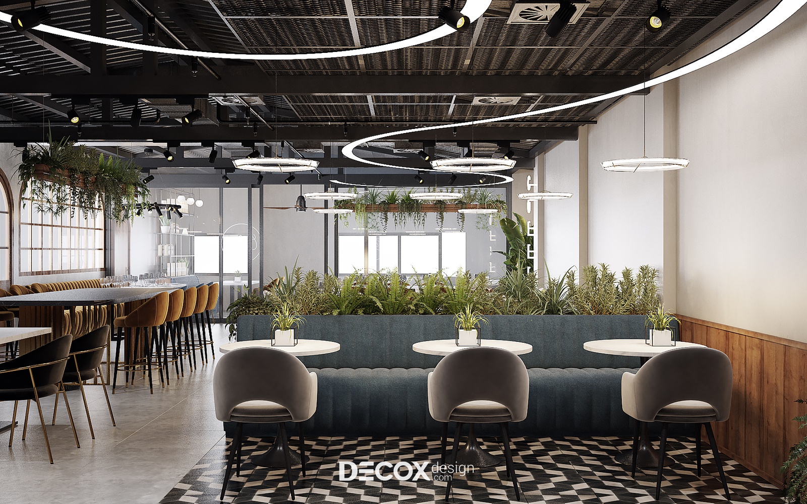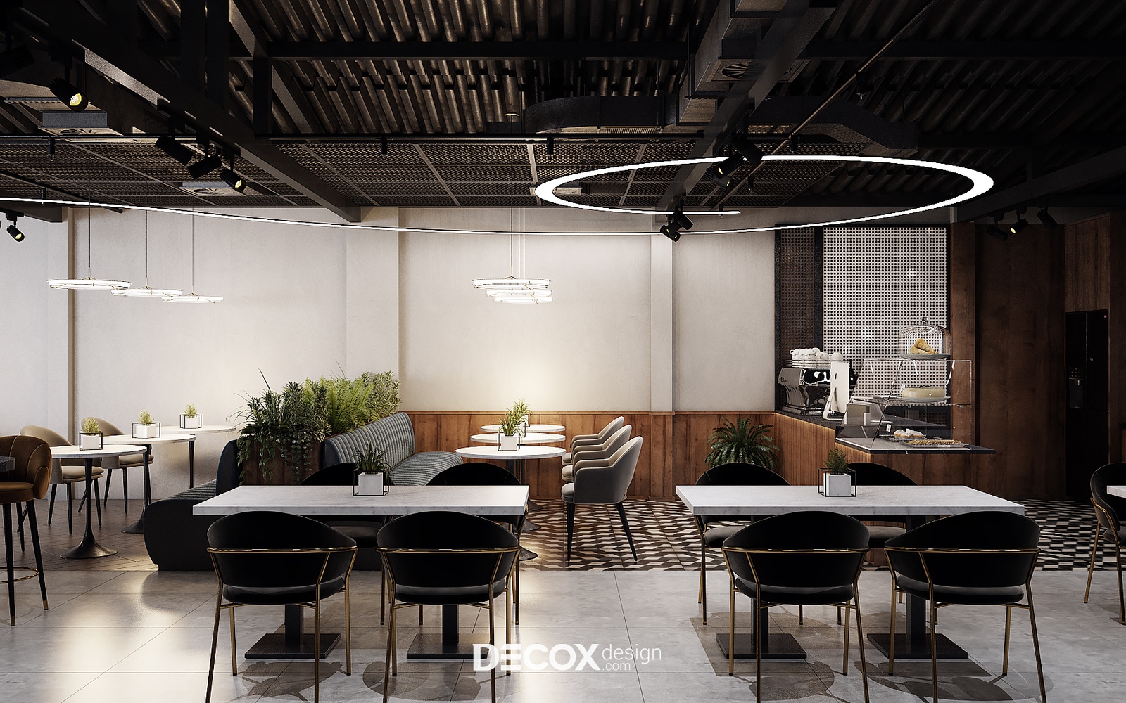 Decox Design giới thiệu đến bạn một dự án thiết kế nội thất quán cafe tại Quận 3 mà chúng tôi vừa tiếp nhận trong thời gian vừa qua. Nằm trên tuyến đường Cách Mạng Tháng Tám sầm uất, nơi dòng người hối hả tấp nập qua lại, “anh chủ” mong muốn không gian quán cafe của mình thật phá cách, khác biệt và chạm đến ngưỡng bình yên trong tâm hồn của những vị khách. Vẫn dựa trên cảm hứng từ tinh thần hiện đại kết hợp industrial đầy cá tính như trong option 1, thế nhưng ở option này các KTS đã biến tấu không gian đầy cá tính và “lột tả” rõ nét chất công nghiệp hơn thông qua màu sắc và chất liệu sử dụng. Sau đây, Decox mời bạn cùng tham quan những không gian bên trong dự án thiết kế nội thất quán cafe này nhé.