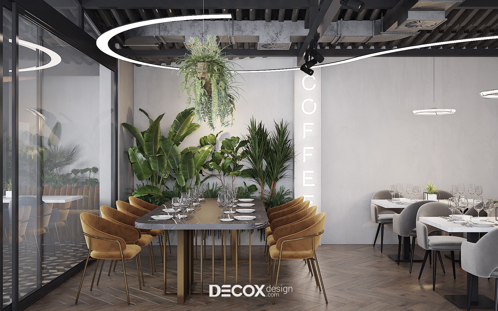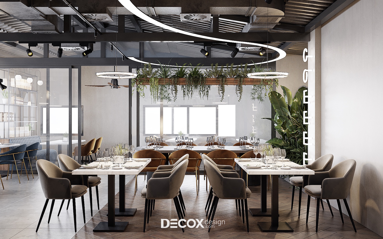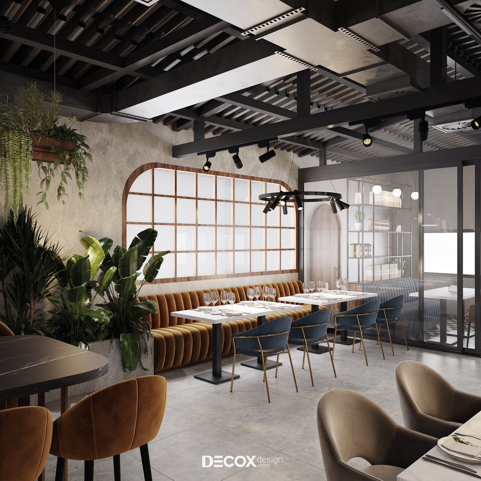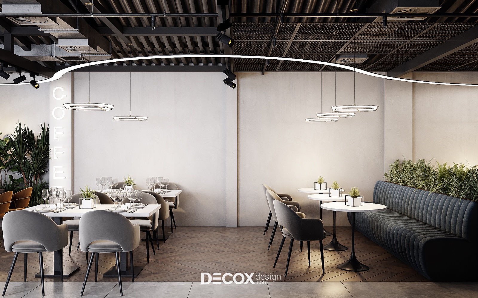 Decox Design giới thiệu đến bạn một dự án thiết kế nội thất quán cafe tại Quận 3 mà chúng tôi vừa tiếp nhận trong thời gian vừa qua. Nằm trên tuyến đường Cách Mạng Tháng Tám sầm uất, nơi dòng người hối hả tấp nập qua lại, “anh chủ” mong muốn không gian quán cafe của mình thật phá cách, khác biệt và chạm đến ngưỡng bình yên trong tâm hồn của những vị khách. Vẫn dựa trên cảm hứng từ tinh thần hiện đại kết hợp industrial đầy cá tính như trong option 1, thế nhưng ở option này các KTS đã biến tấu không gian đầy cá tính và “lột tả” rõ nét chất công nghiệp hơn thông qua màu sắc và chất liệu sử dụng. Sau đây, Decox mời bạn cùng tham quan những không gian bên trong dự án thiết kế nội thất quán cafe này nhé.
