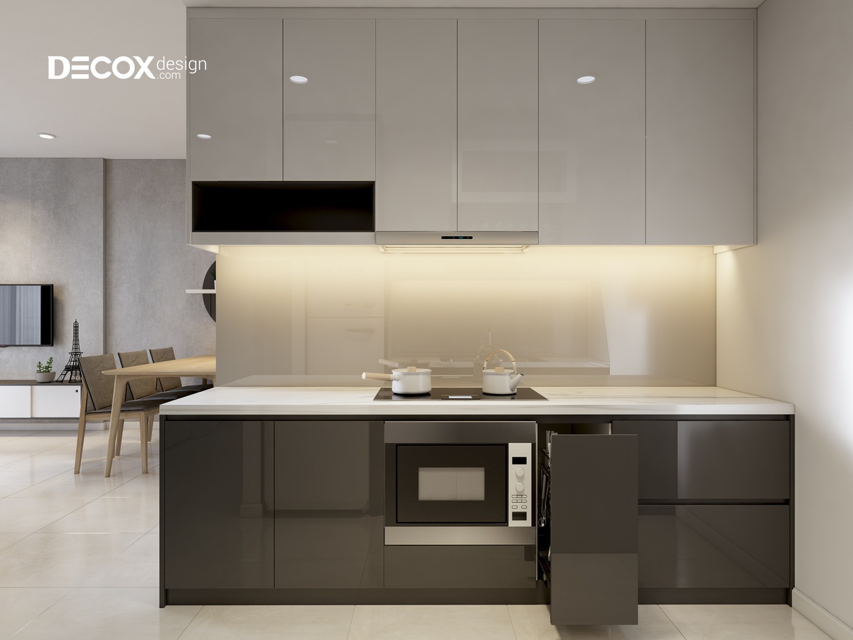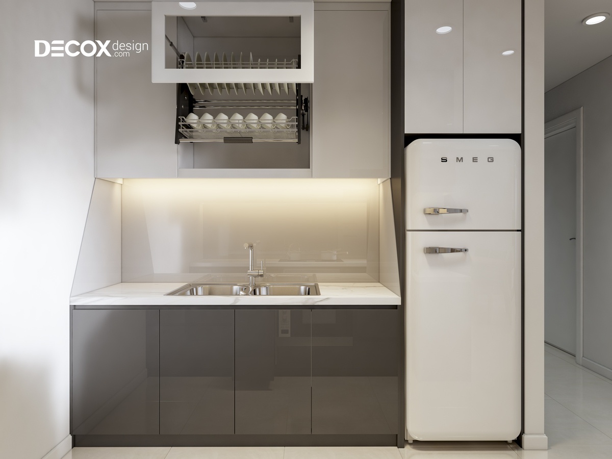 Căn hộ Richstar được thiết kế theo phong cách hiện đại và năng động với không gian sống mở rộng, đón nhận ánh sáng từ thiên nhiên. Dưới bàn tay tinh tế của đội ngũ nhân viên tại Decox Design, thiết kế nội thất căn hộ đã trở nên hoàn mỹ hơn. Cách bố trí đồ vật phù hợp, chú trọng nhiều đến công năng nhưng vẫn đảm bảo được về mặt thẩm mỹ với những gam màu đậm như xanh fancy, màu vàng nhạt… Ánh sáng đèn cũng được bố trí hợp lý, phối hợp với tông màu trắng làm gian phòng càng thêm sang trọng và hiện đại, thu hút mọi ánh nhìn.