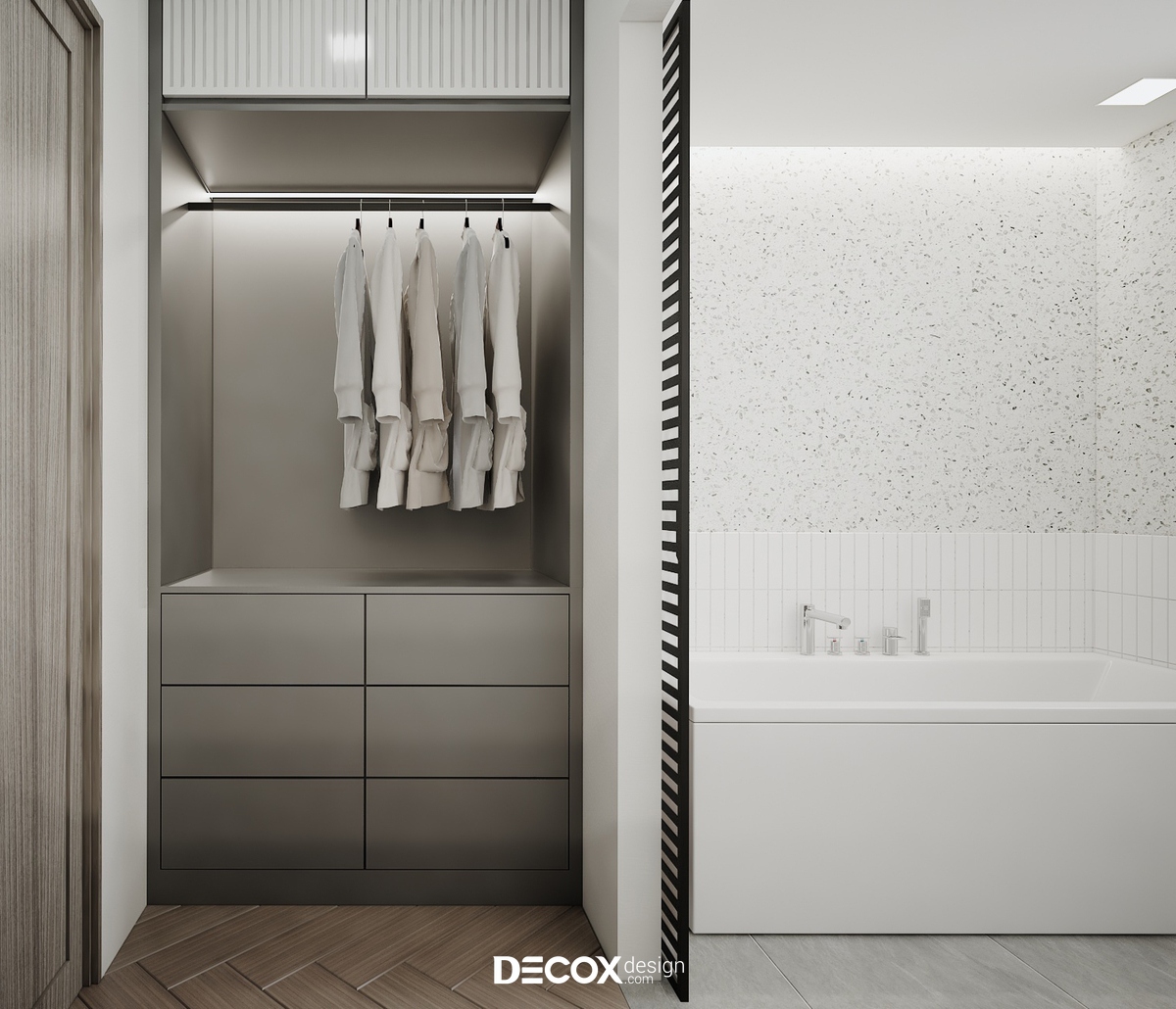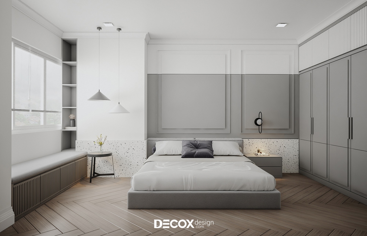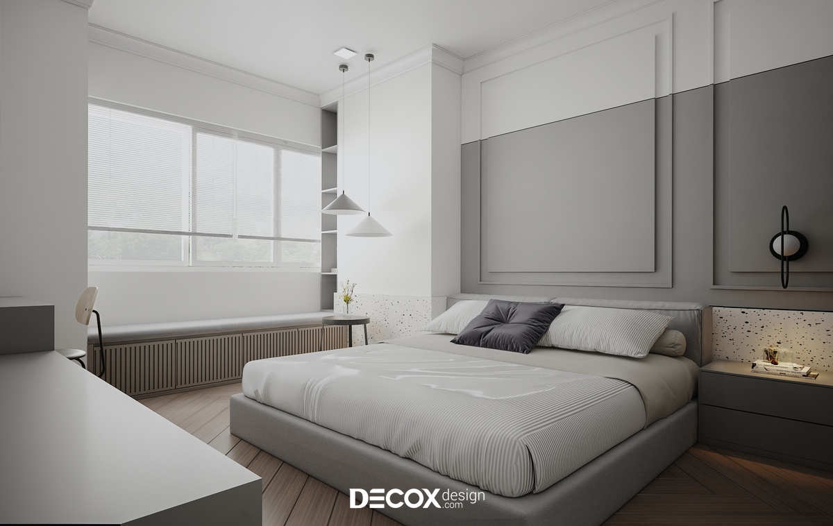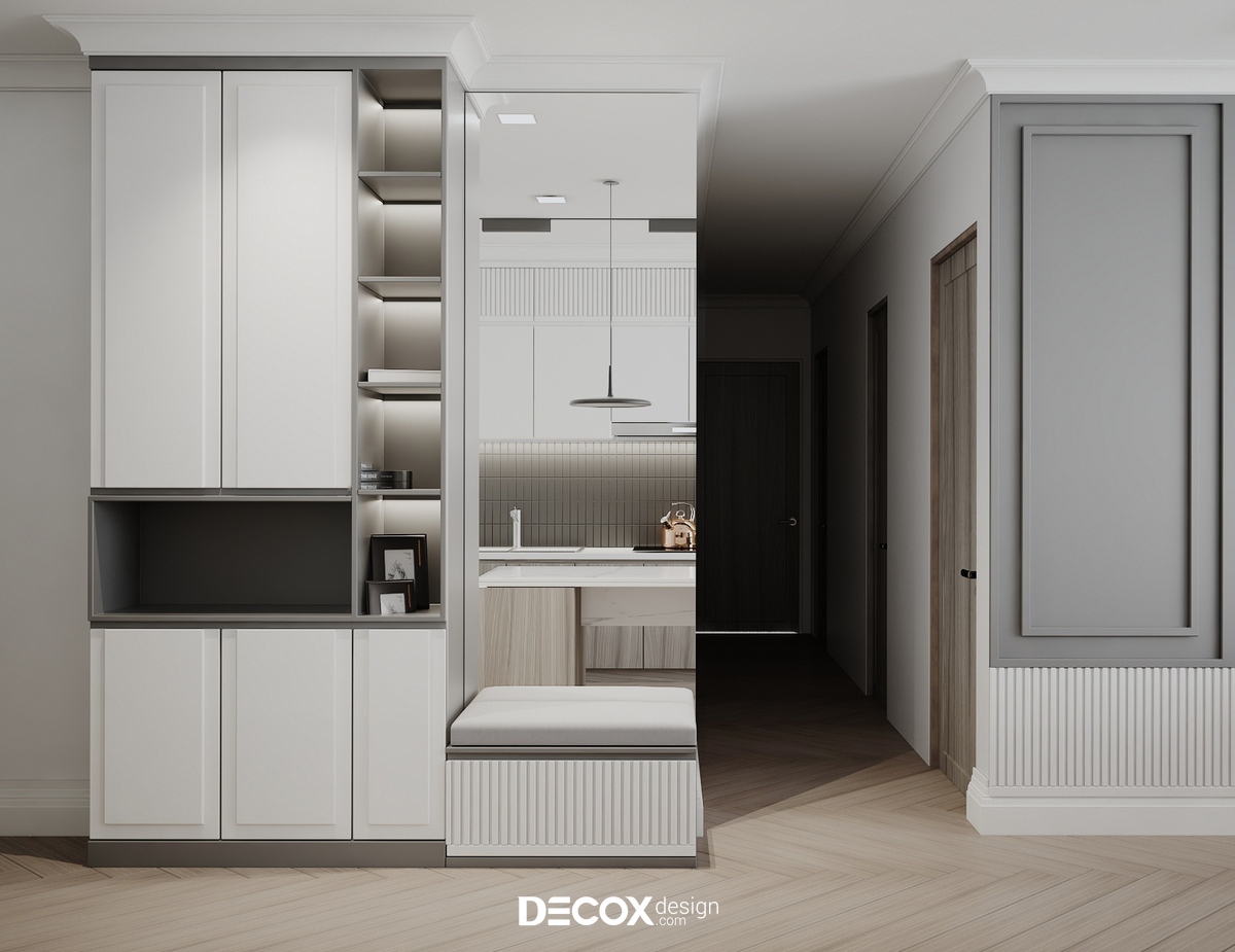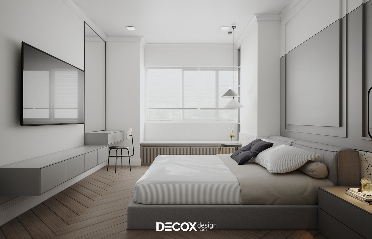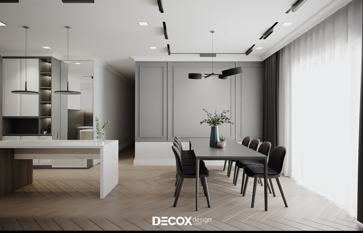 Thiết kế nội thất chung cư với vẻ đẹp trang nhã và tinh tế trong từng chi tiết nội thất. Tông màu trung tính với sự pha trộn trắng xám được kiến trúc sư Decox Design kết hợp khéo léo cùng đồ nội thất mở ra không gian sống thoải mái, tràn ngập ánh sáng.